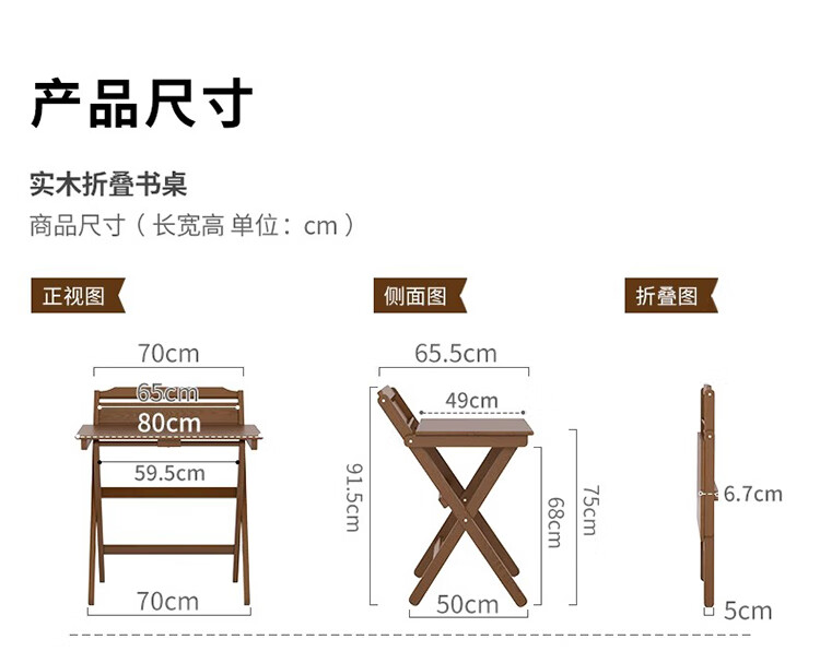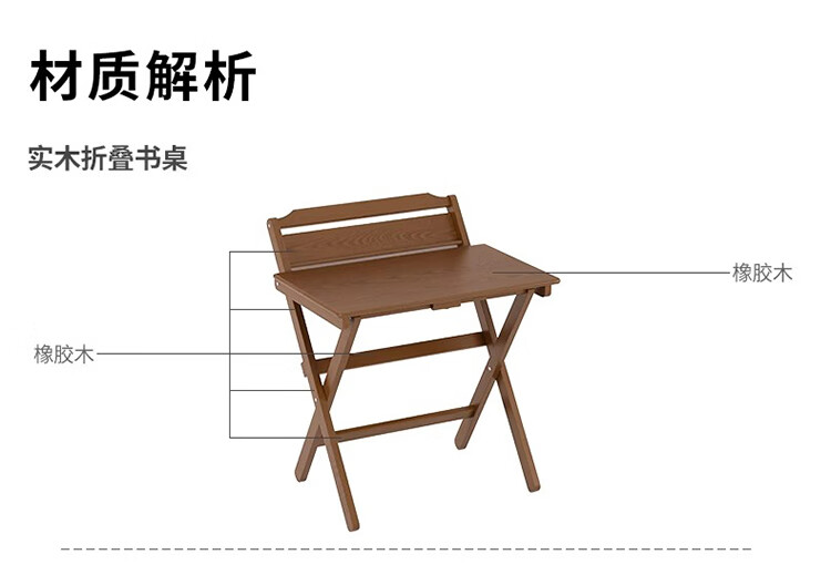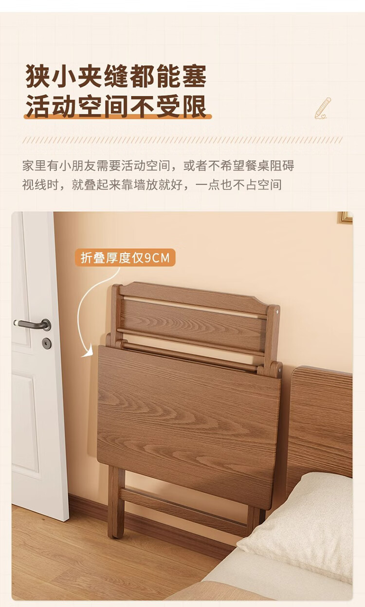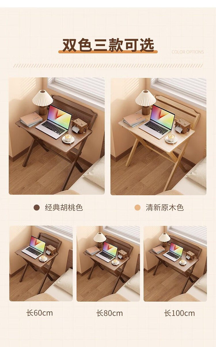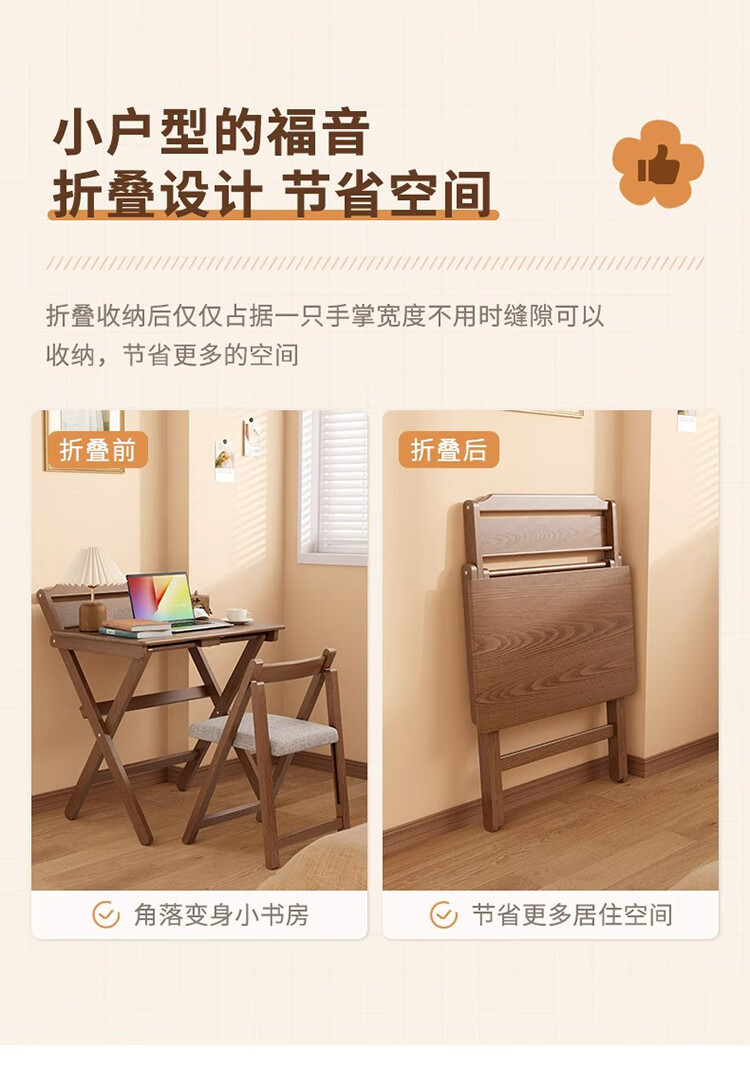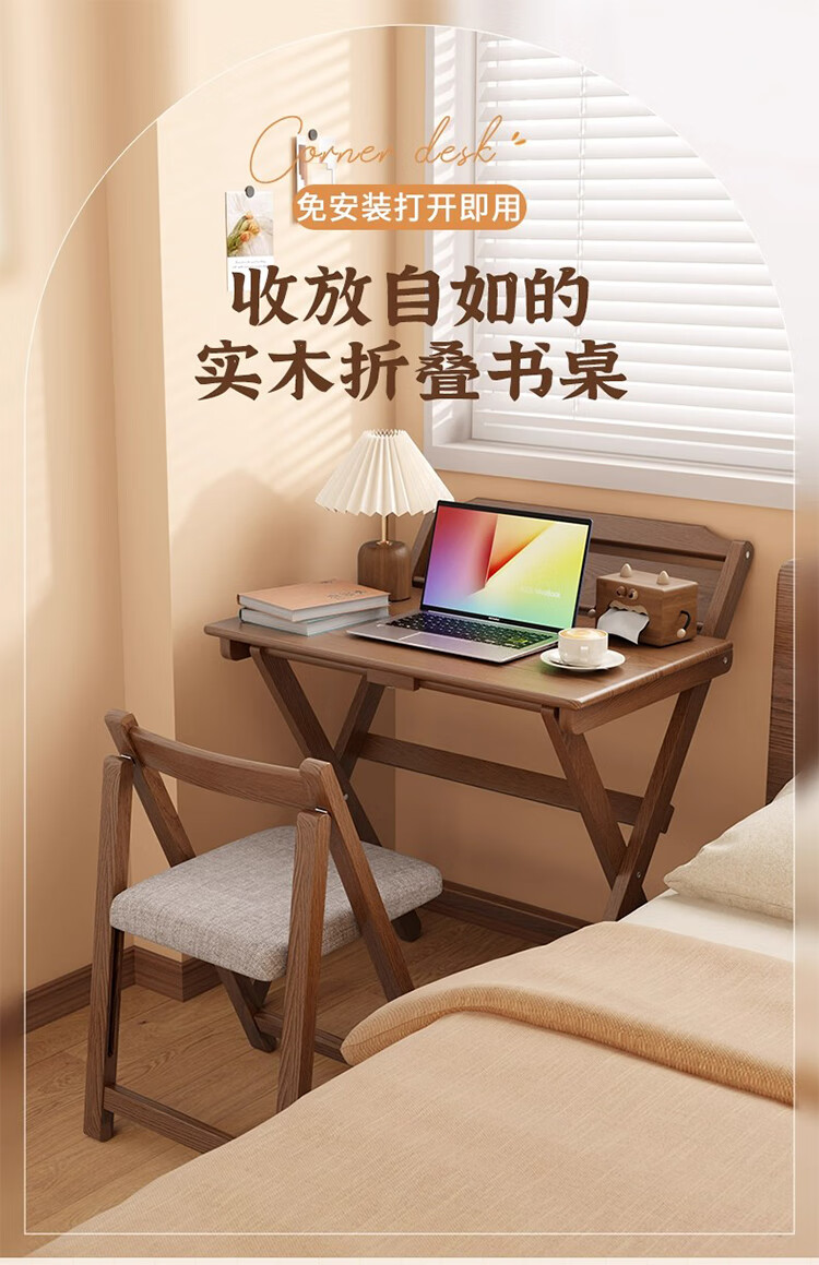 筏芯德国折叠书桌实木桌子小户型家用折叠办公桌卧室床头折叠桌简易电 【全实木】80CM折叠书桌-胡桃色 【免安装】