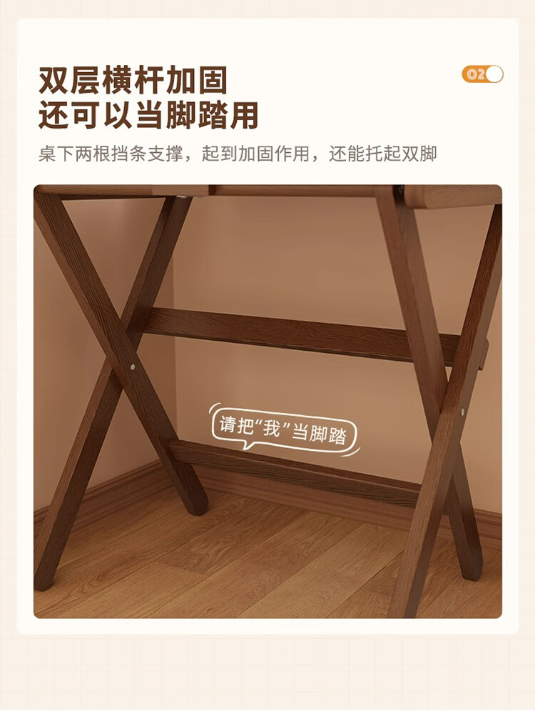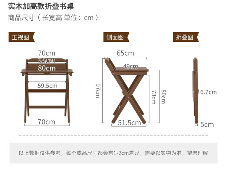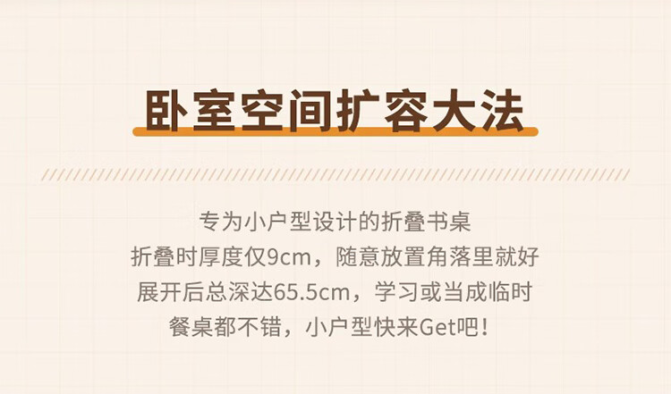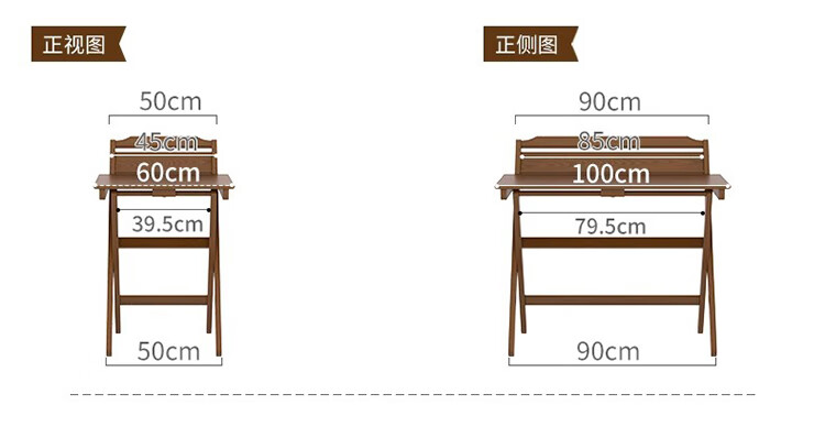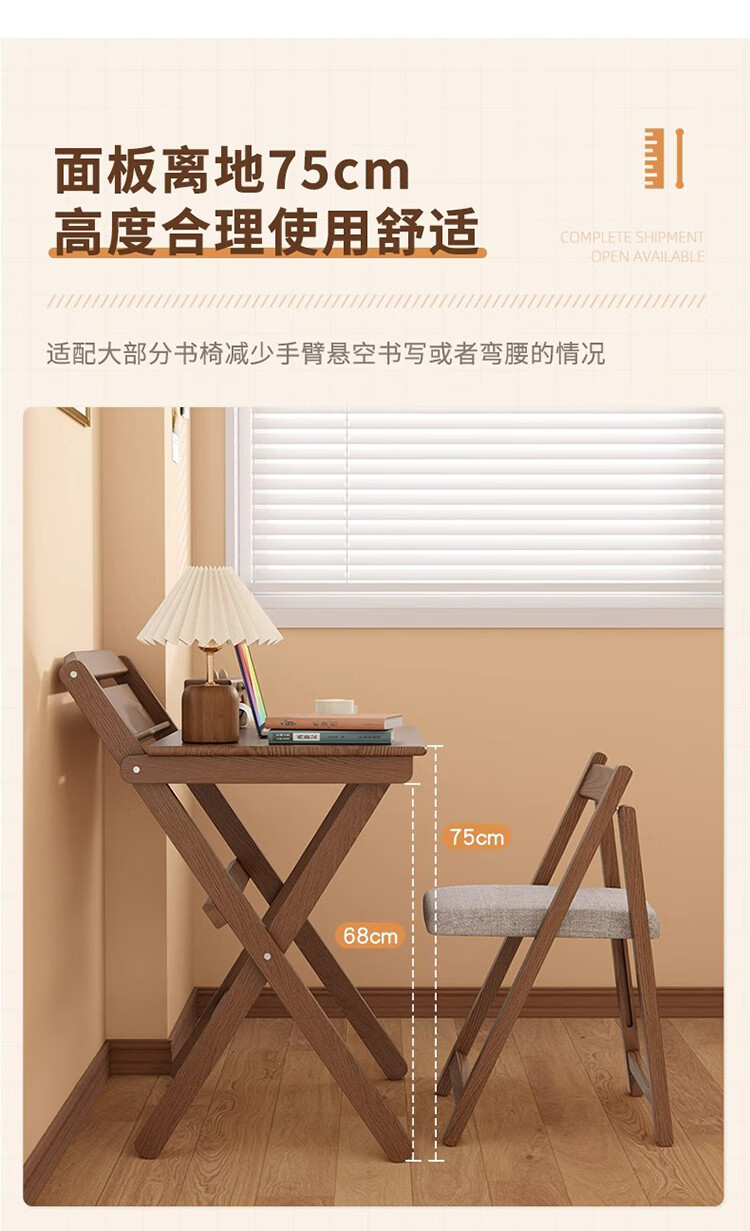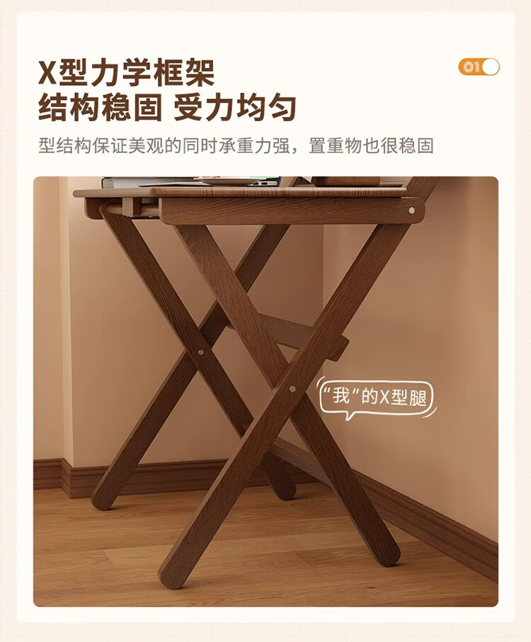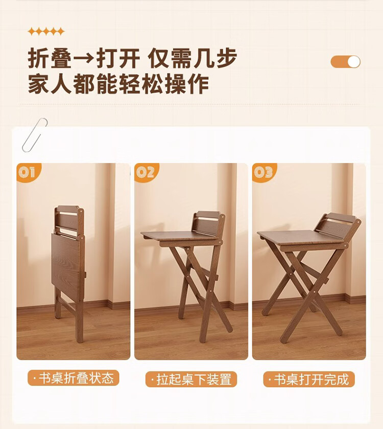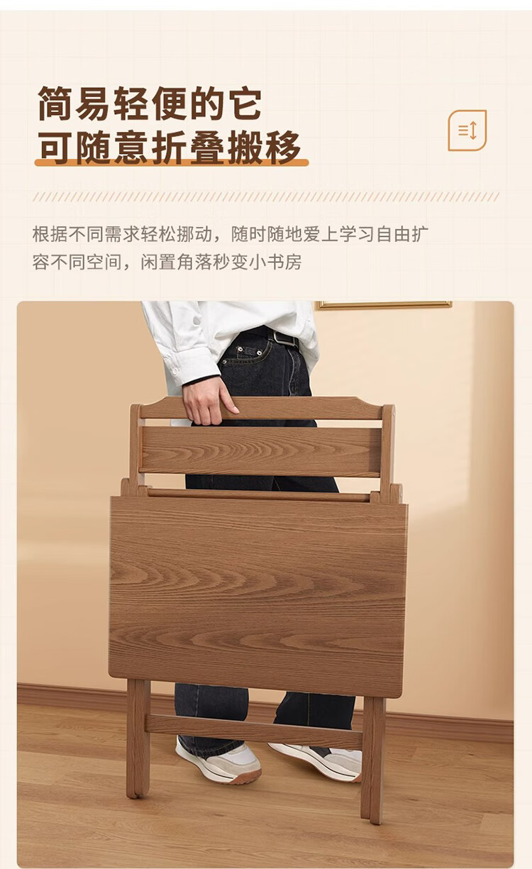 筏芯德国折叠书桌实木桌子小户型家用折叠办公桌卧室床头折叠桌简易电 【全实木】80CM折叠书桌-胡桃色 【免安装】