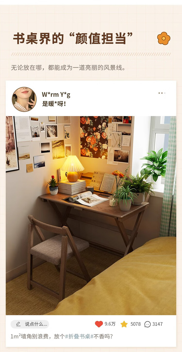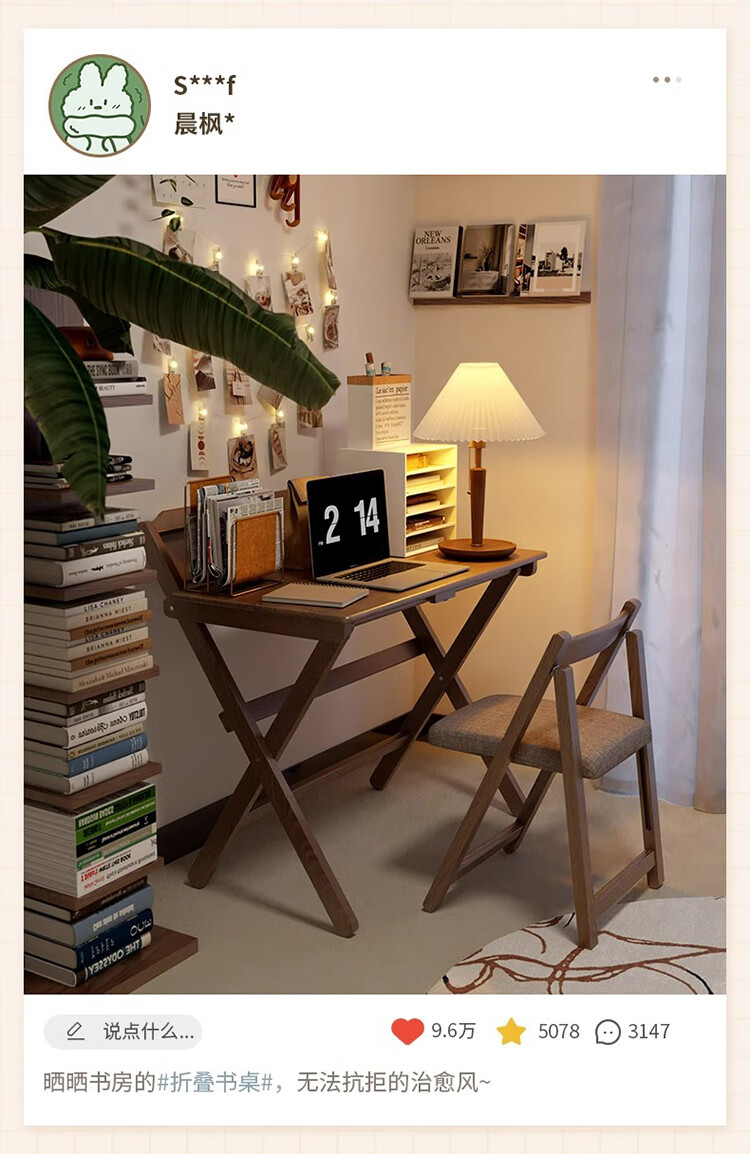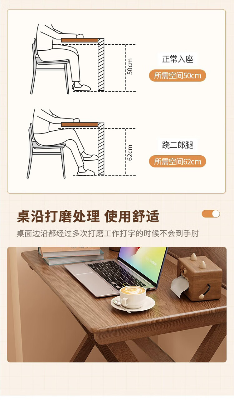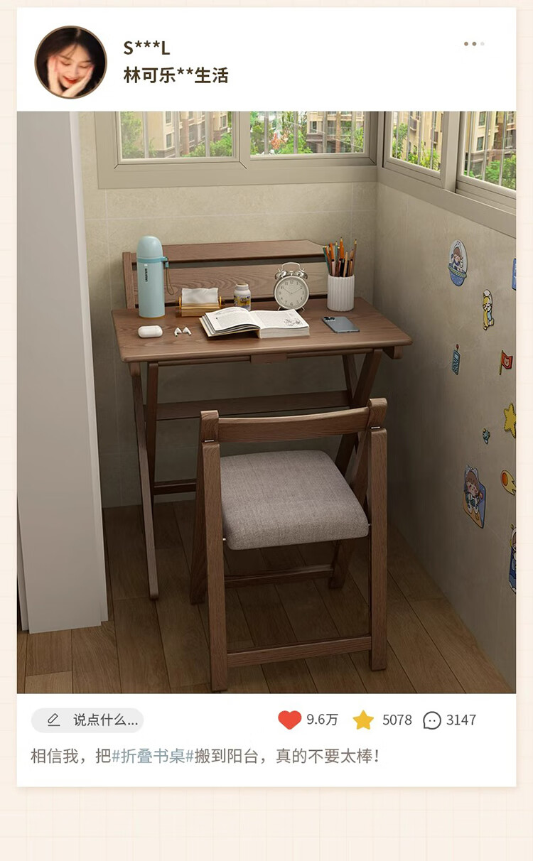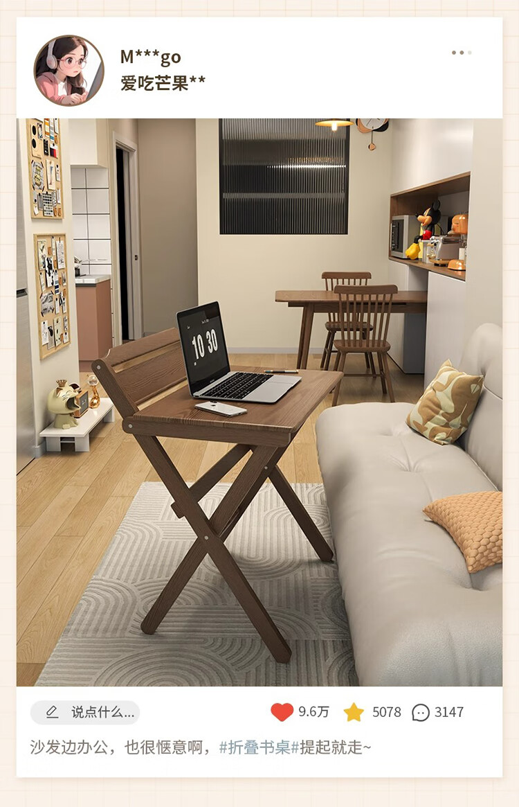 筏芯德国折叠书桌实木桌子小户型家用折叠办公桌卧室床头折叠桌简易电 【全实木】80CM折叠书桌-胡桃色 【免安装】