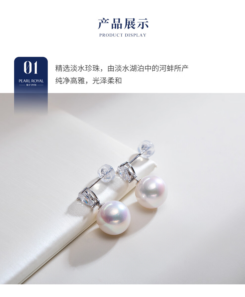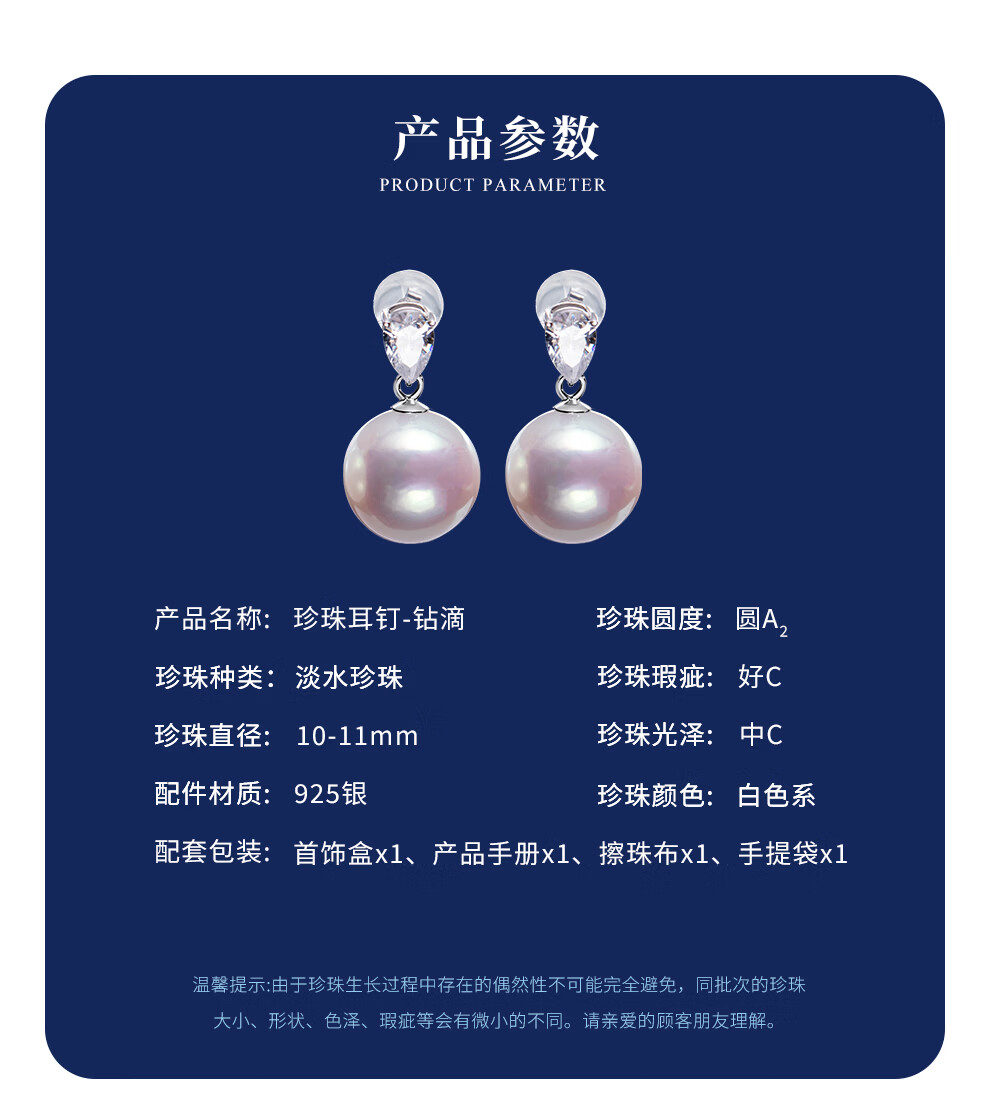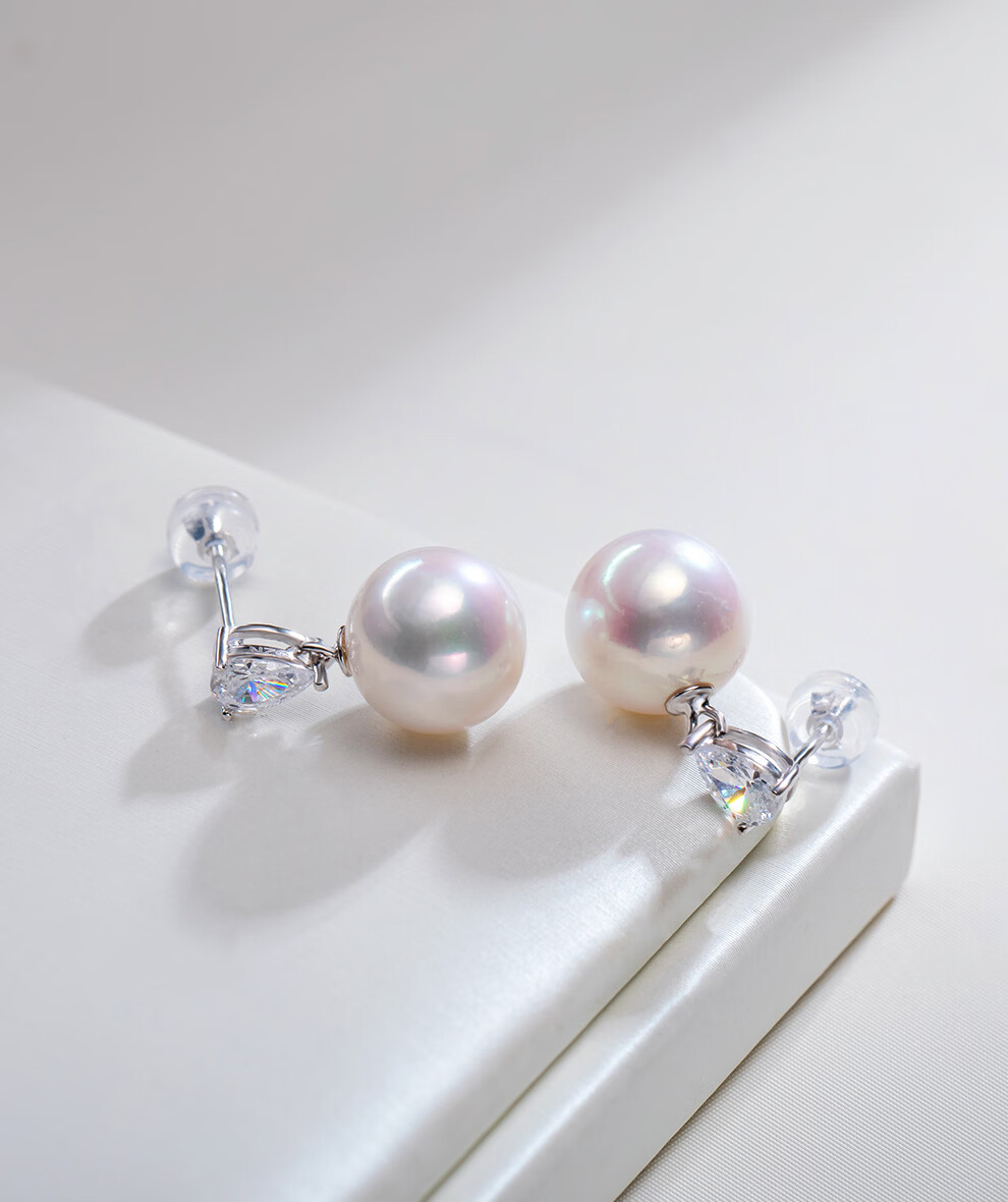 南珠宫钻滴925银淡水珍珠耳环强光圆形高级感生日礼物送老婆 银色款 10.0-11.0mm