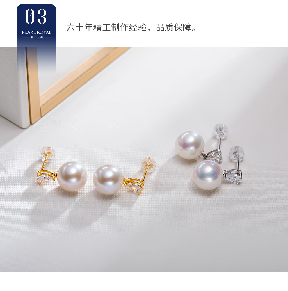 南珠宫流光18K金大溪地海水珍珠耳环强光圆形精致百搭生日礼物送老婆 银色款 8.0-9.0mm