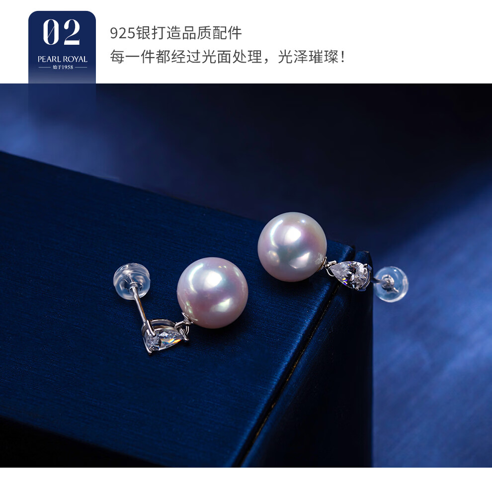 南珠宫恋光925银海水珍珠耳环南洋金珠耳钉强光近圆轻奢生日礼物送女友 10.0-11.0mm 925银海水珍珠耳环