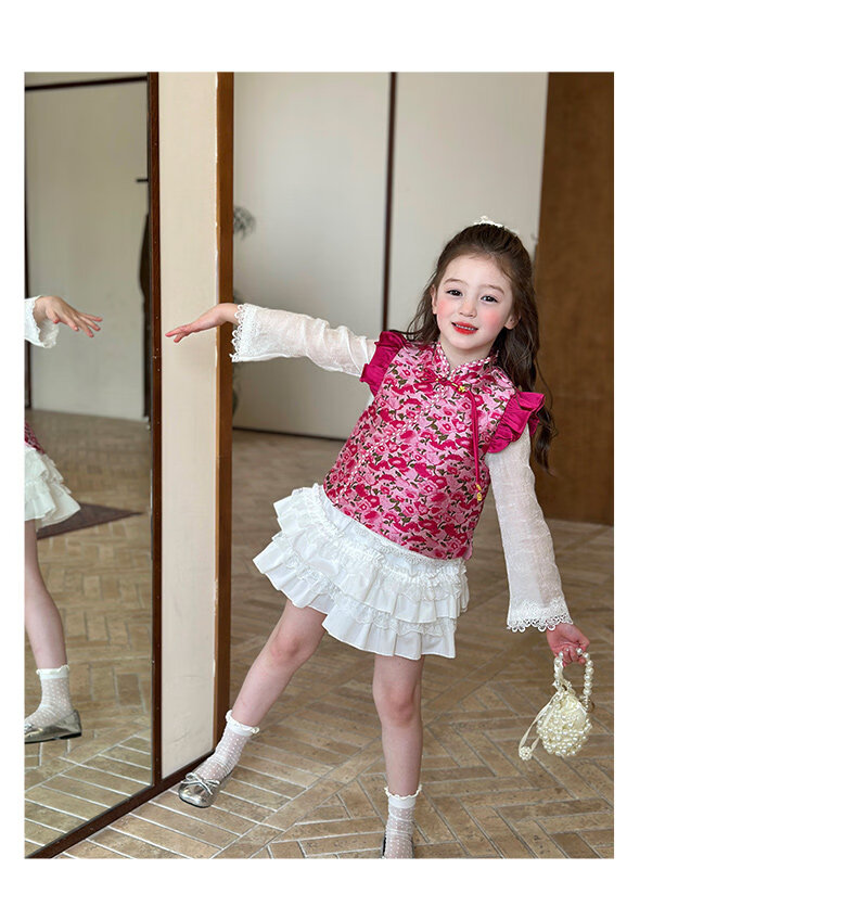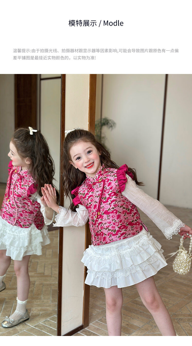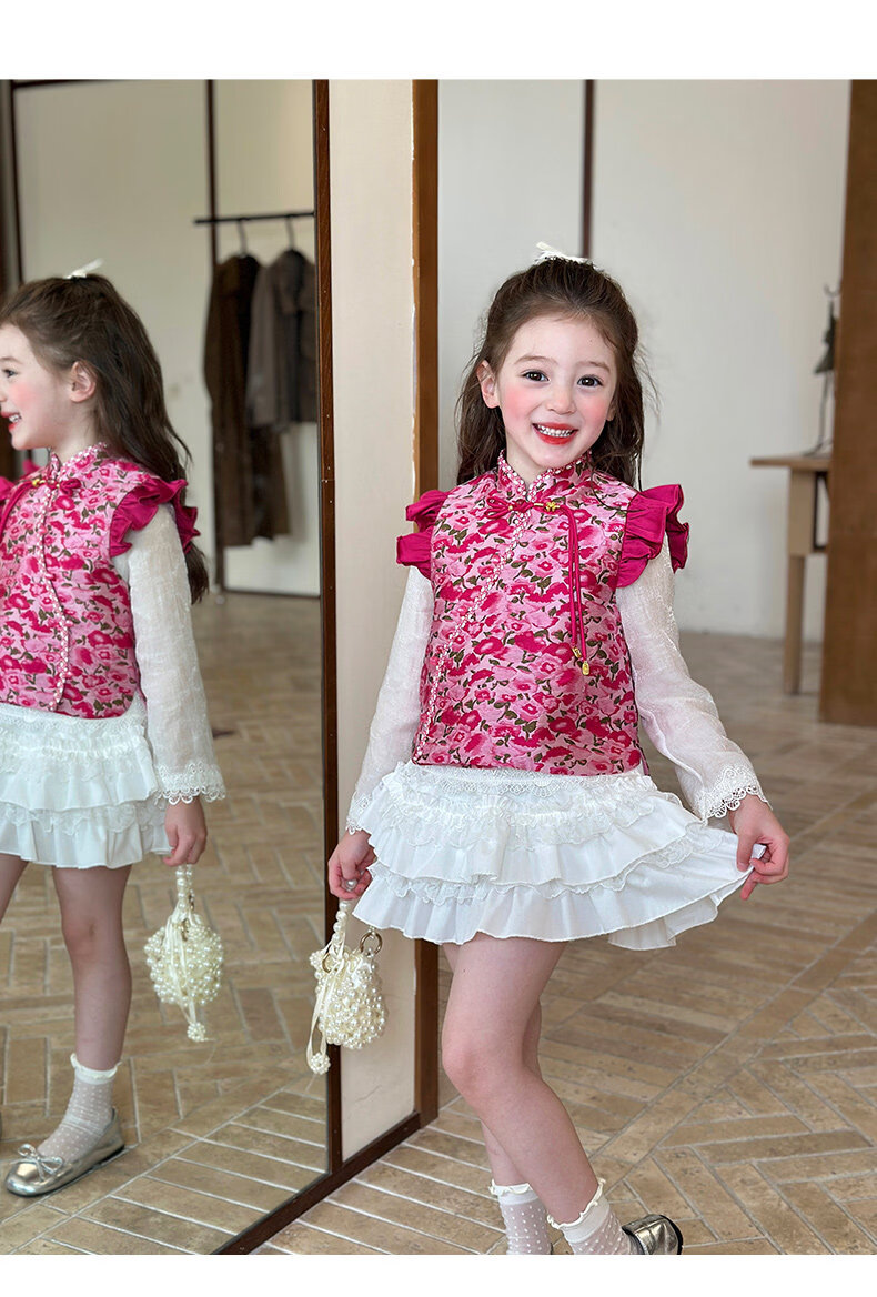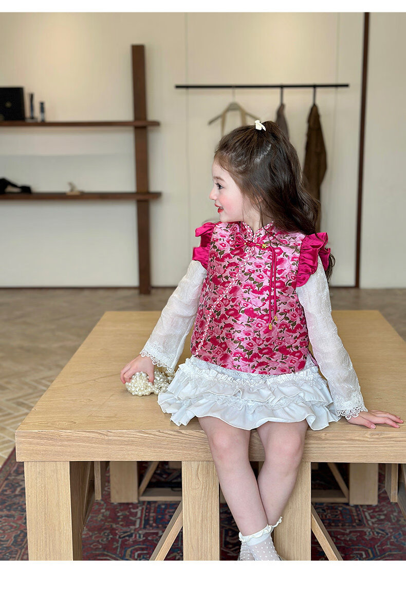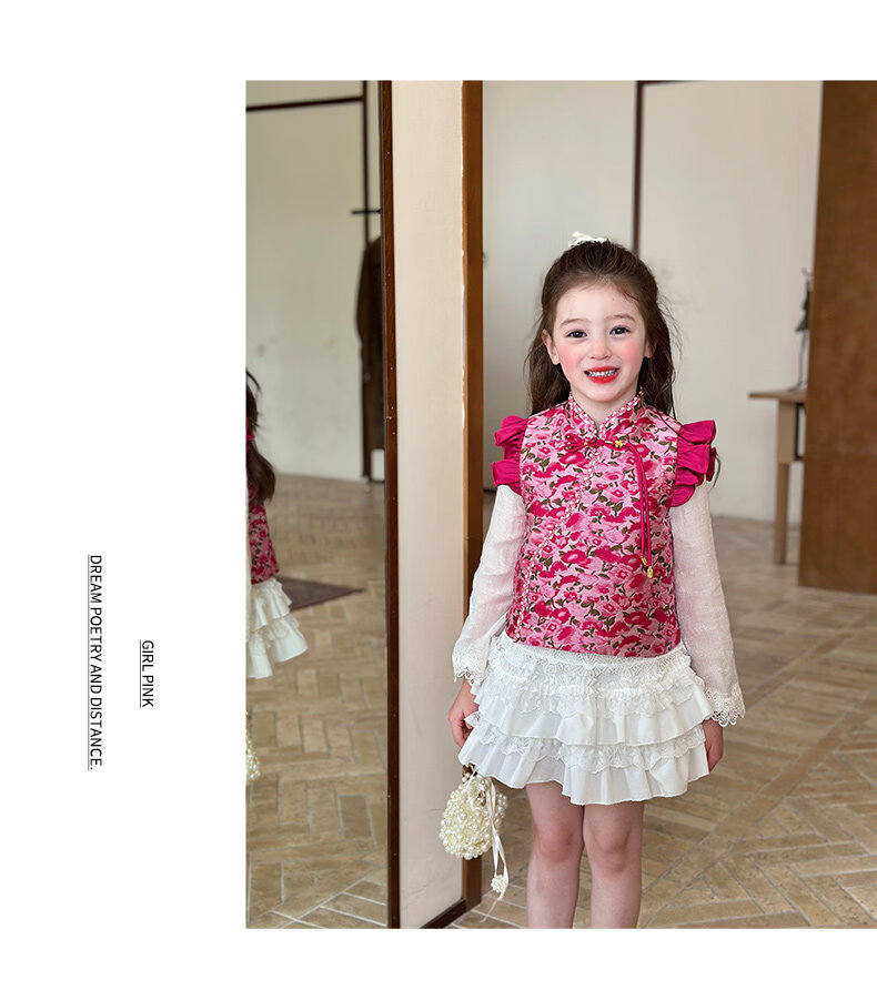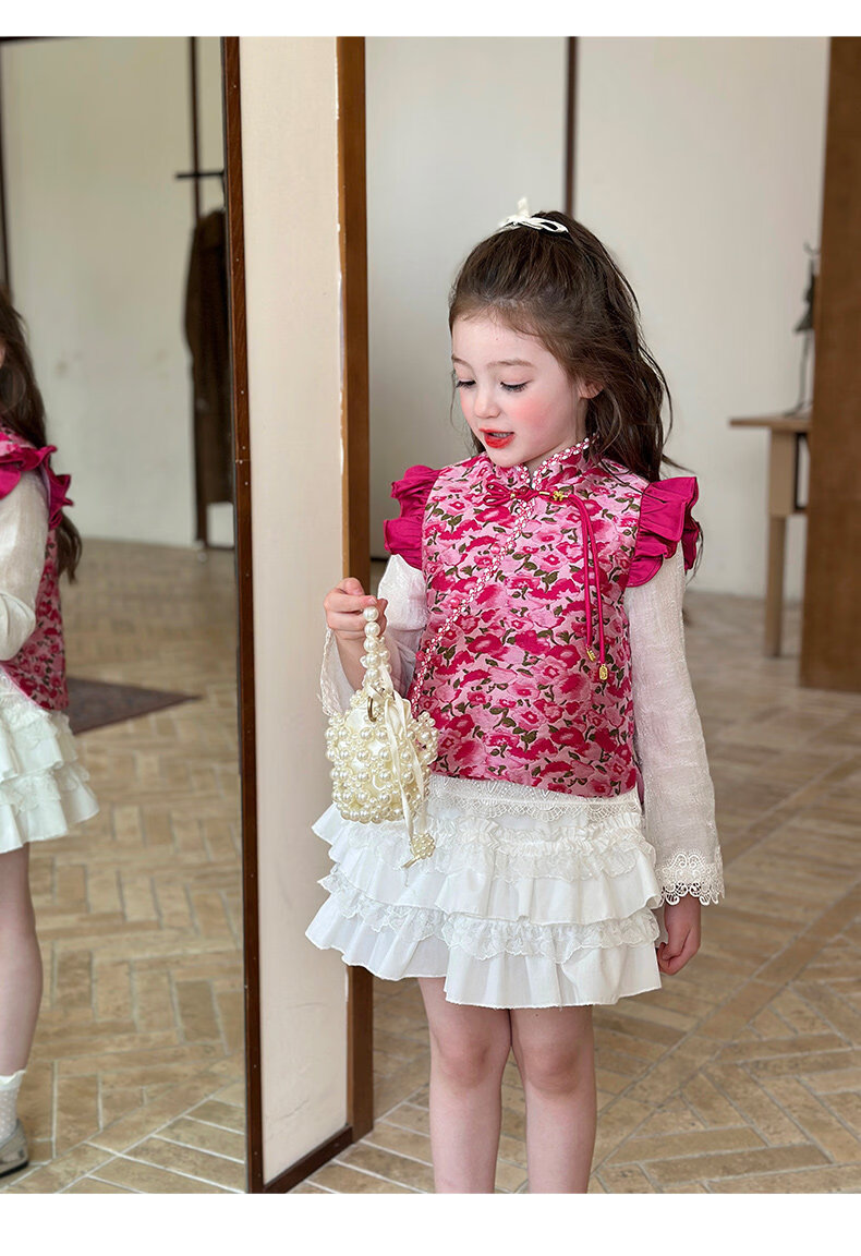 栀了成长记童装女童红色国风套装2025冬季儿童新年夹棉马甲两件套 红色 套装 100 cm