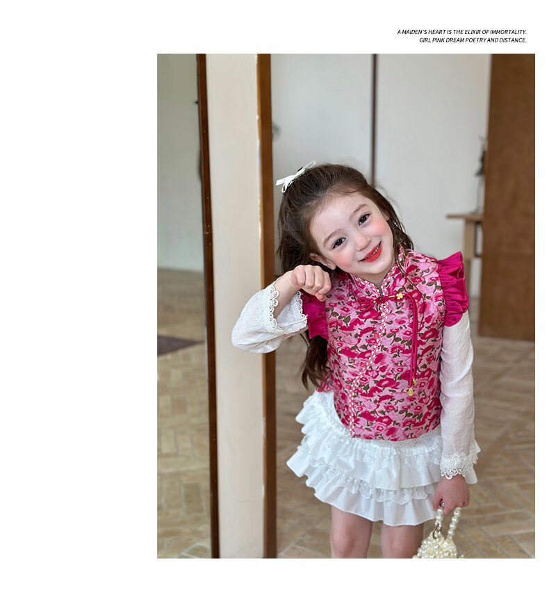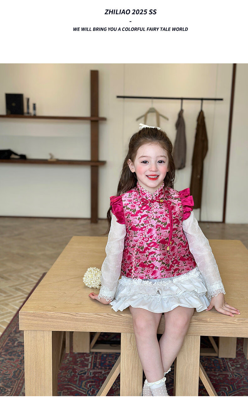 栀了成长记童装女童新中式国风马甲2026春季儿童新款无袖立领上衣 粉色 马甲 140 cm