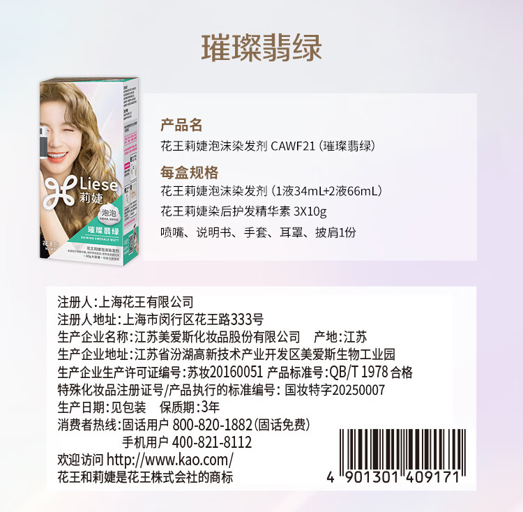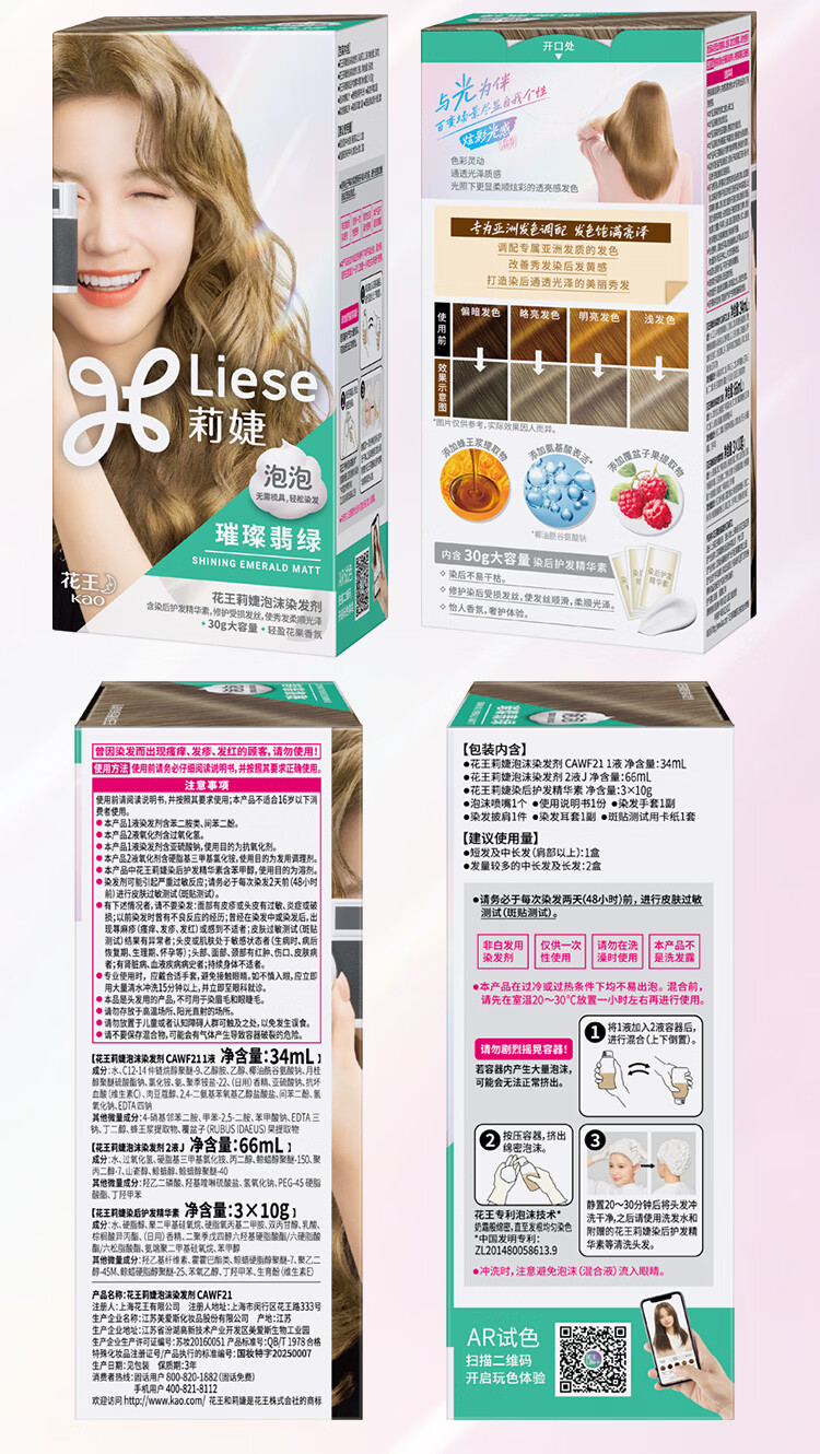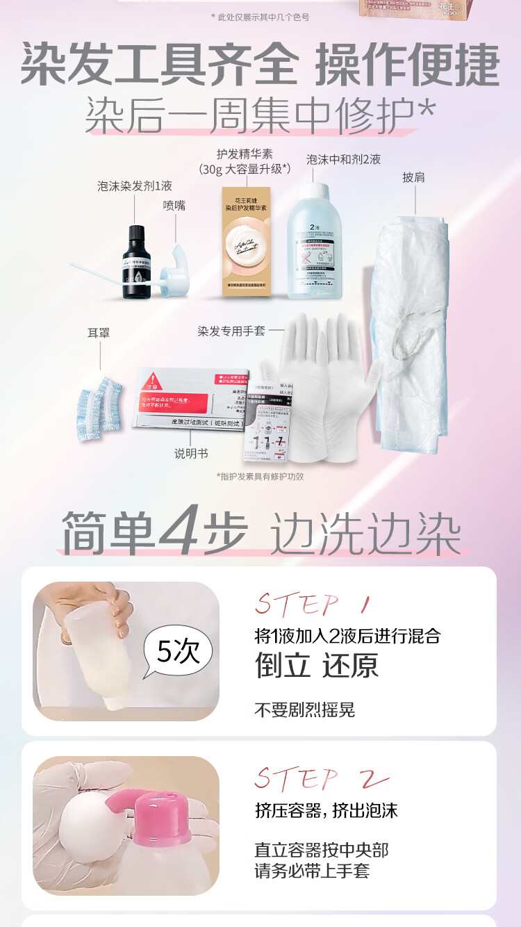 屈臣氏花王莉婕泡沫染发剂系列 CAWF16-星光玫瑰34ml+66ml+30g 100ml 1盒