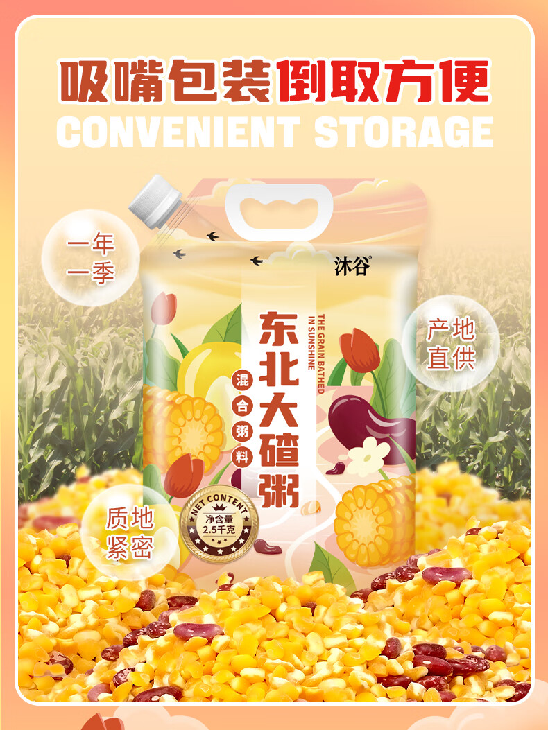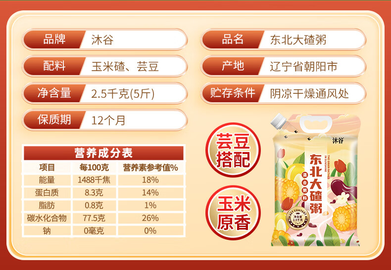 沐谷 东北大碴子粥5斤 芸豆玉米碴 东北特产大碴粥拧嘴袋装非真空