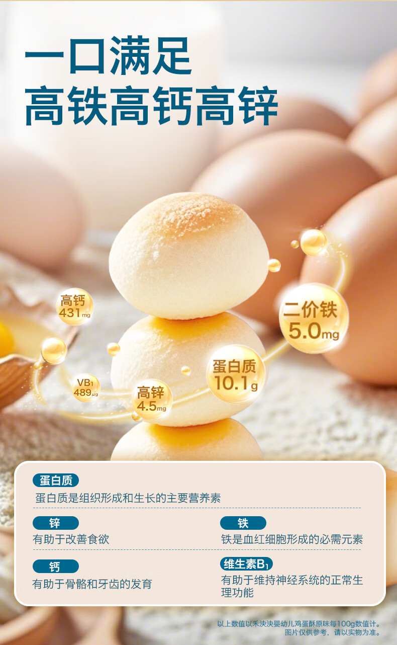 禾泱泱婴幼儿鸡蛋酥苹果味90g 宝宝零食饼干高钙高铁高锌小馒头
