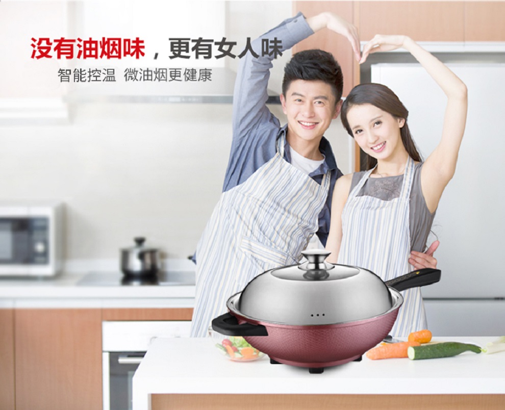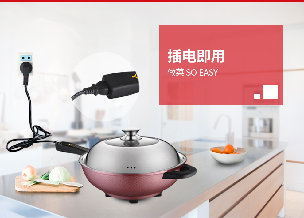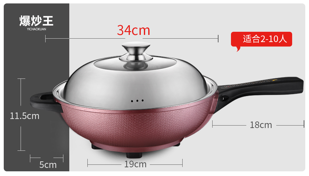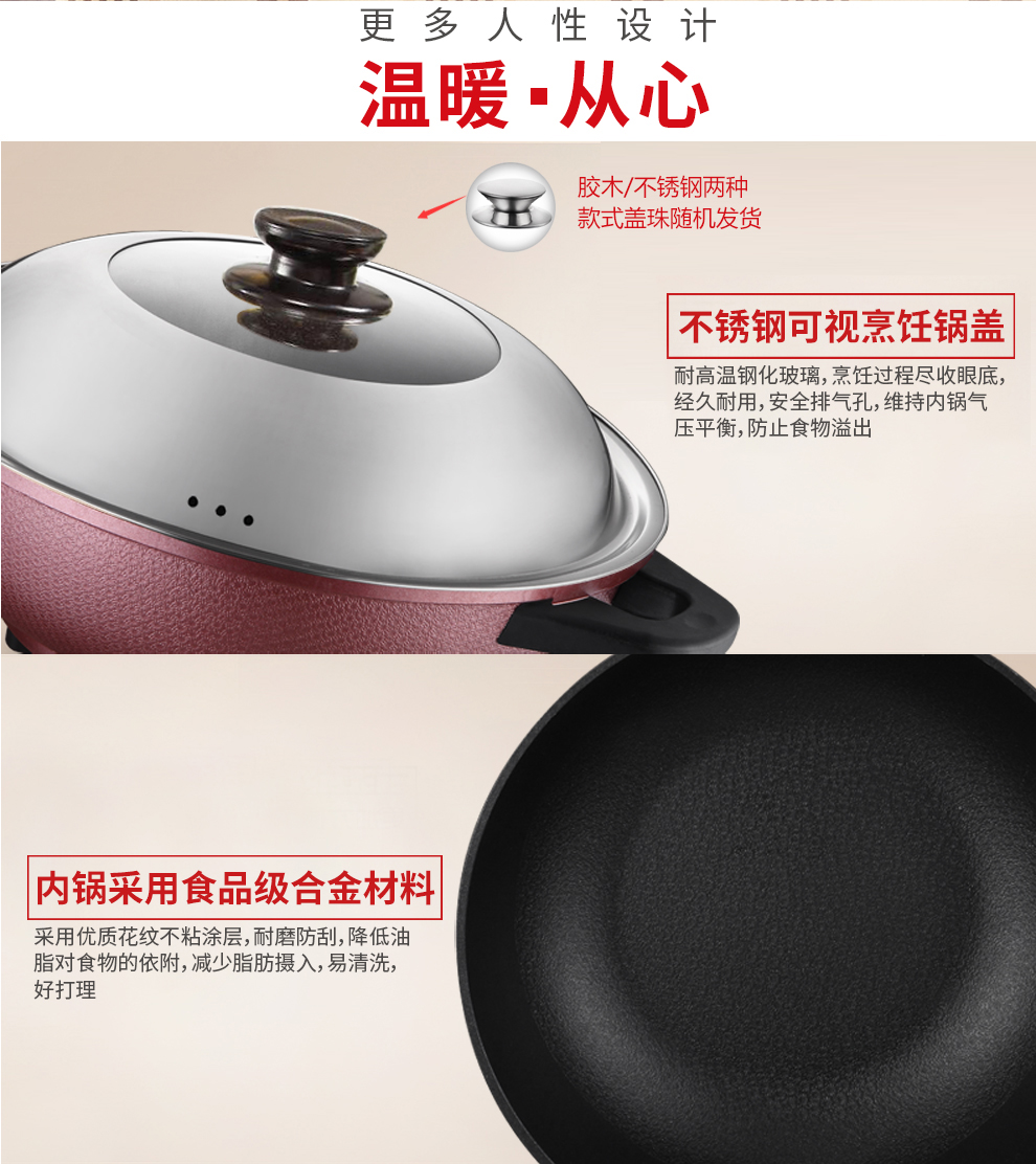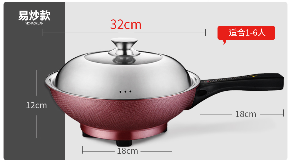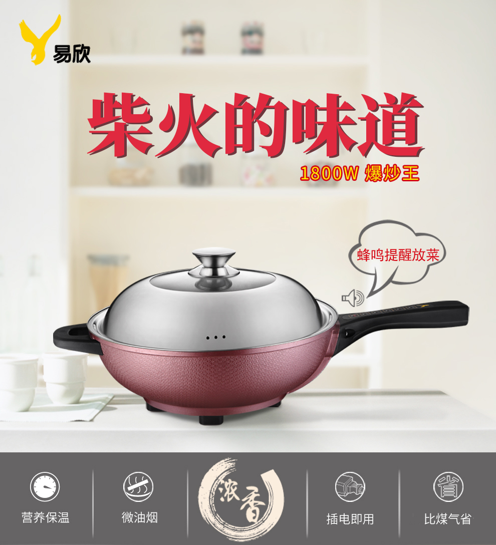 易欣 多功能家用电炒锅不粘锅插电炒菜锅电热锅电火锅电锅多用锅电炒菜蒸煮炖汤涮一体锅 1500W30CM小炒锅