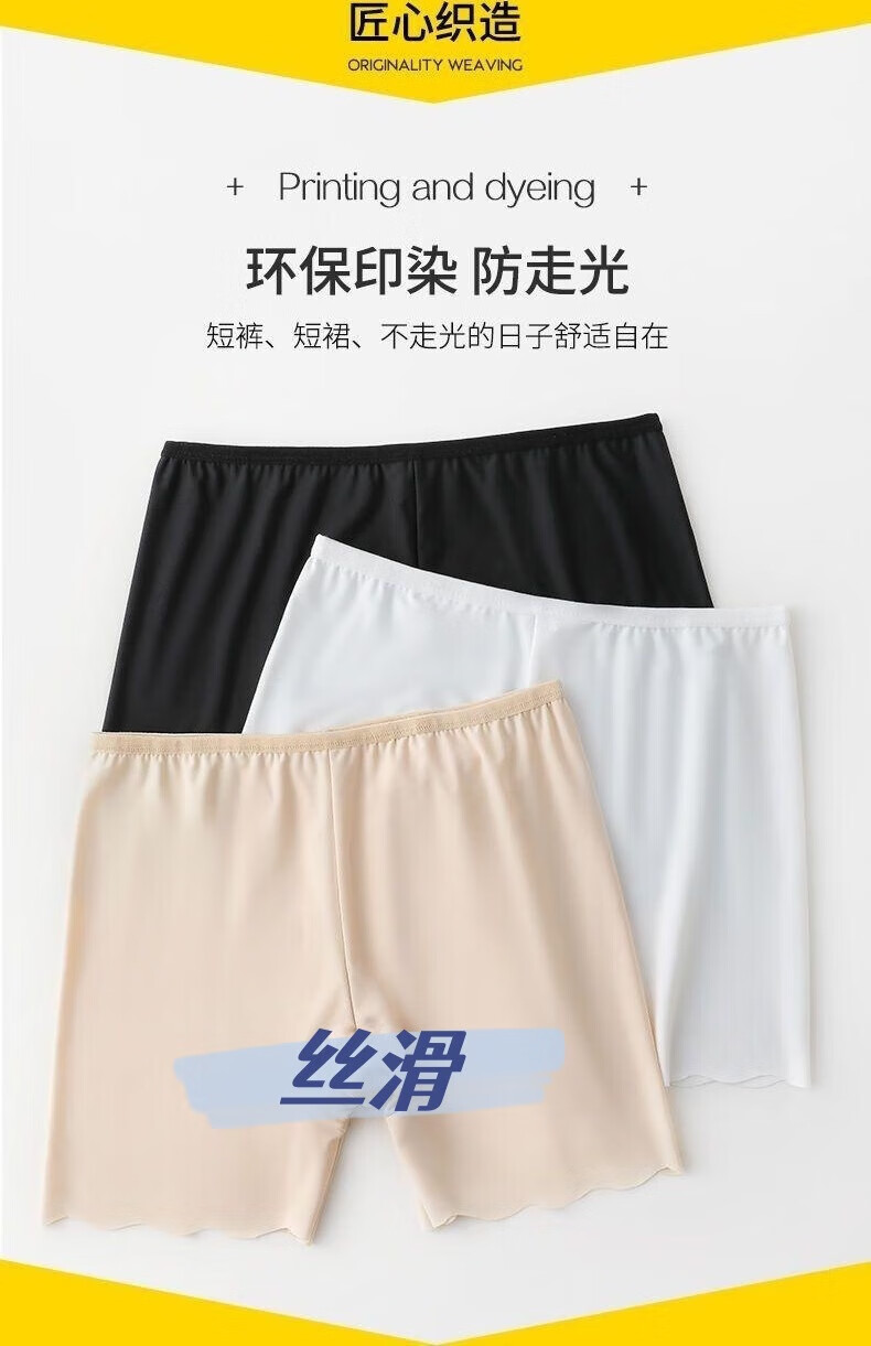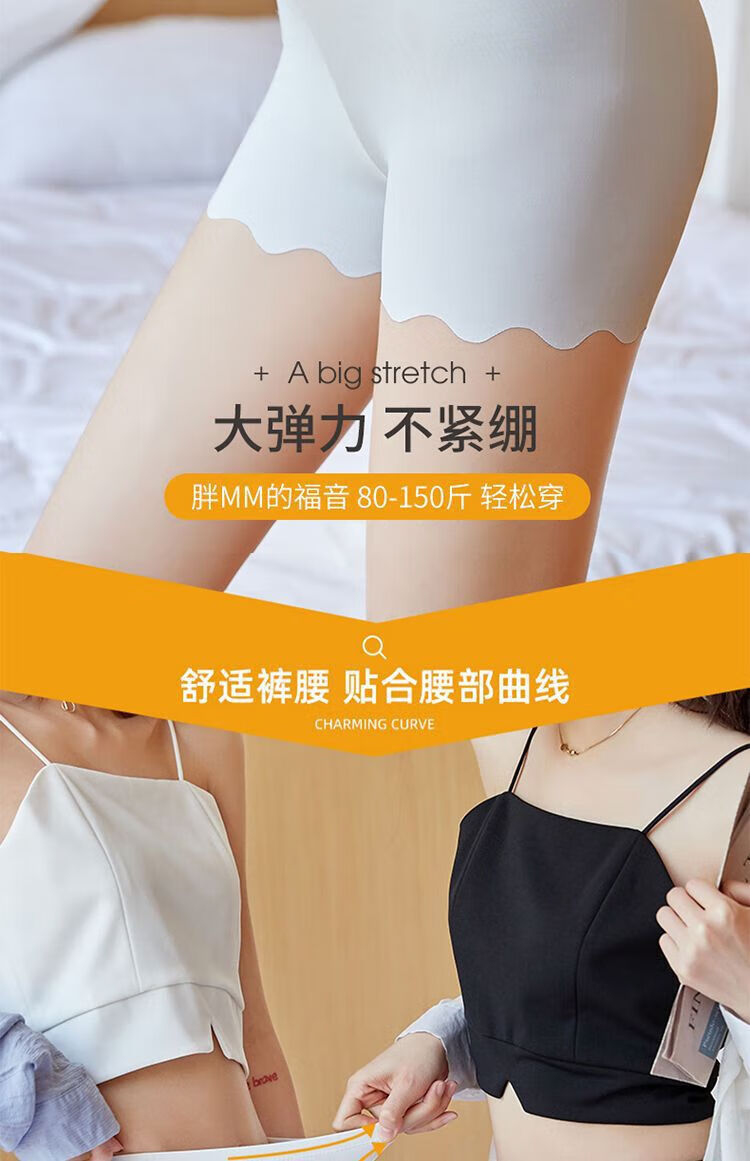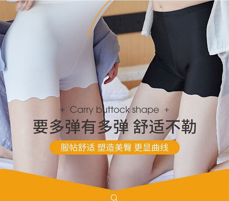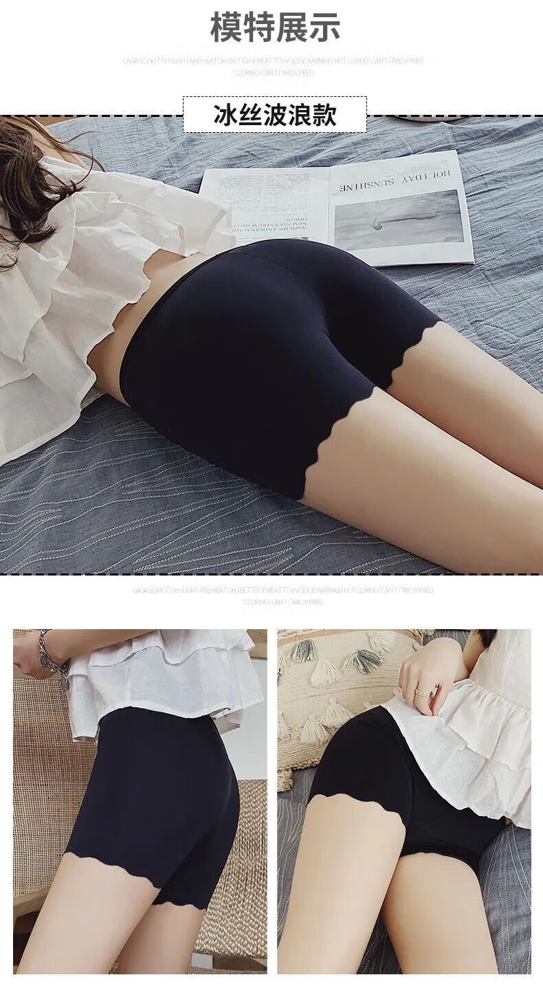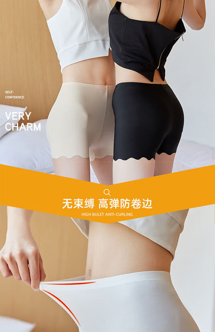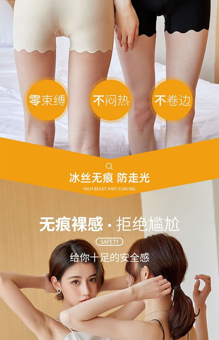 思织沁新款安全裤2条冰丝无痕防走光女士内裤性感不卷边自然腰打底短裤 平口款:黑色+杏色 XL 105-135斤
