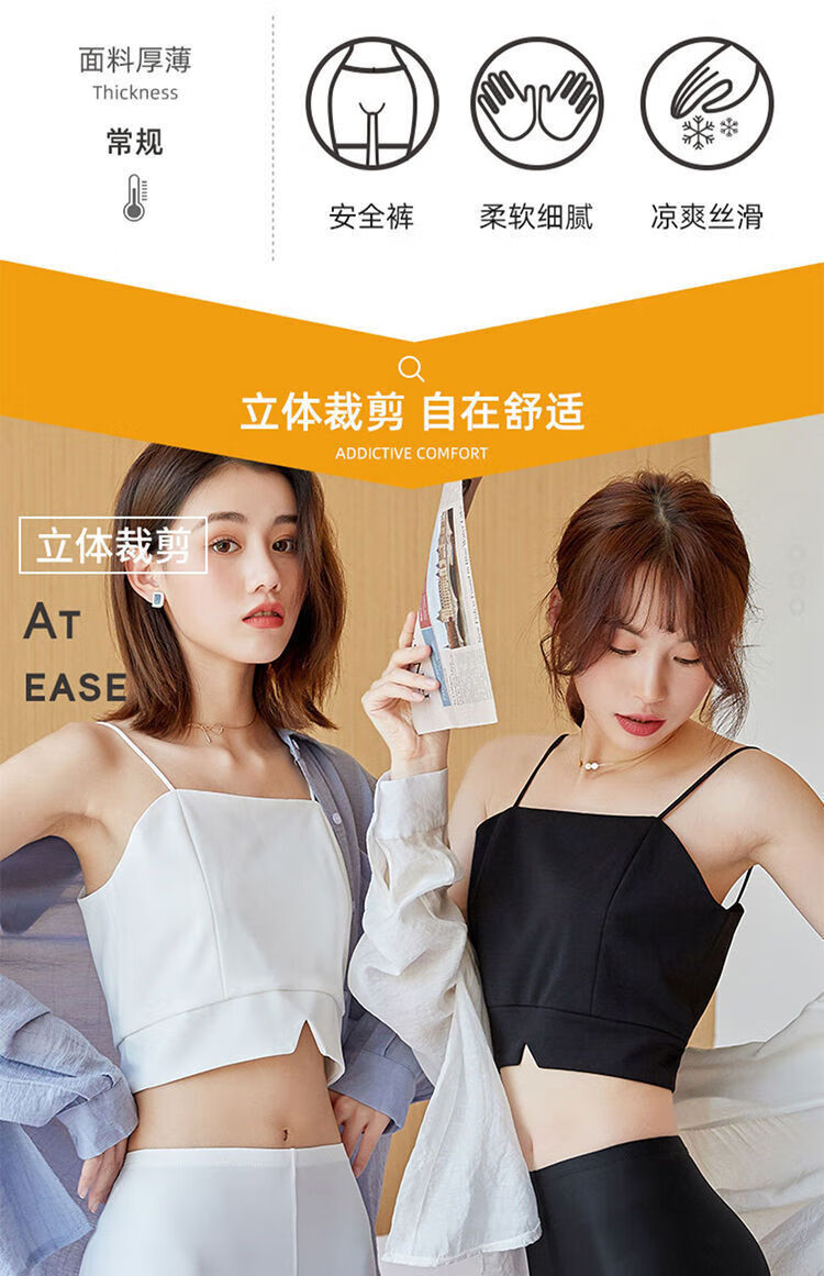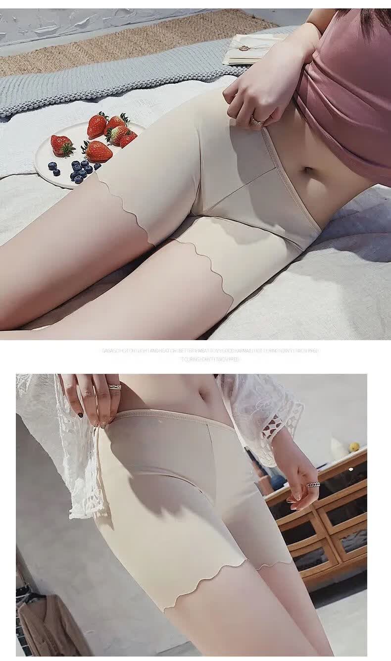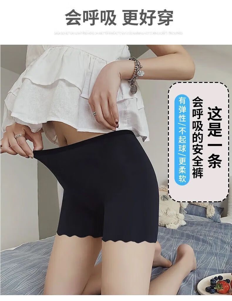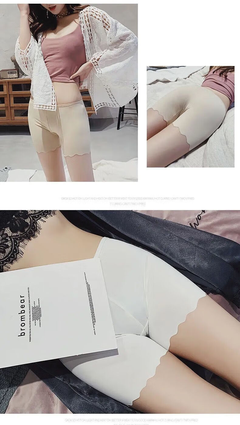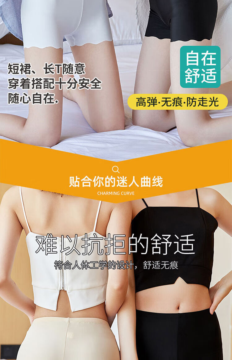 思织沁新款安全裤2条冰丝无痕防走光女士内裤性感不卷边自然腰打底短裤 平口款:黑色+杏色 XL 105-135斤