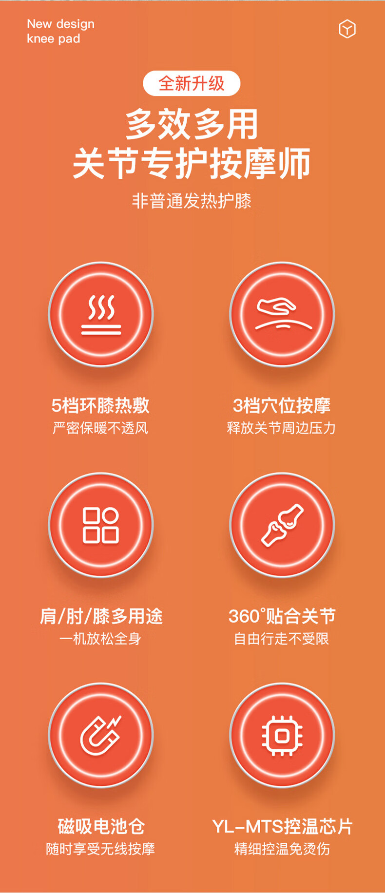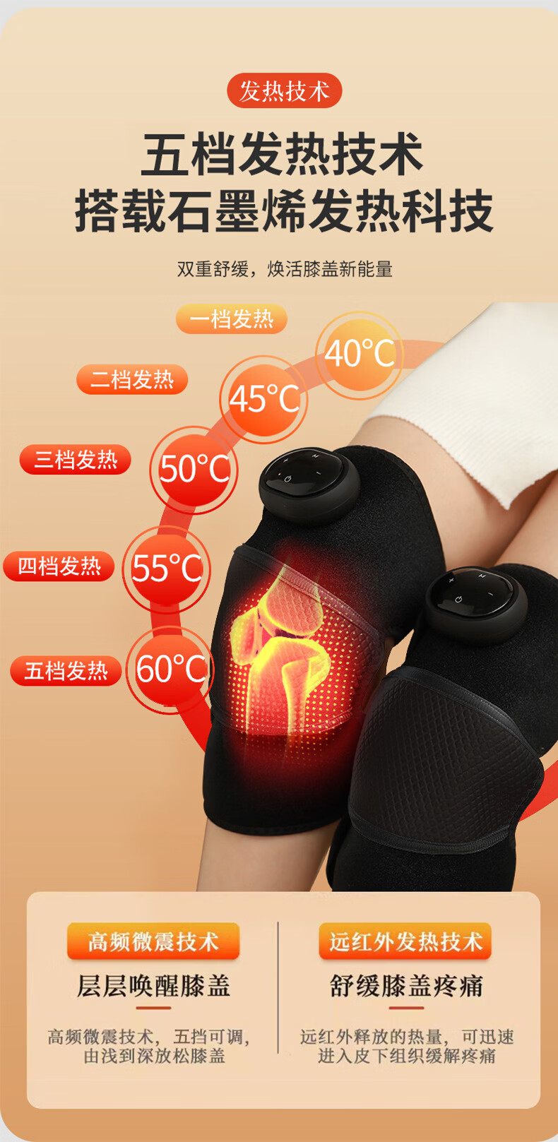 智会电加热护膝自发热膝盖按摩仪保暖老寒腿膝盖关节热敷疼痛理疗神器 KS-6916黑色液晶款 中文说明书