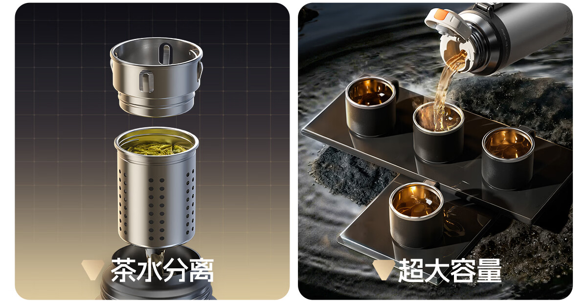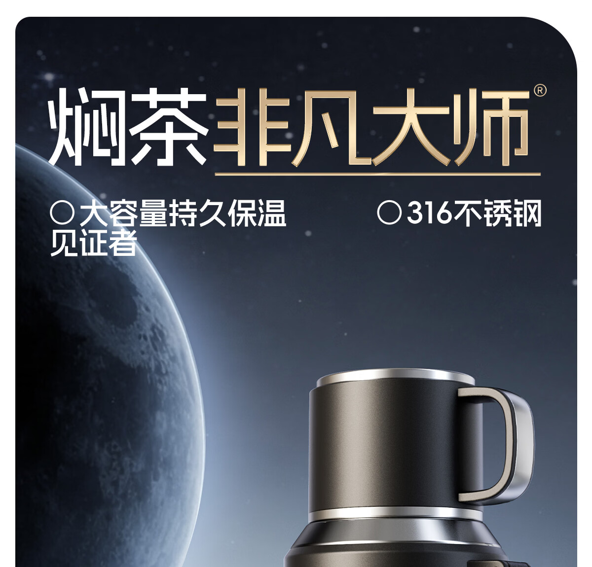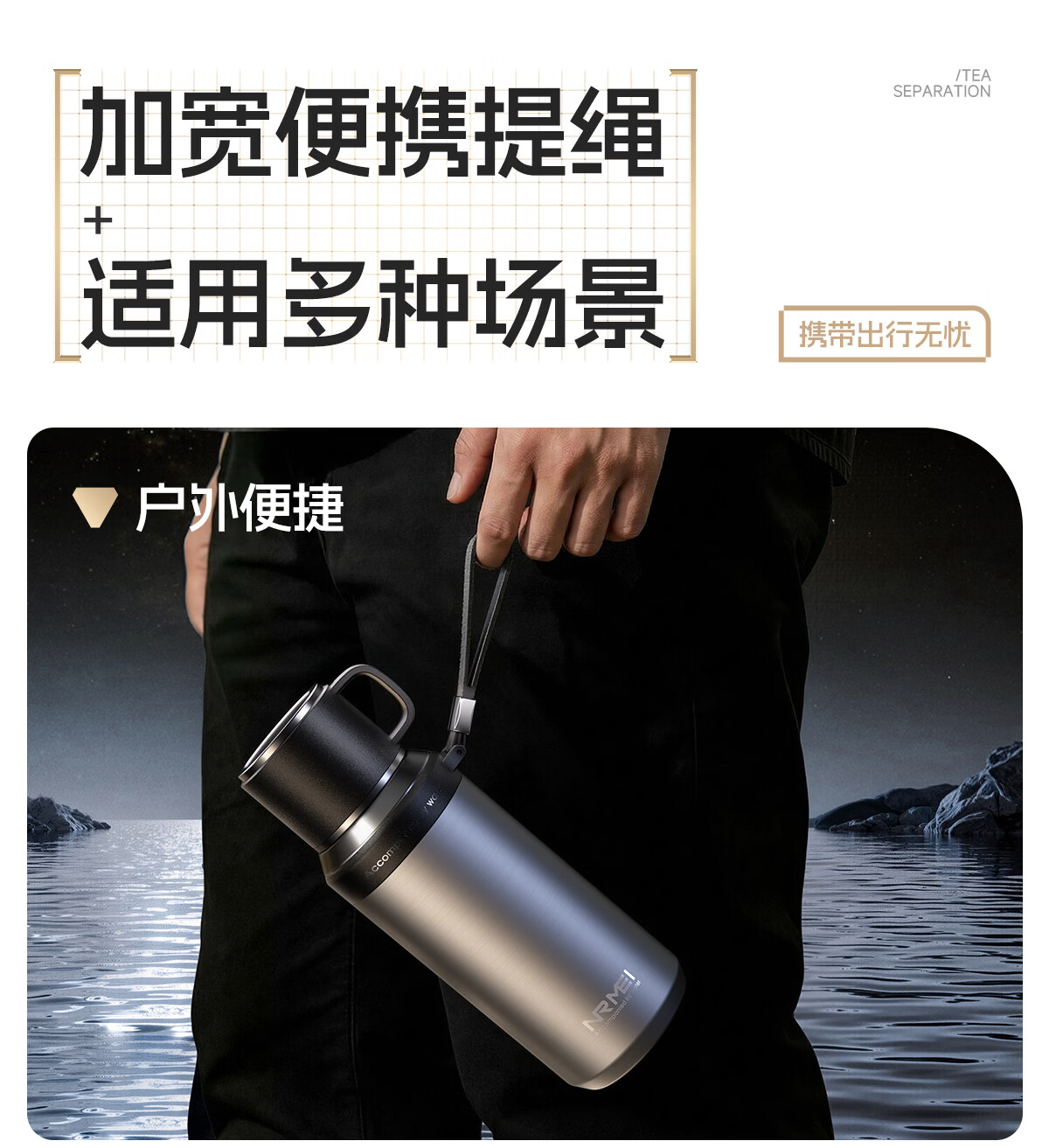 恩尔美大容量保温杯男士316不锈钢茶水分离72小时长效保温男款焖泡水杯 【星空银】800ml/保冷热