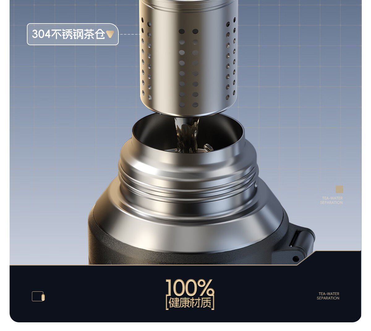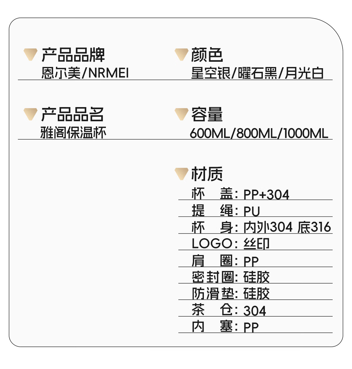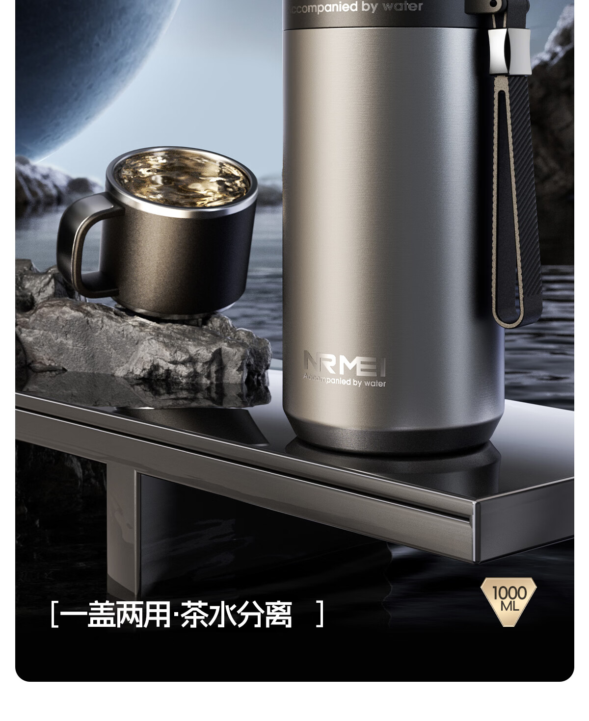 恩尔美大容量保温杯男士316不锈钢茶水分离72小时长效保温男款焖泡水杯 【星空银】800ml/保冷热