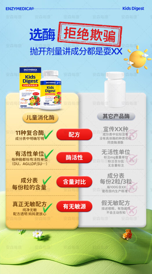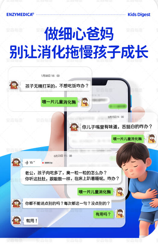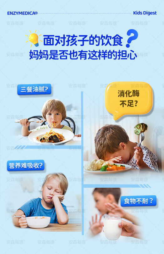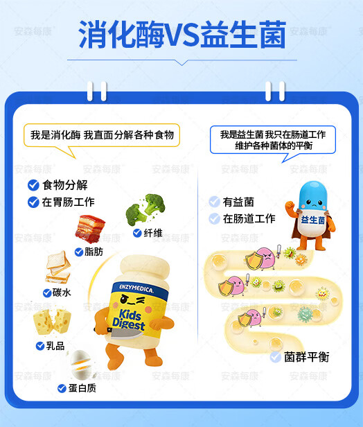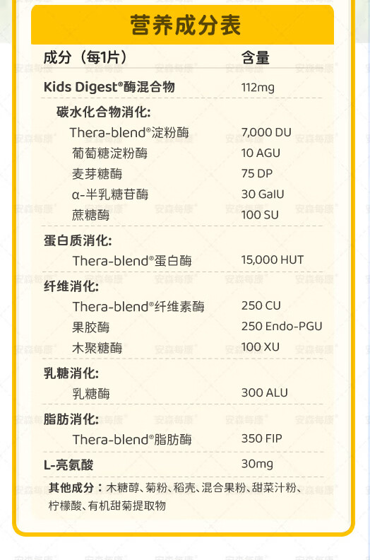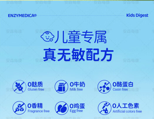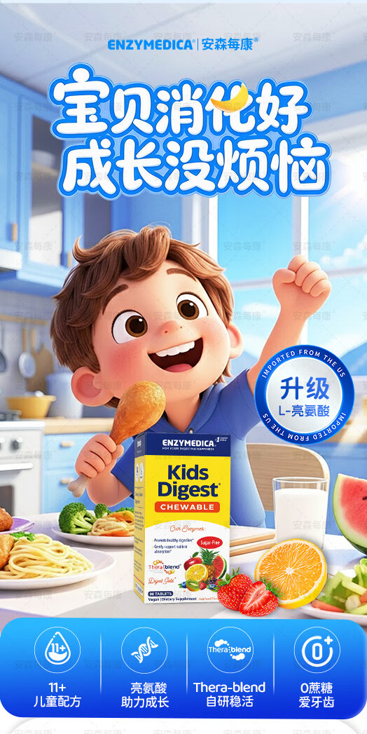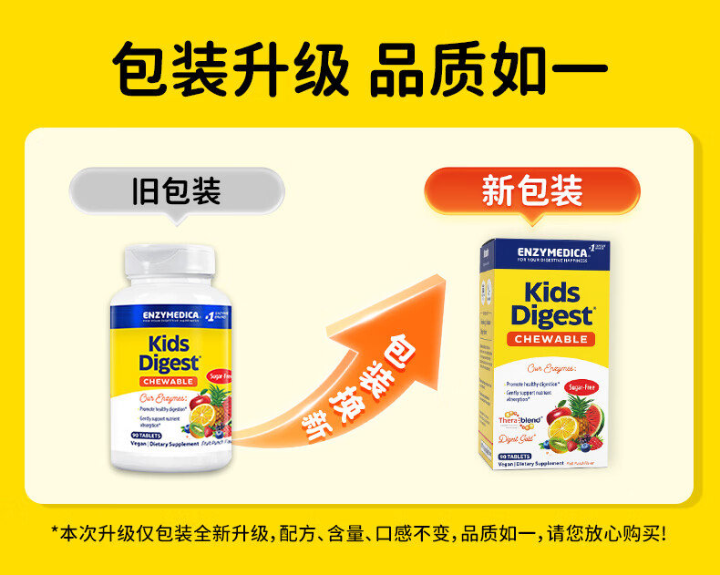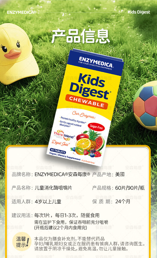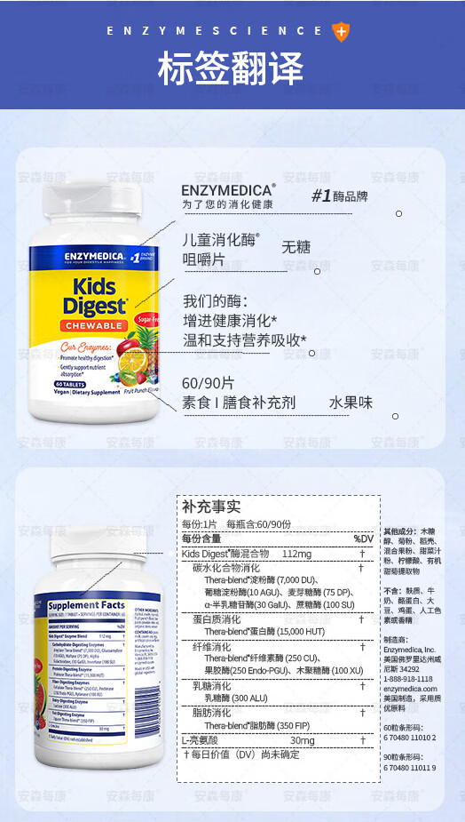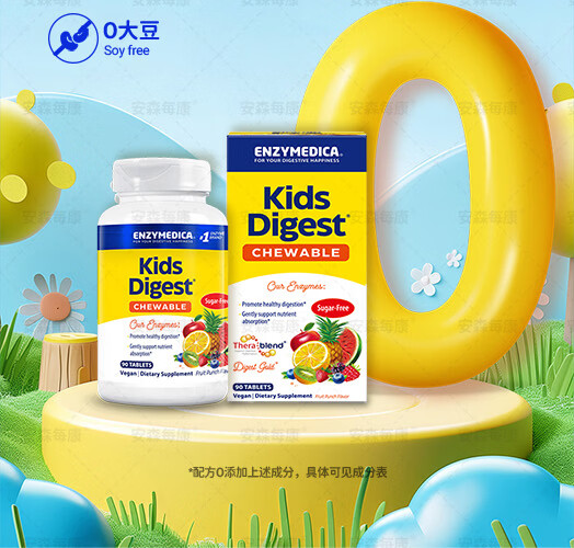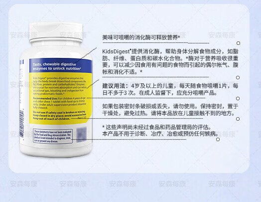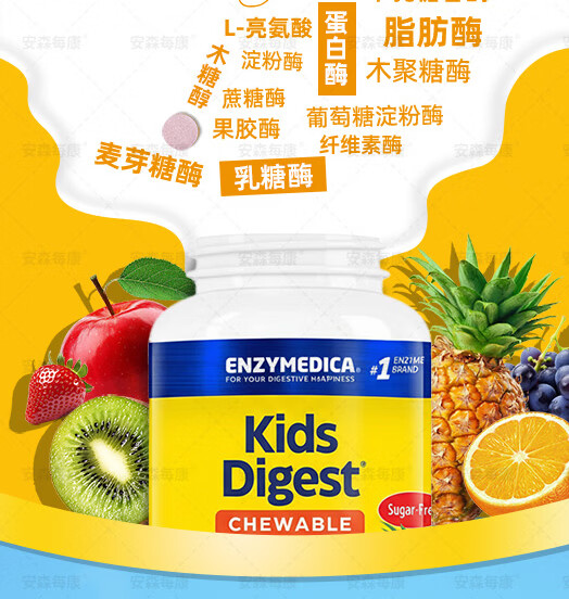 Enzymedica美国进口儿童营养消化酶咀嚼片11种复合配方调理肠胃消积食益生菌 儿童消化酶咀嚼片 60粒*1瓶