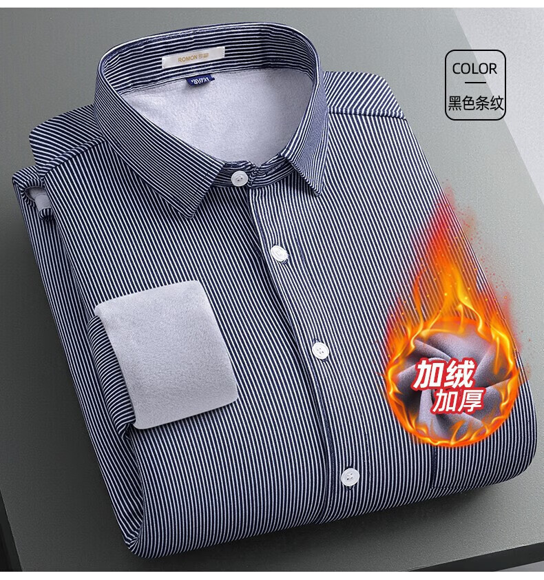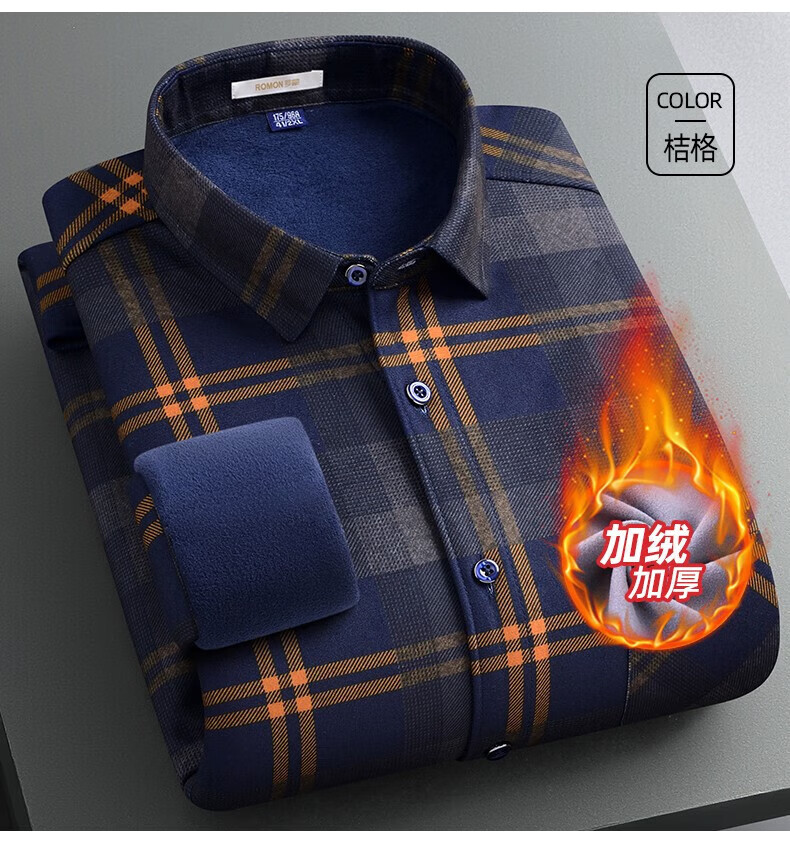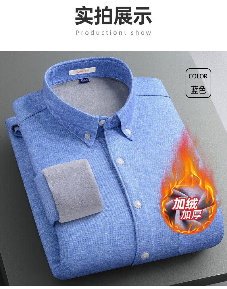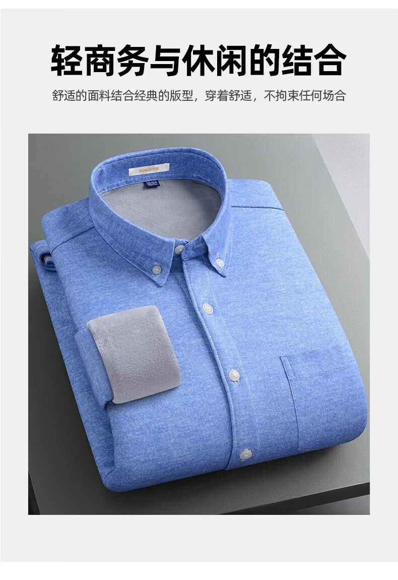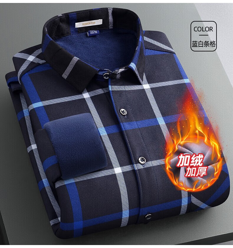 罗蒙(ROMON)加绒加厚保暖衬衫男秋冬新款中青年商务休闲百搭男士衬衣 蓝色 XL