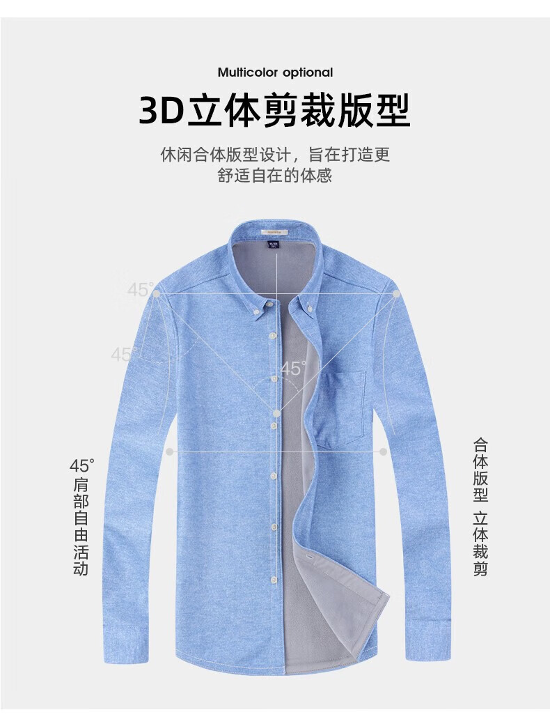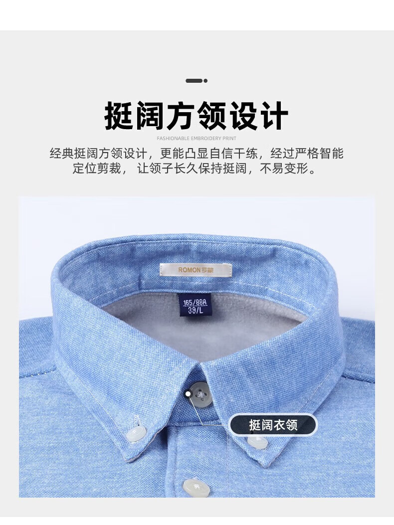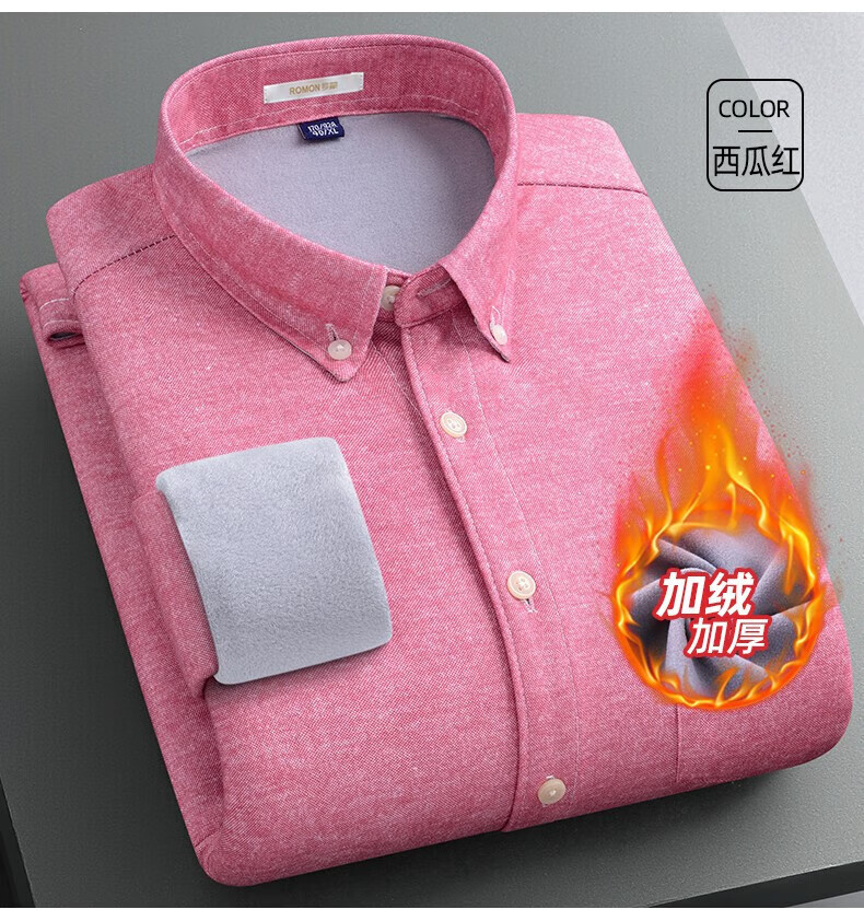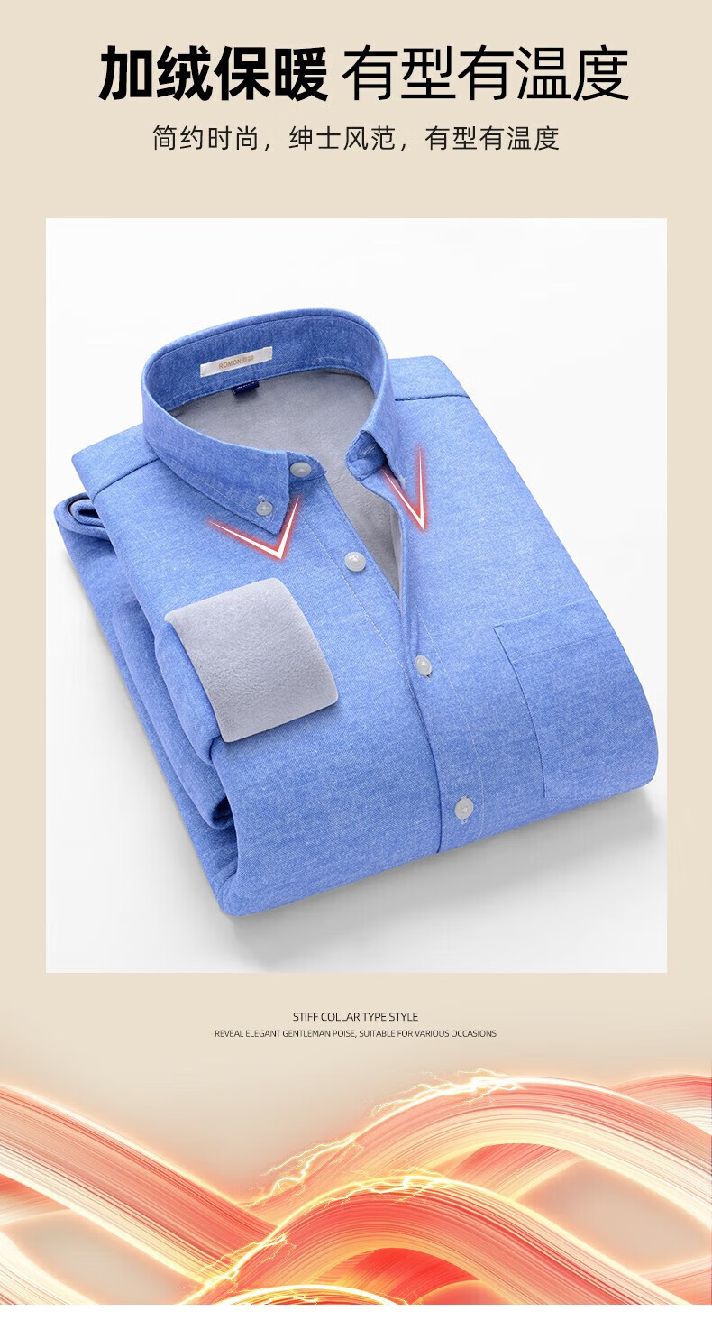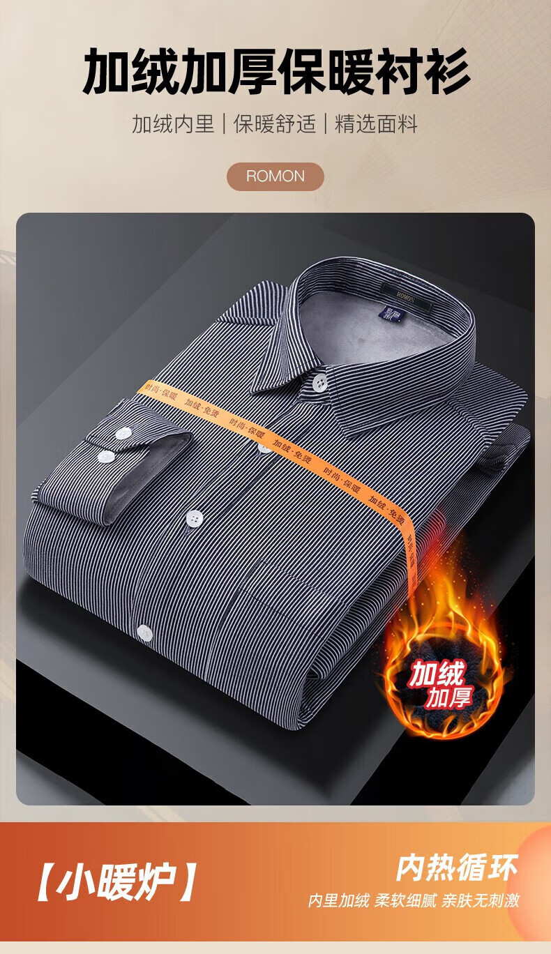罗蒙(ROMON)加绒加厚保暖衬衫男秋冬新款中青年商务休闲百搭男士衬衣 蓝色 XL