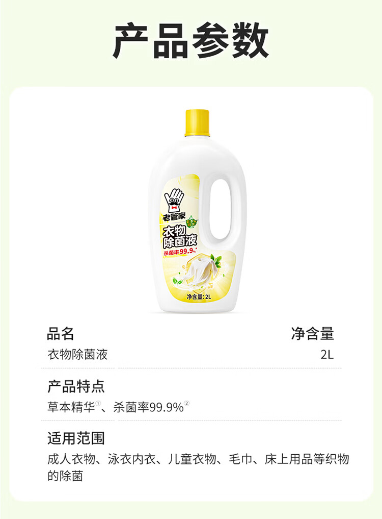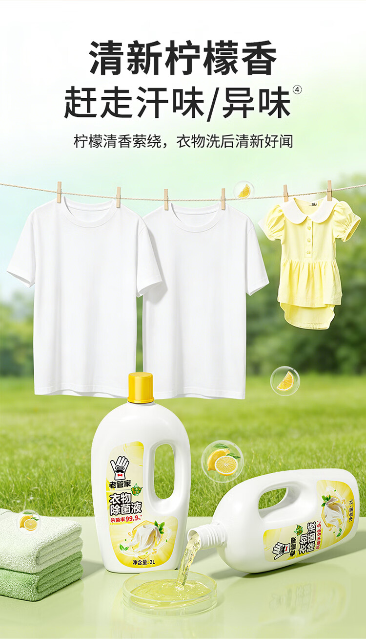 老管家衣物除菌液2L儿童婴儿内衣内裤洗衣除菌液清香除异味深层有效杀菌 【爆 店长主推】2L*1瓶 放心混洗