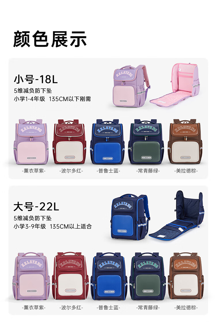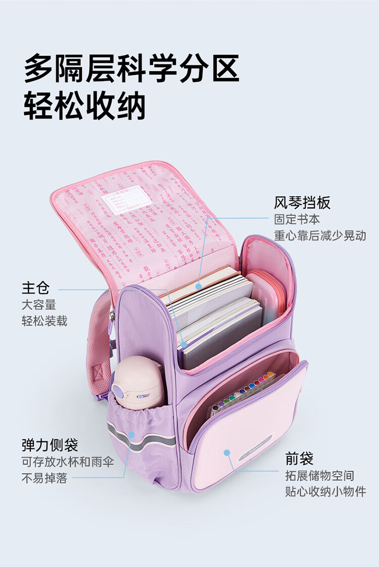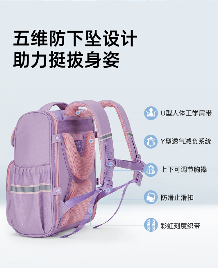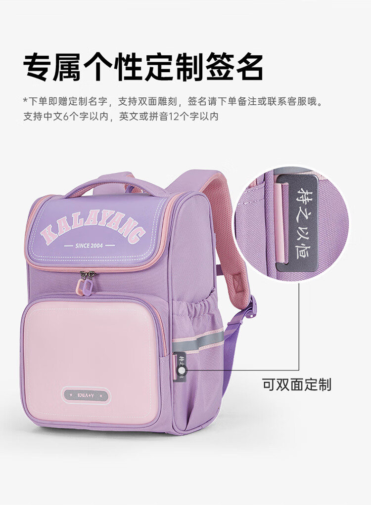 卡拉羊【蒋勤勤代言】小学生书包18/22L五维防下坠减负男女双肩包背包 【22L】薰衣草紫