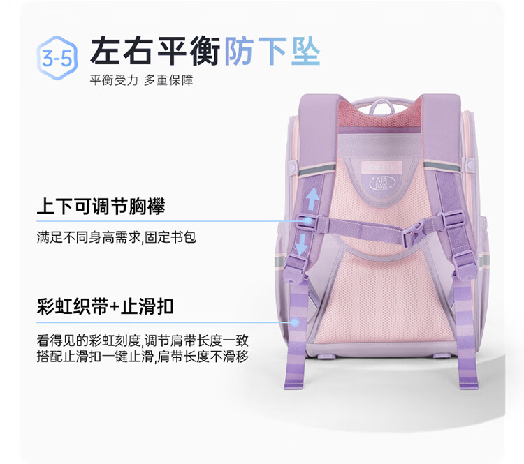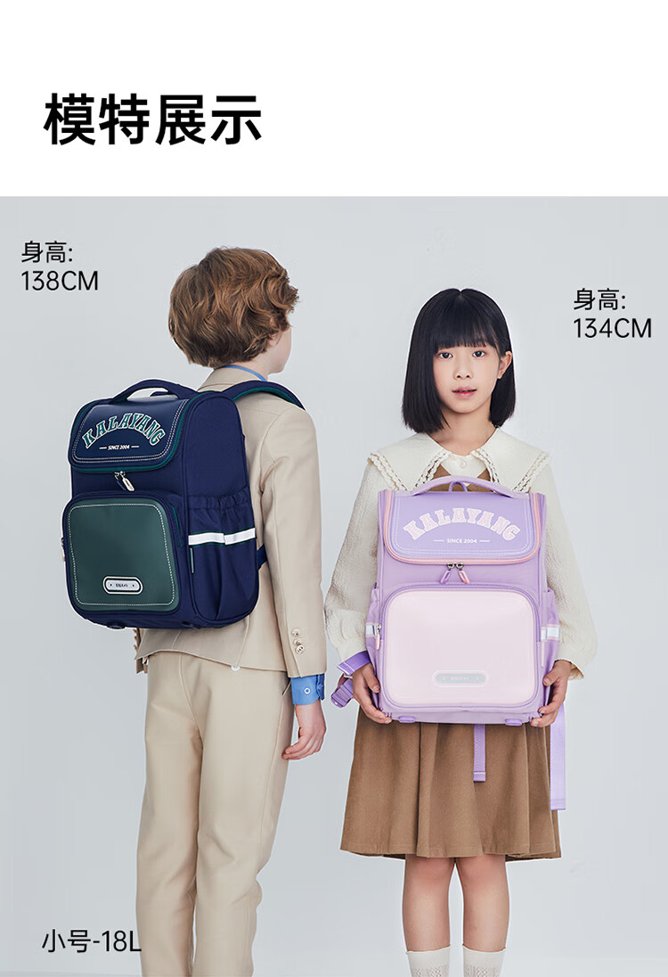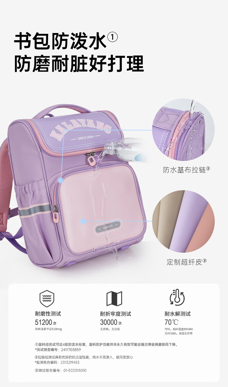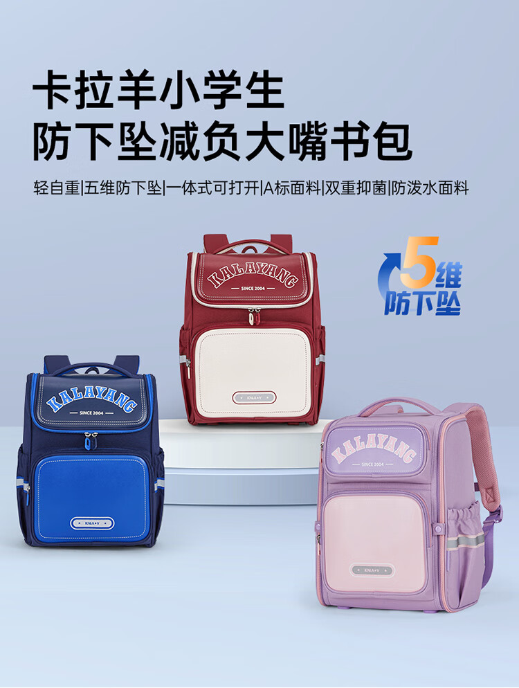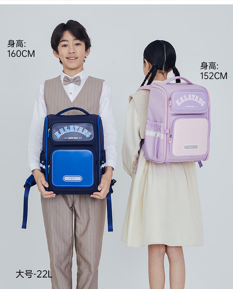 卡拉羊【蒋勤勤代言】小学生书包18/22L五维防下坠减负男女双肩包背包 【22L】薰衣草紫