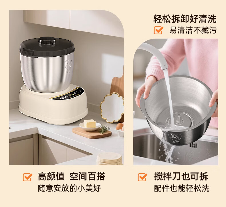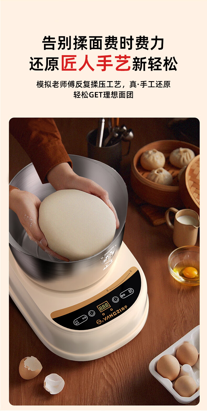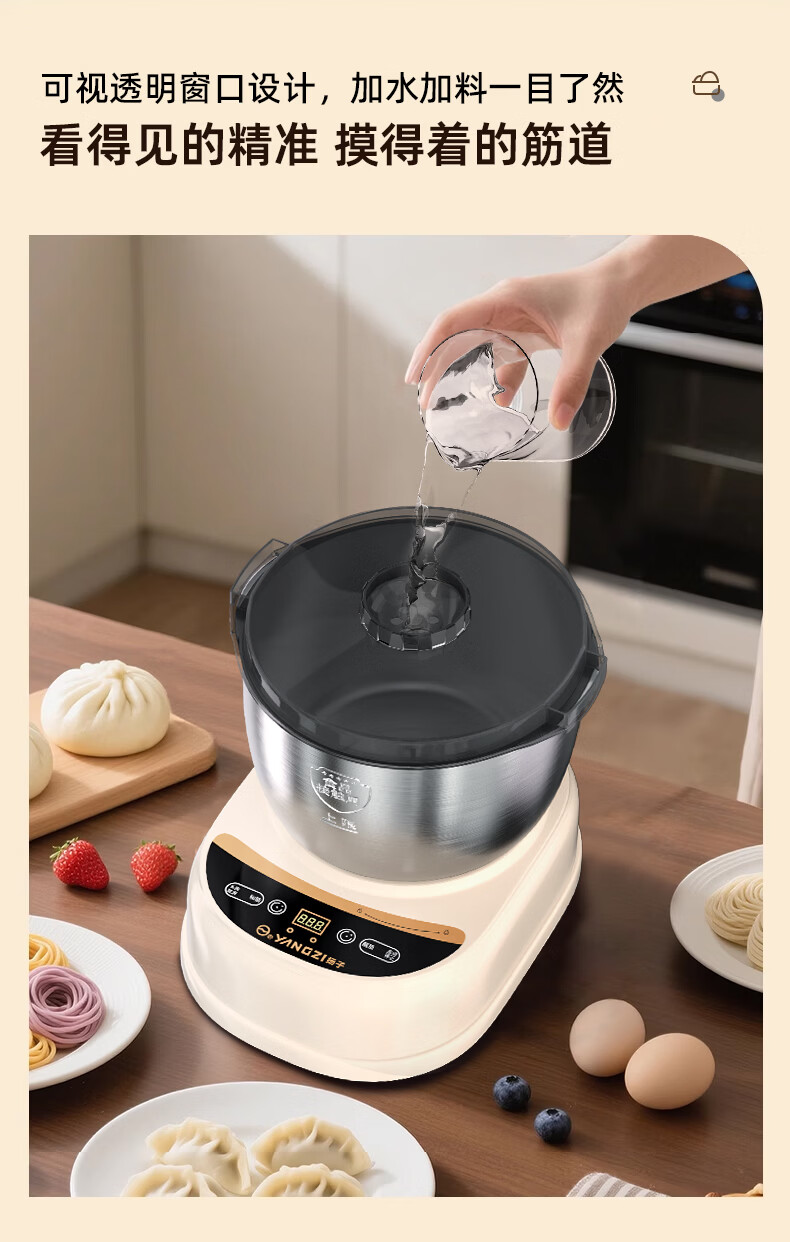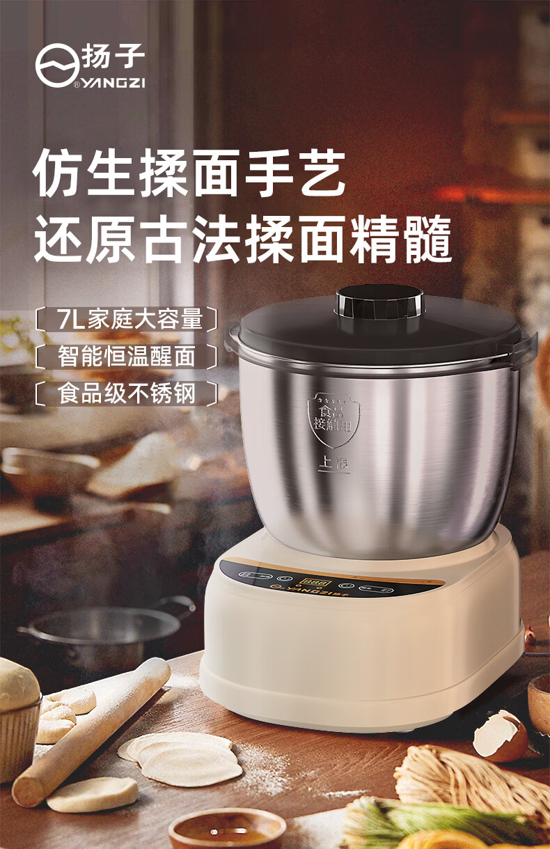 扬子和面机家用揉面机厨师机全自动搅面机多功能智能醒面发面机面包面粉搅拌机大容量活面机H-001 【7L家庭款】快速出膜 恒温发酵 7L
