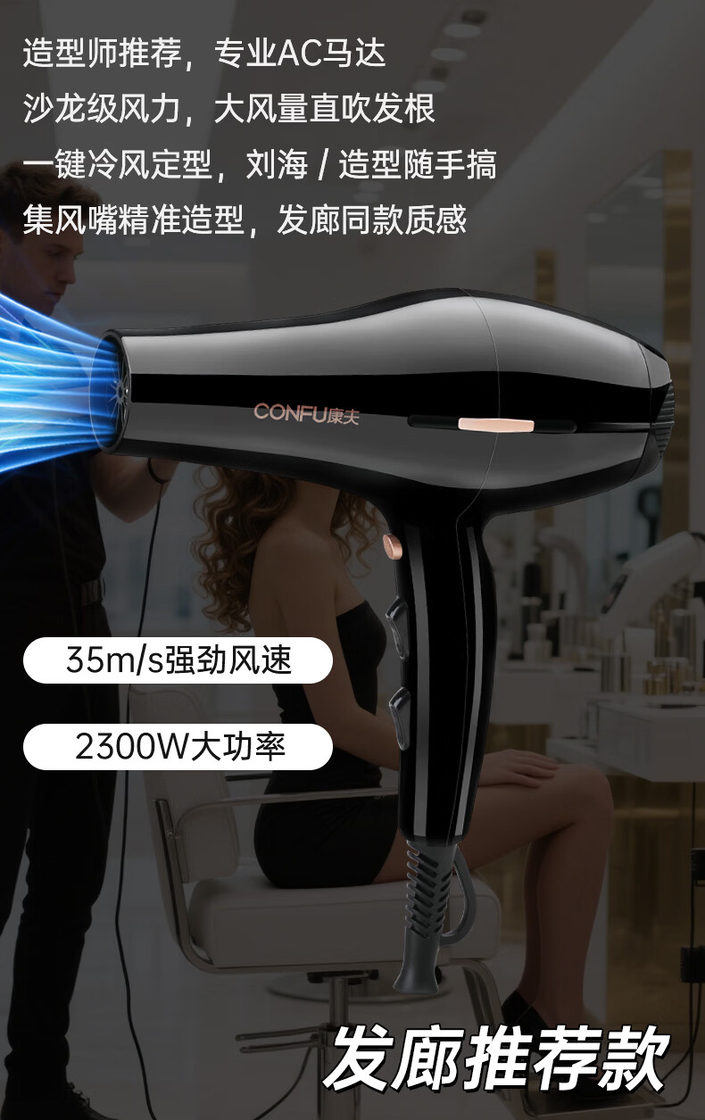 康夫(CONFU)电吹风机2300W大功率家用速干大风力护发吹头发理发店发廊专用生日礼物吹风筒KF-8926