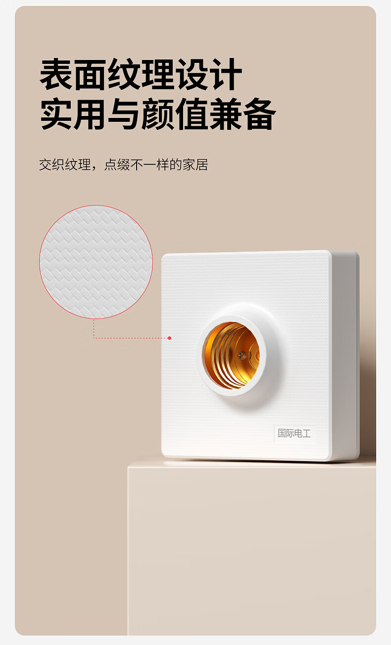国际电工E27螺口通用型灯头灯座家用明装可控LED节能灯泡明线平口底座 (中号)圆形灯座 1只装