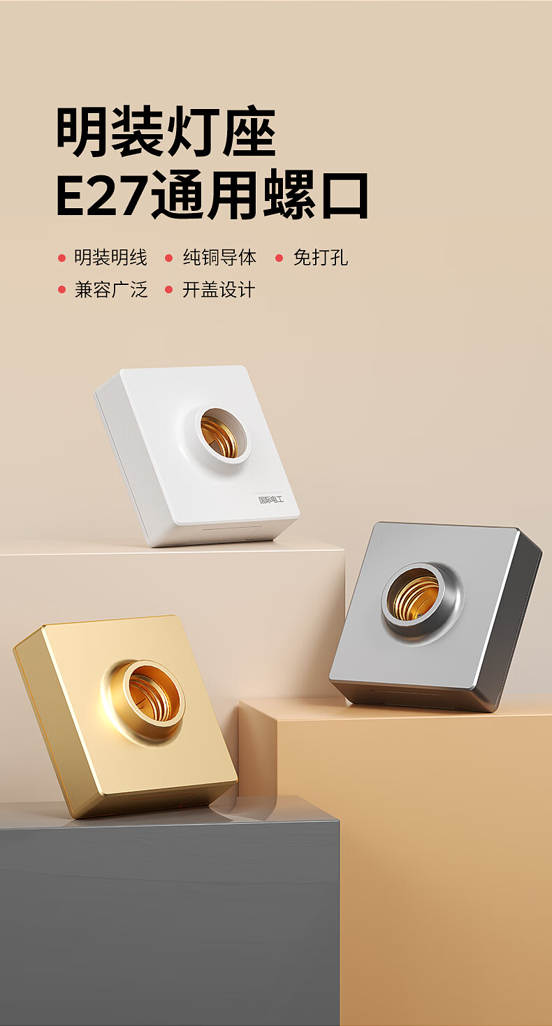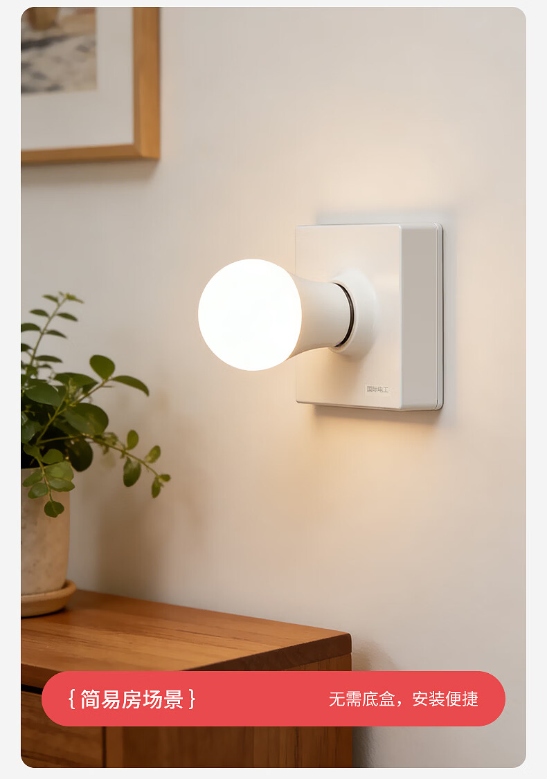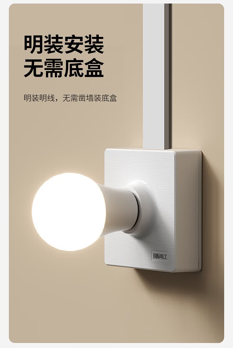 国际电工家用E27螺口明装灯座无需底盒方形家用LED节能灯底座螺旋灯头灯座 明装灯座【白色】