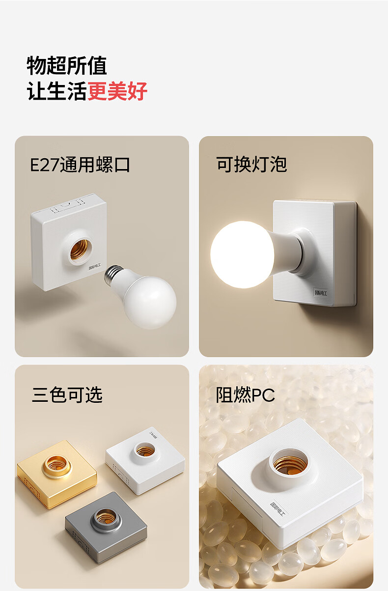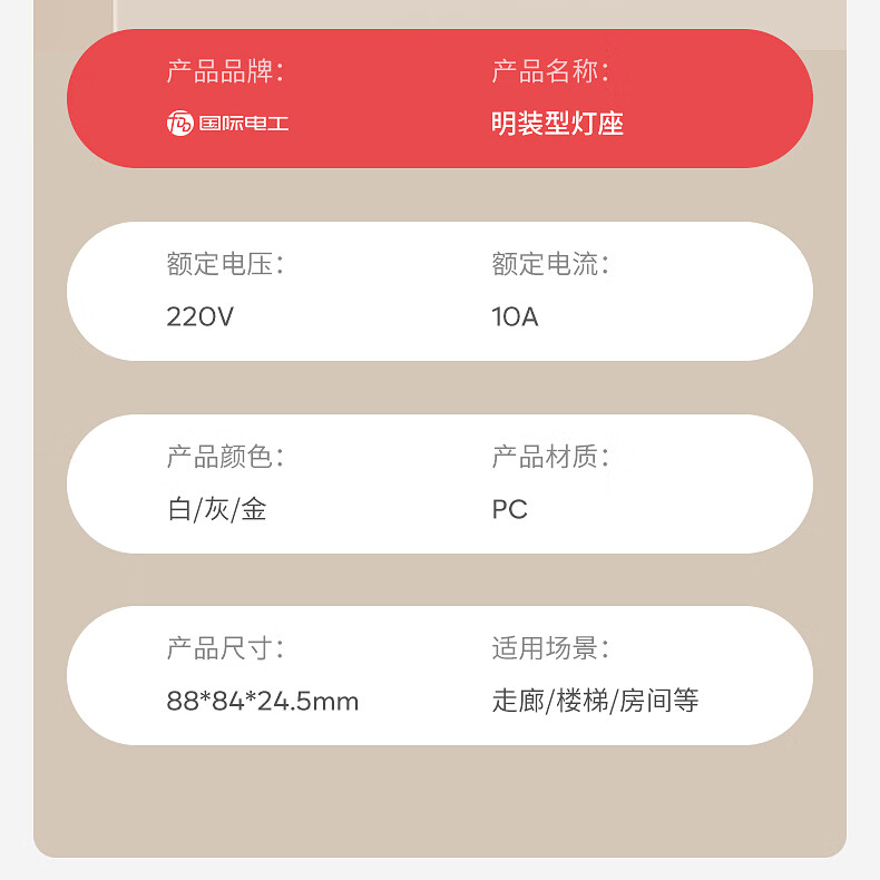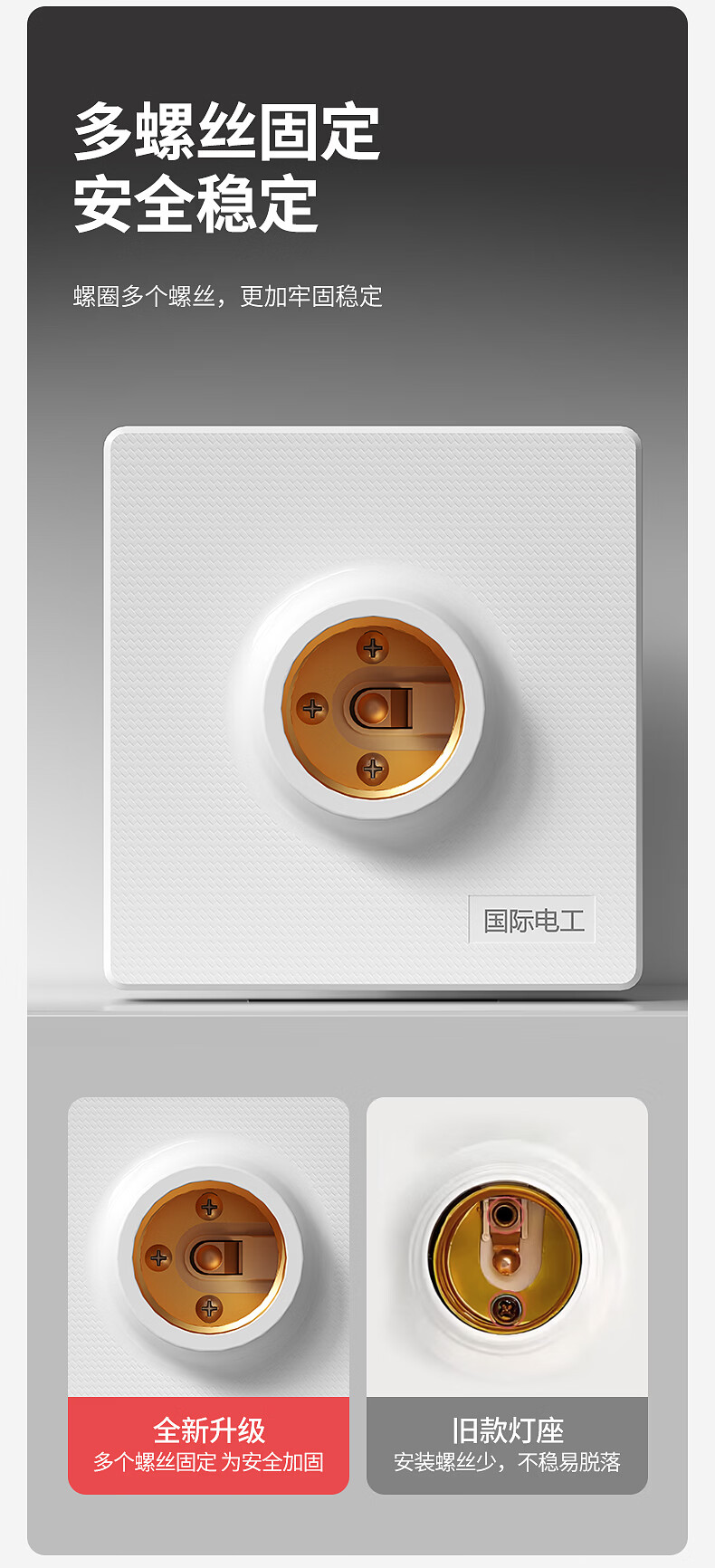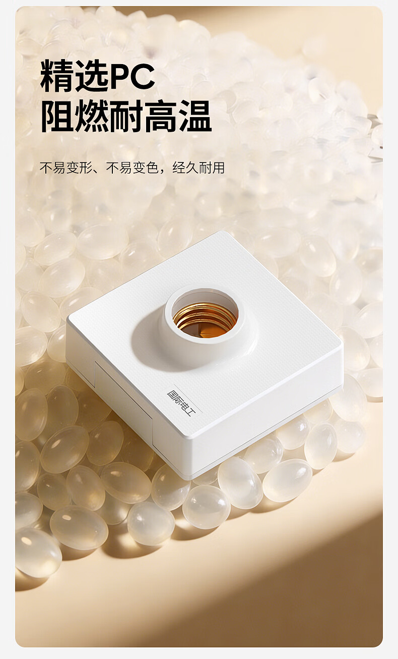国际电工家用E27螺口明装灯座无需底盒方形家用LED节能灯底座螺旋灯头灯座 明装灯座【白色】
