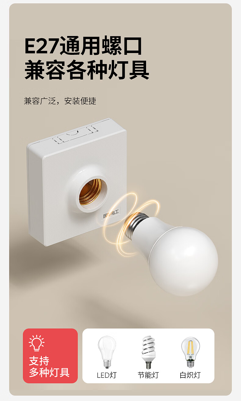 国际电工E27螺口通用型灯头灯座家用明装可控LED节能灯泡明线平口底座 (小号)圆形灯座 1只装