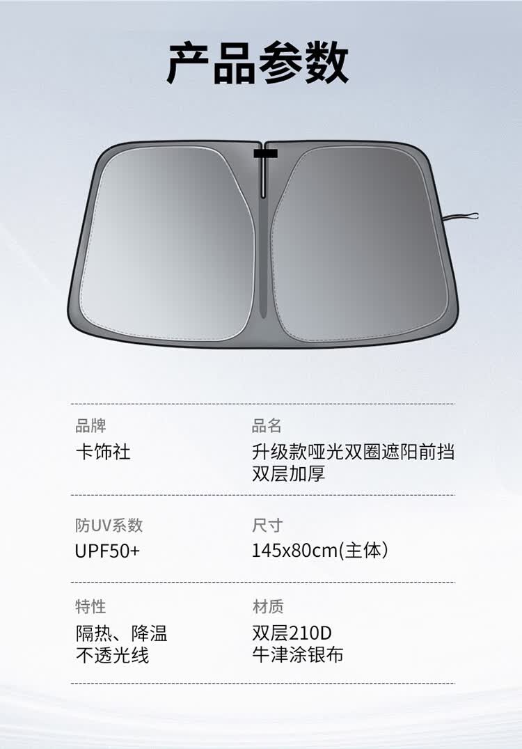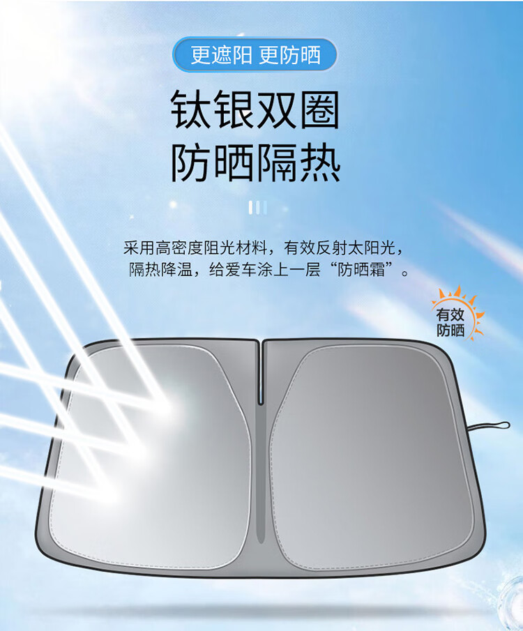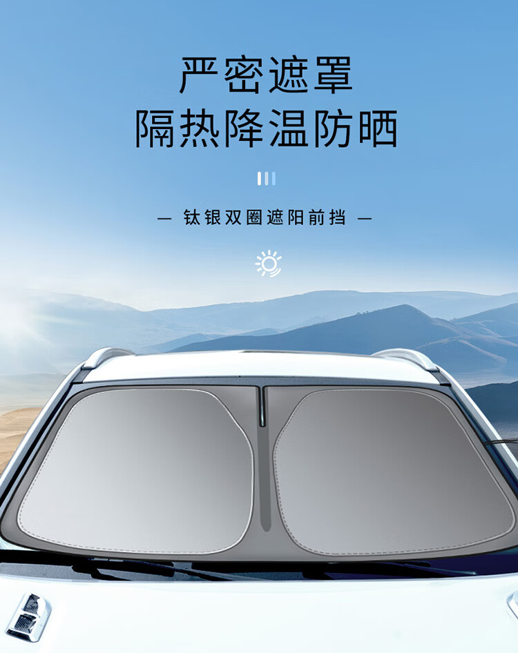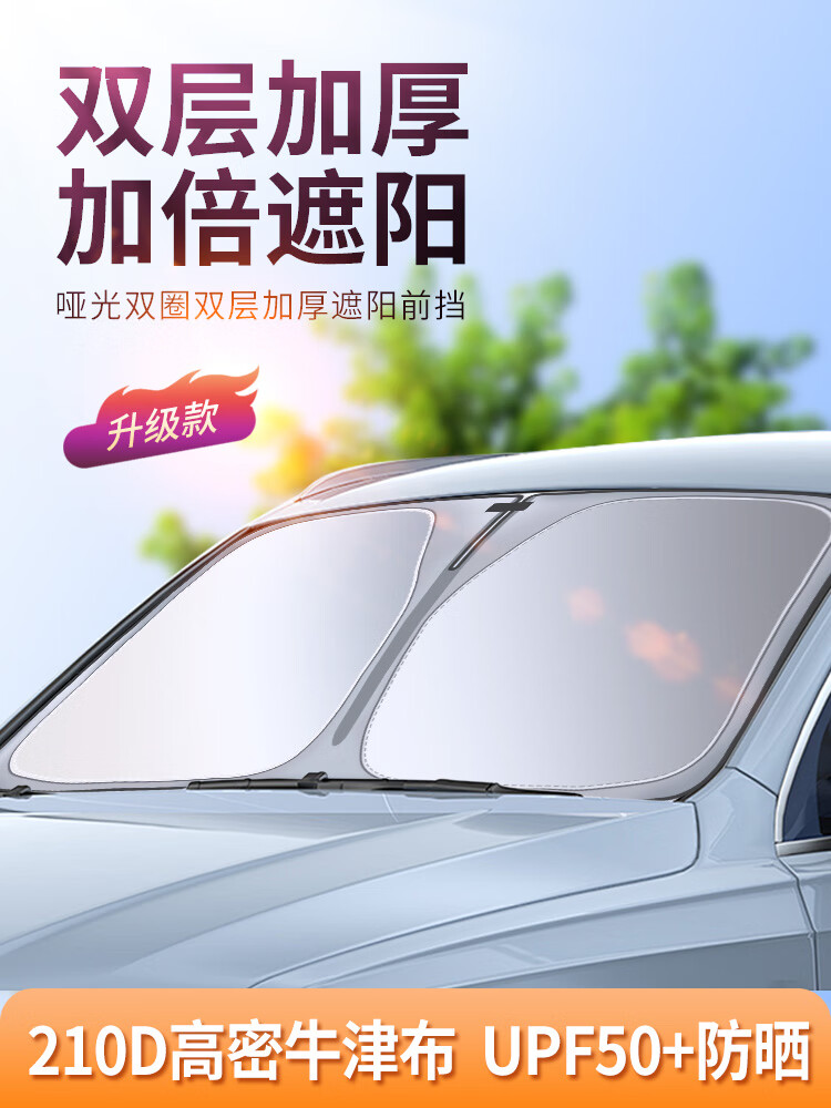 卡饰社(CarSetCity)汽车防晒遮阳帘遮阳挡前挡车窗遮阳帘遮阳伞防晒罩车衣遮阳板 爆款钛银双圈(车内用)