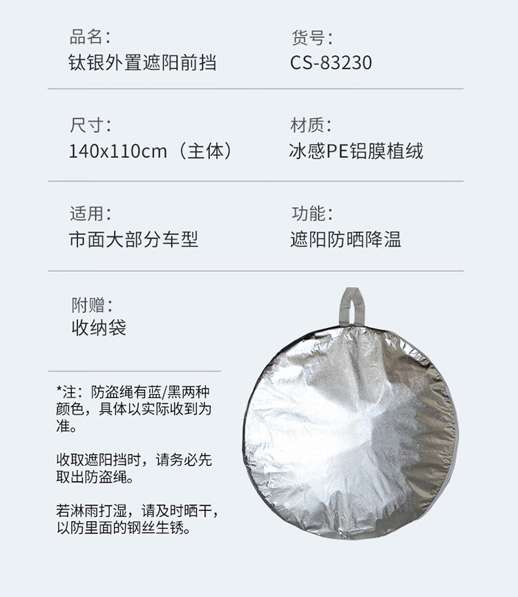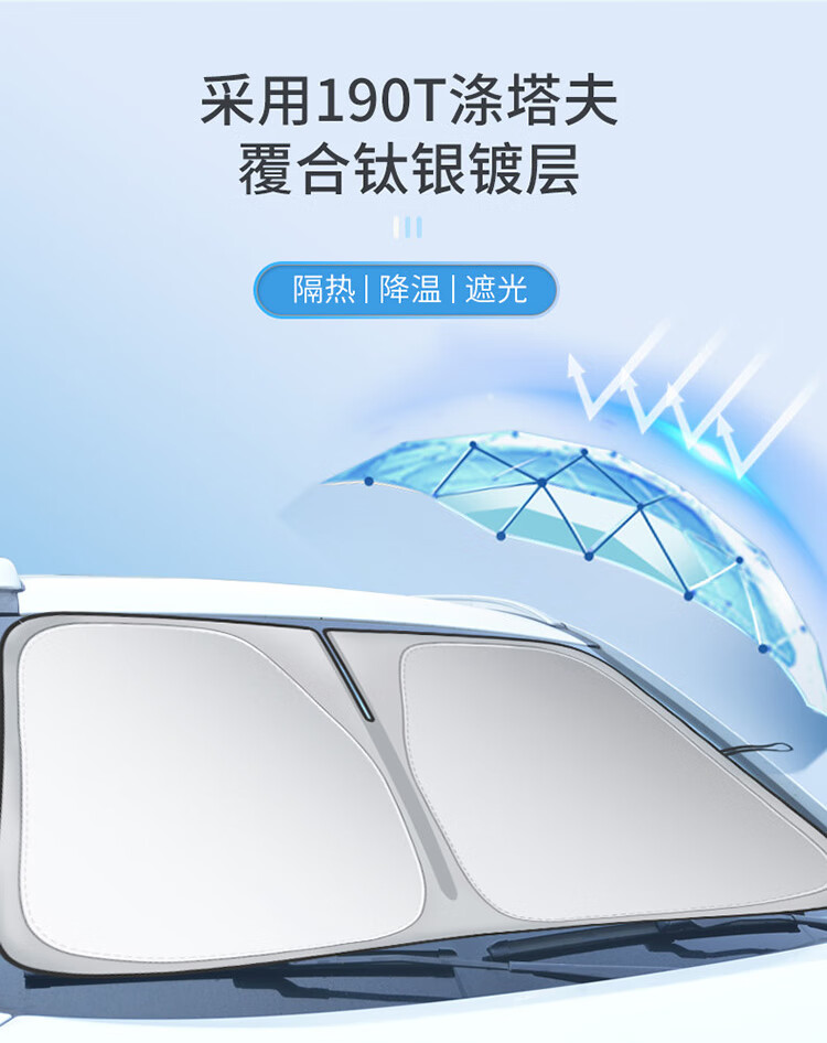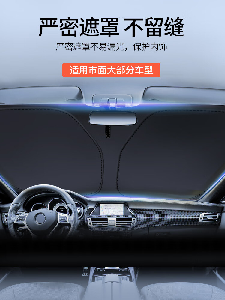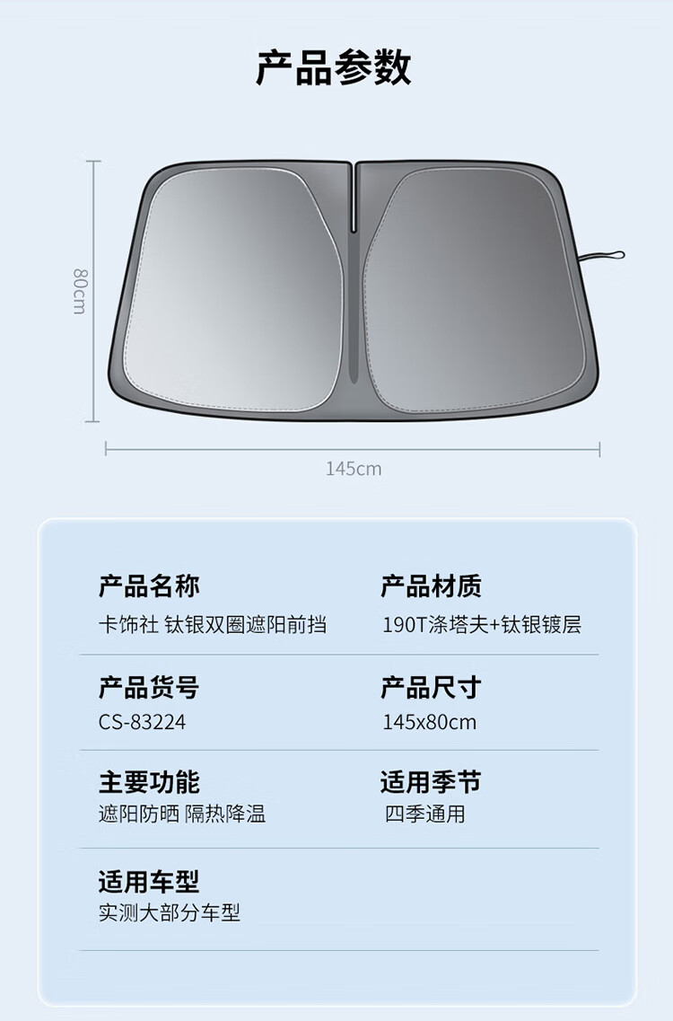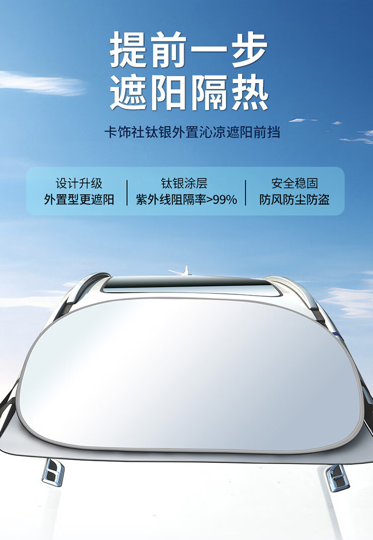 卡饰社(CarSetCity)汽车防晒遮阳帘遮阳挡前挡车窗遮阳帘遮阳伞防晒罩车衣遮阳板 爆款钛银双圈(车内用)