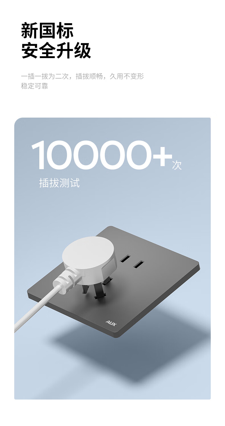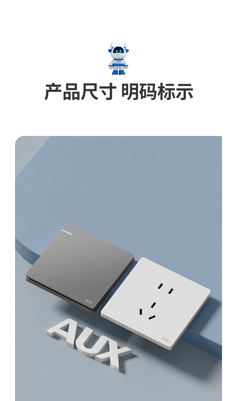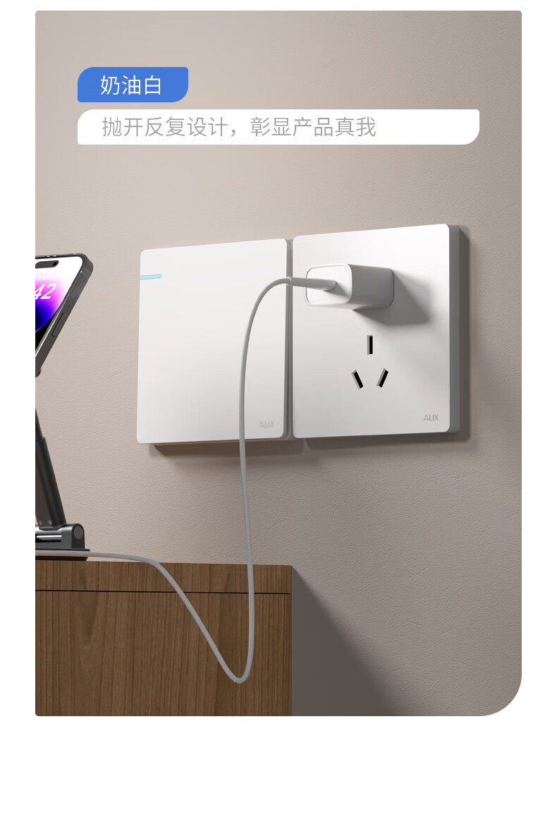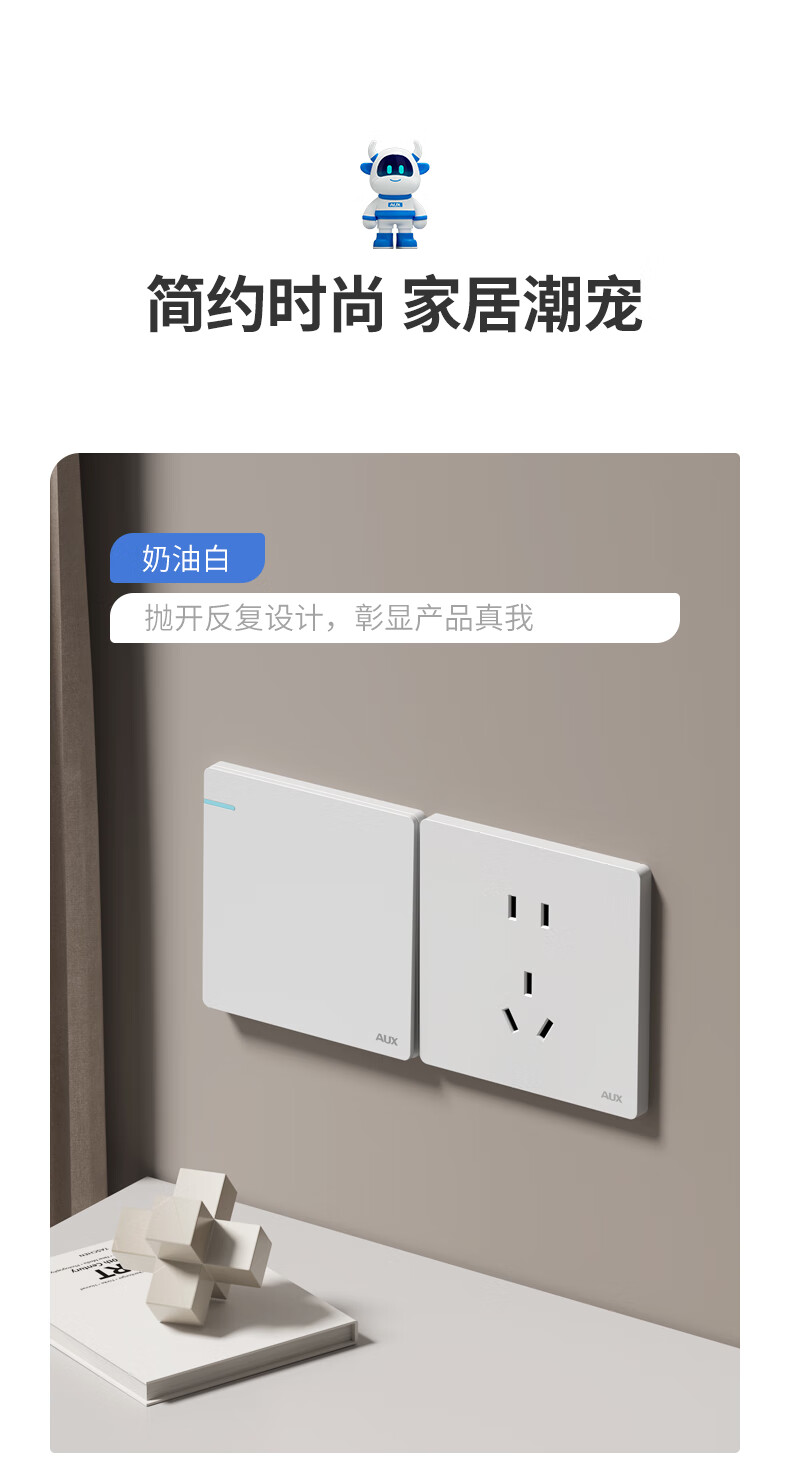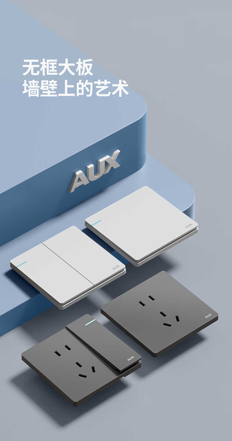 奥克斯 开关插座面板86型无边框美学大板白色墙壁开关二三插电源插座 电视电脑(6类)