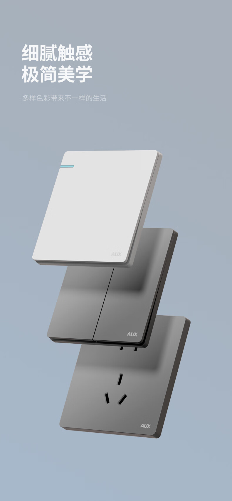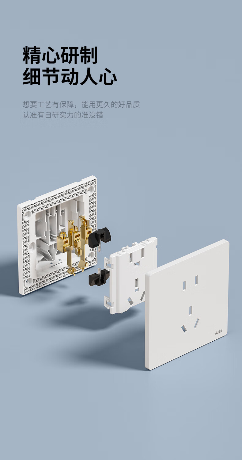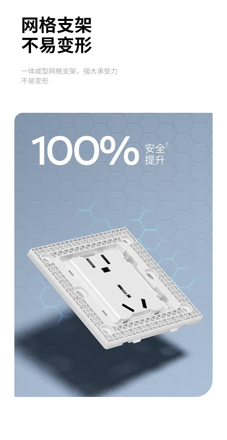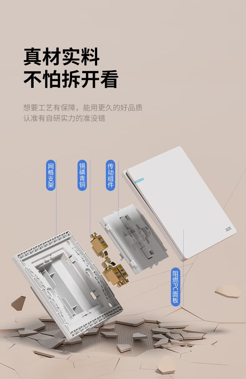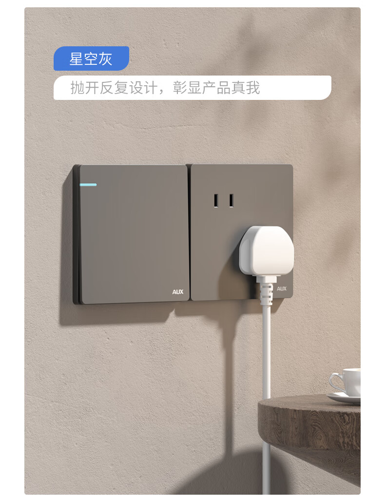 奥克斯 开关插座面板86型无边框美学大板白色墙壁开关二三插电源插座 电视电脑(6类)
