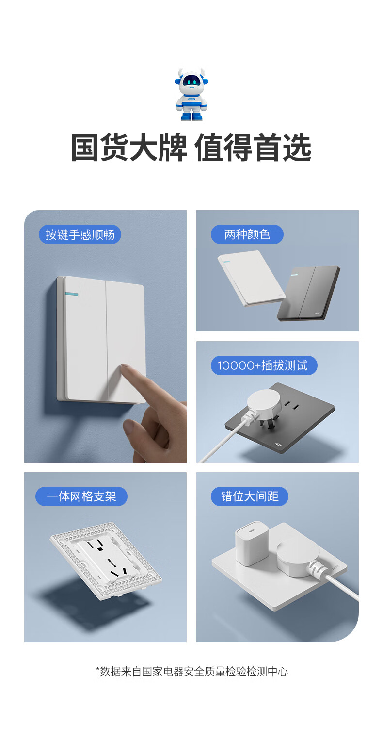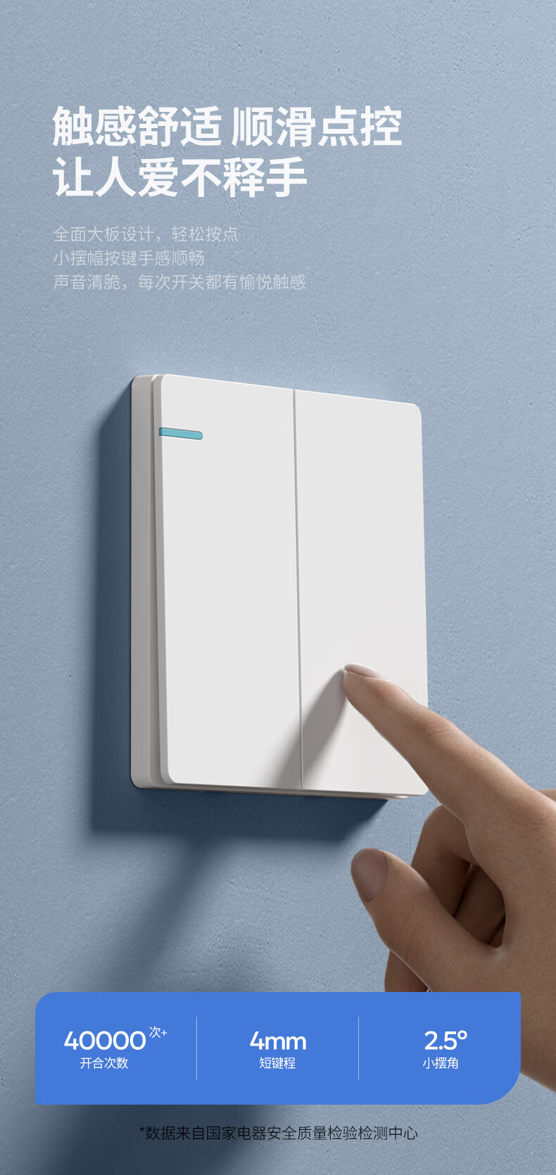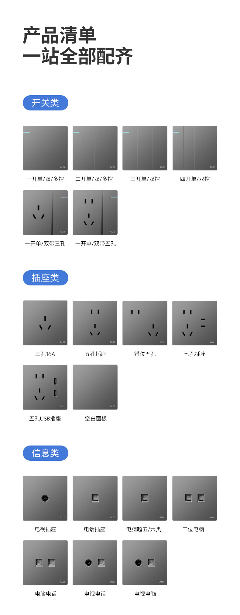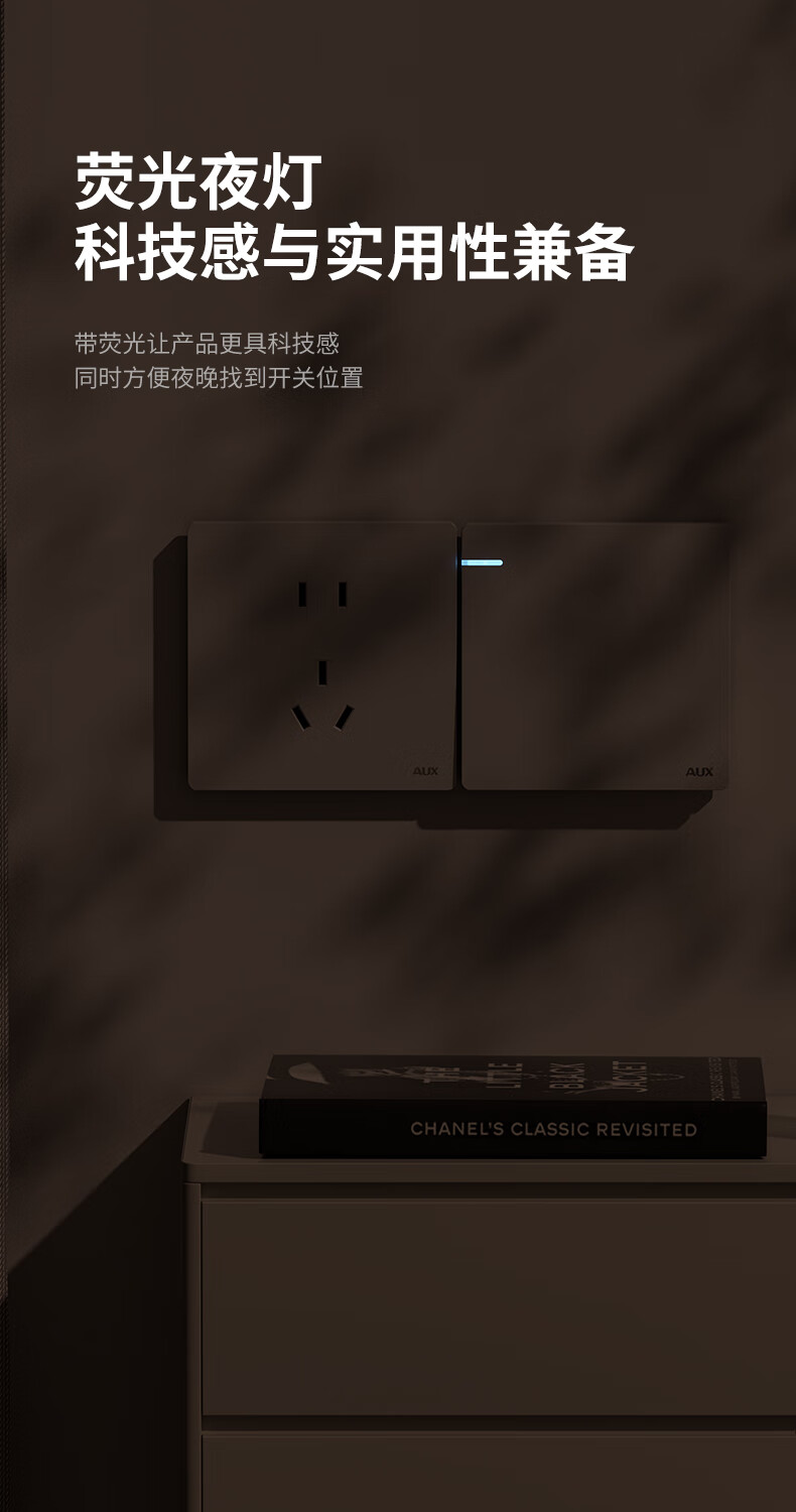 奥克斯 开关插座面板86型无边框美学大板白色墙壁开关二三插电源插座 电视电脑(6类)