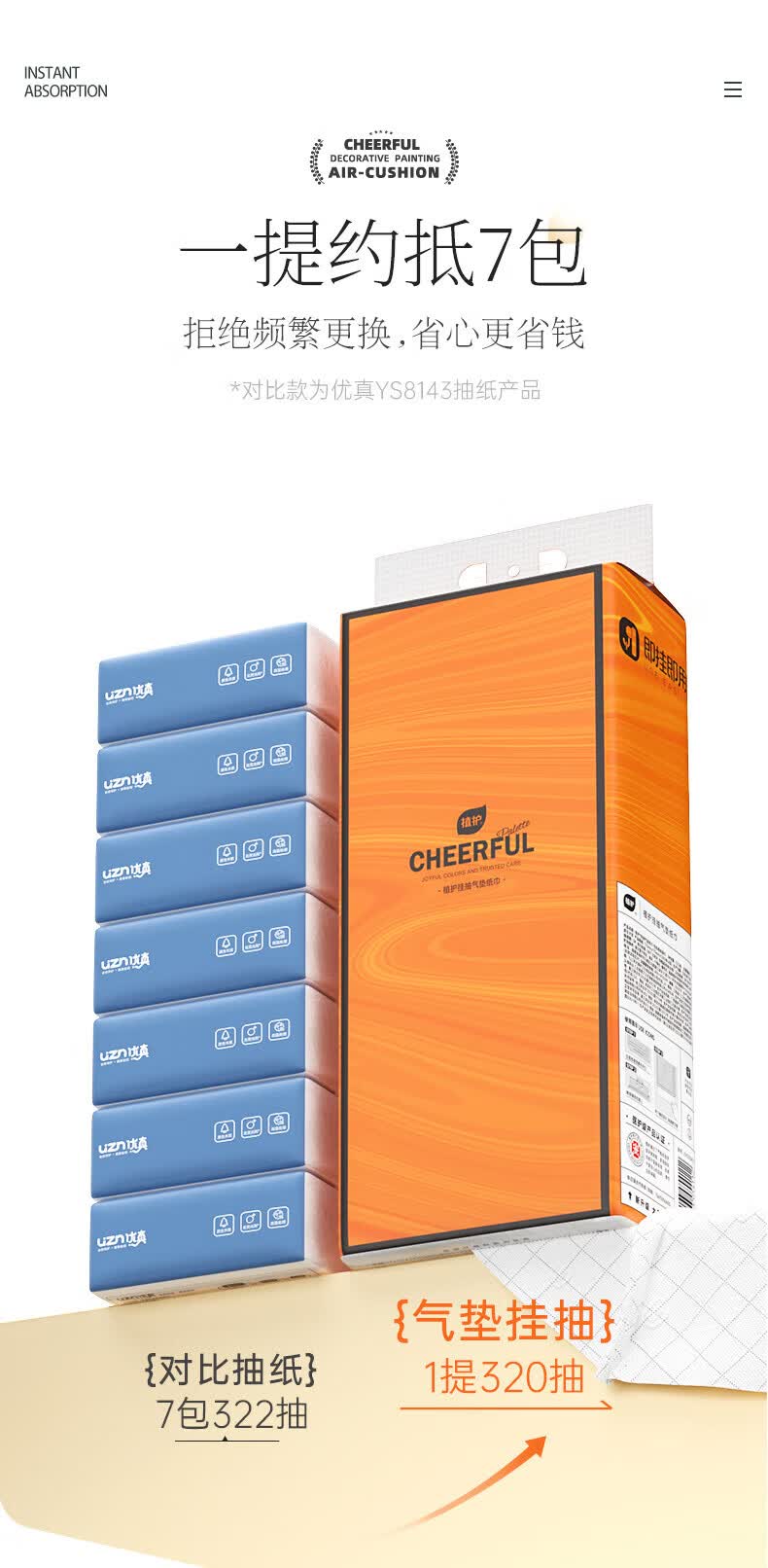 植护悦色橙面巾纸悬挂式4层320抽餐巾纸厕纸擦手大尺寸整箱卫生纸 悦色挂抽4层320抽*8提