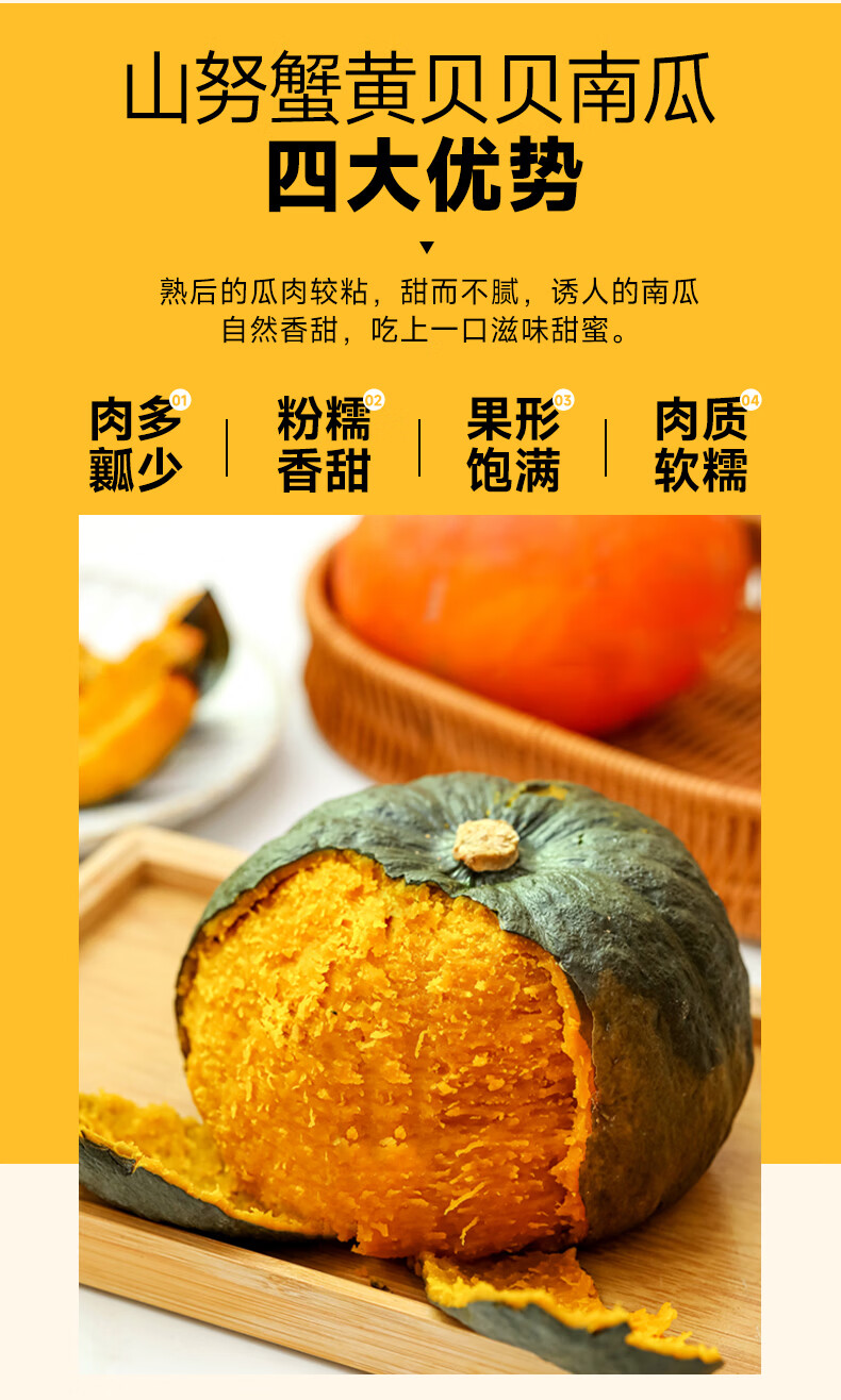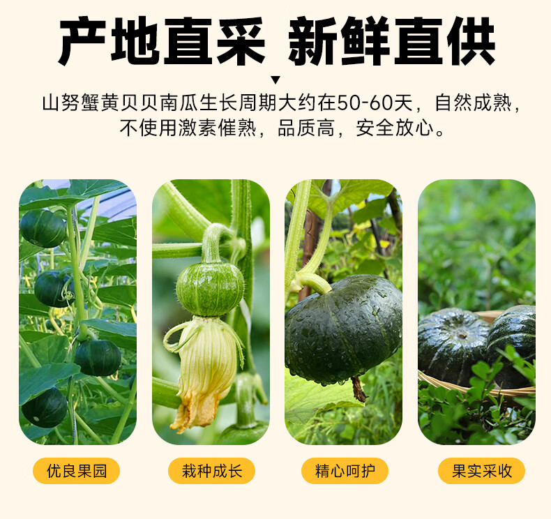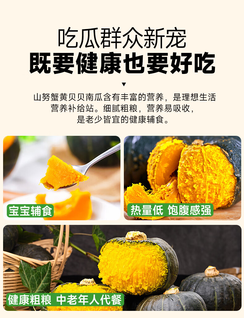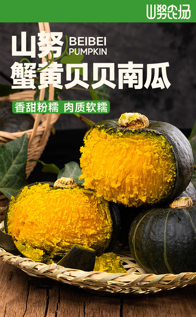 山努农场蟹黄贝贝南瓜粗粮辅食已糖化粉面香甜板栗味轻食代餐贝贝南瓜 精品装(定制彩箱+顺丰快递)(约4-8颗) 4.5斤