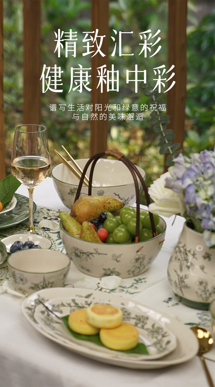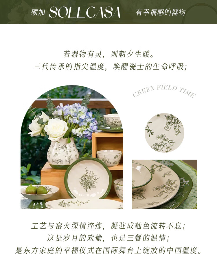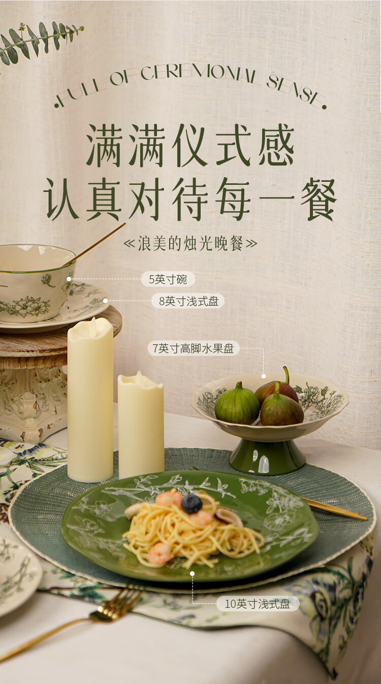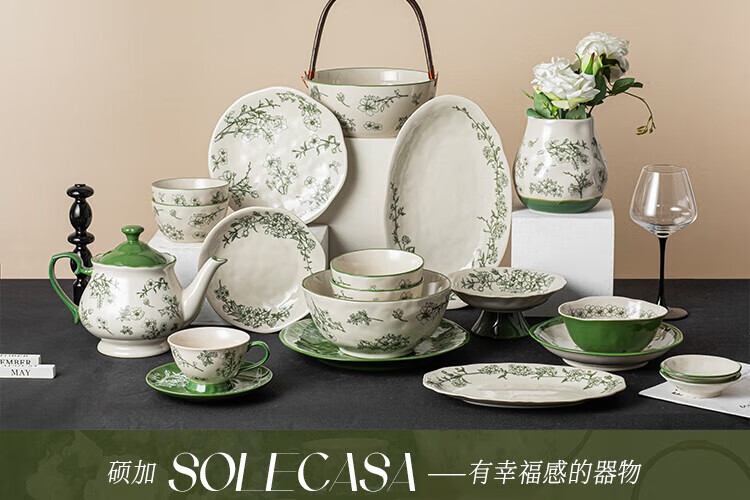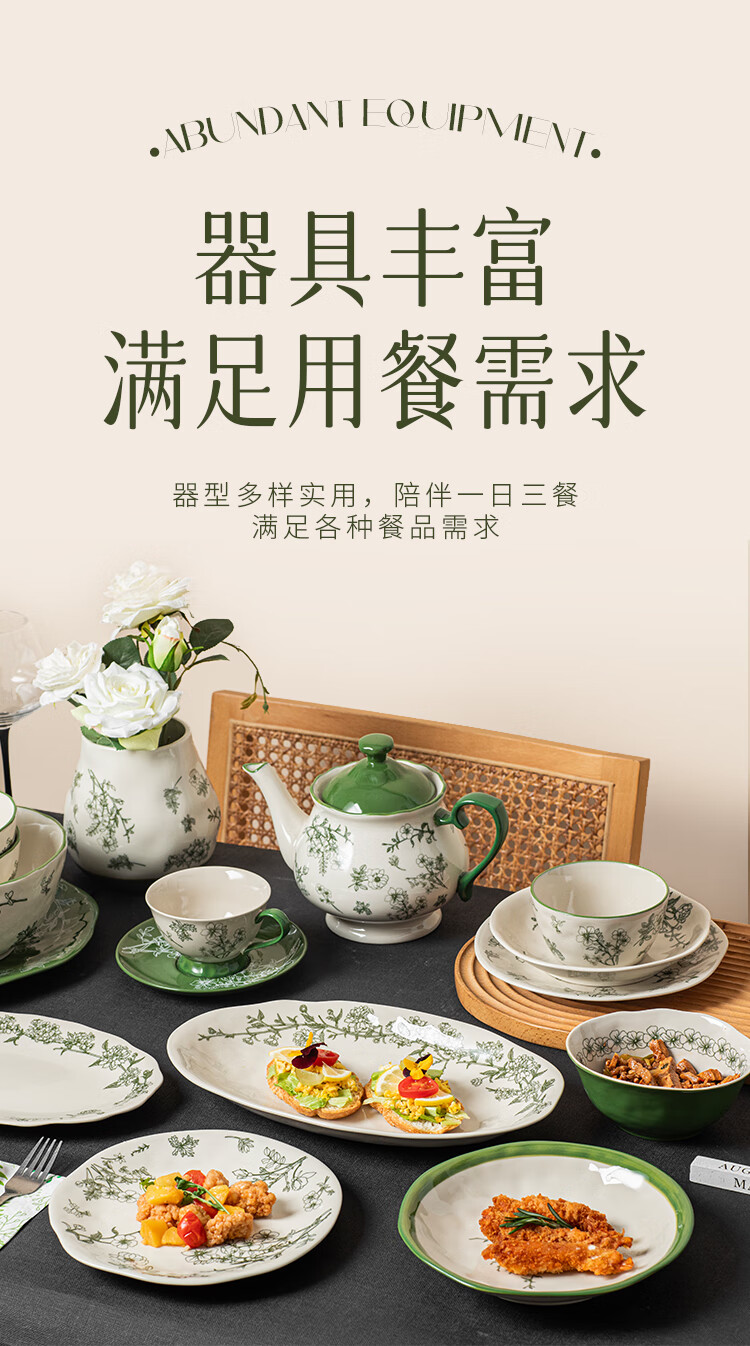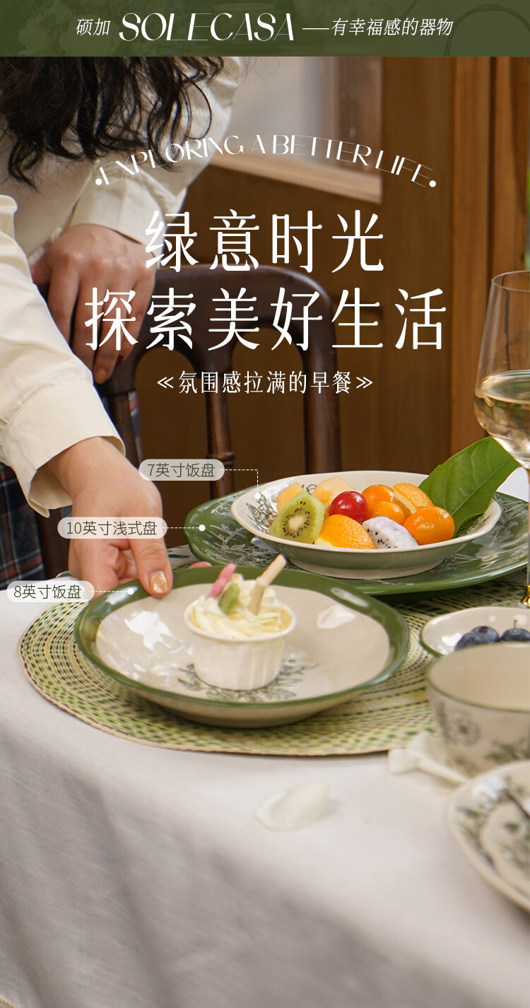 硕加绿意时光下午茶餐具饭碗汤盘勺组合陶瓷高级感碟子套装微波炉适用 绿意时光-下午茶礼盒5件套
