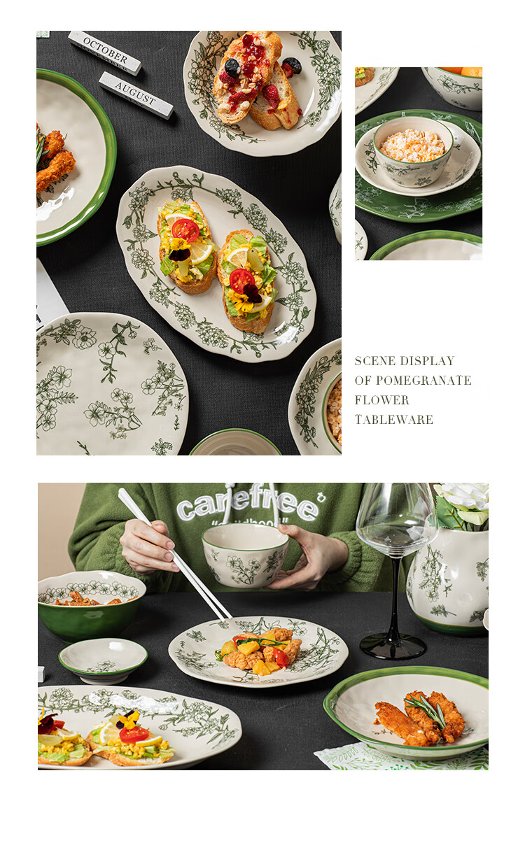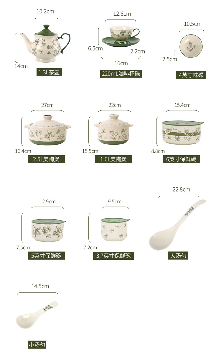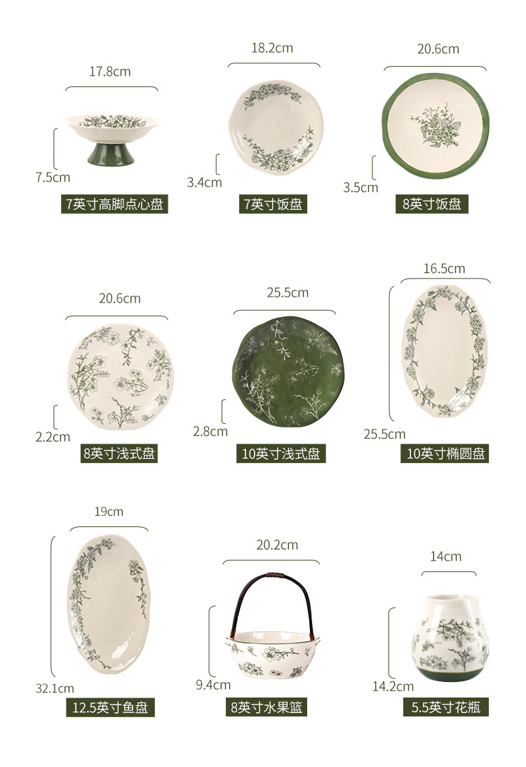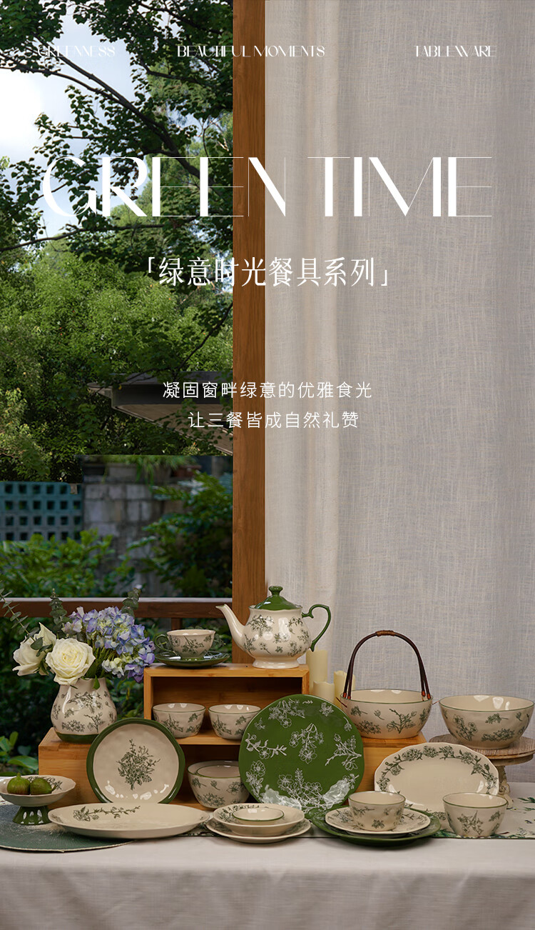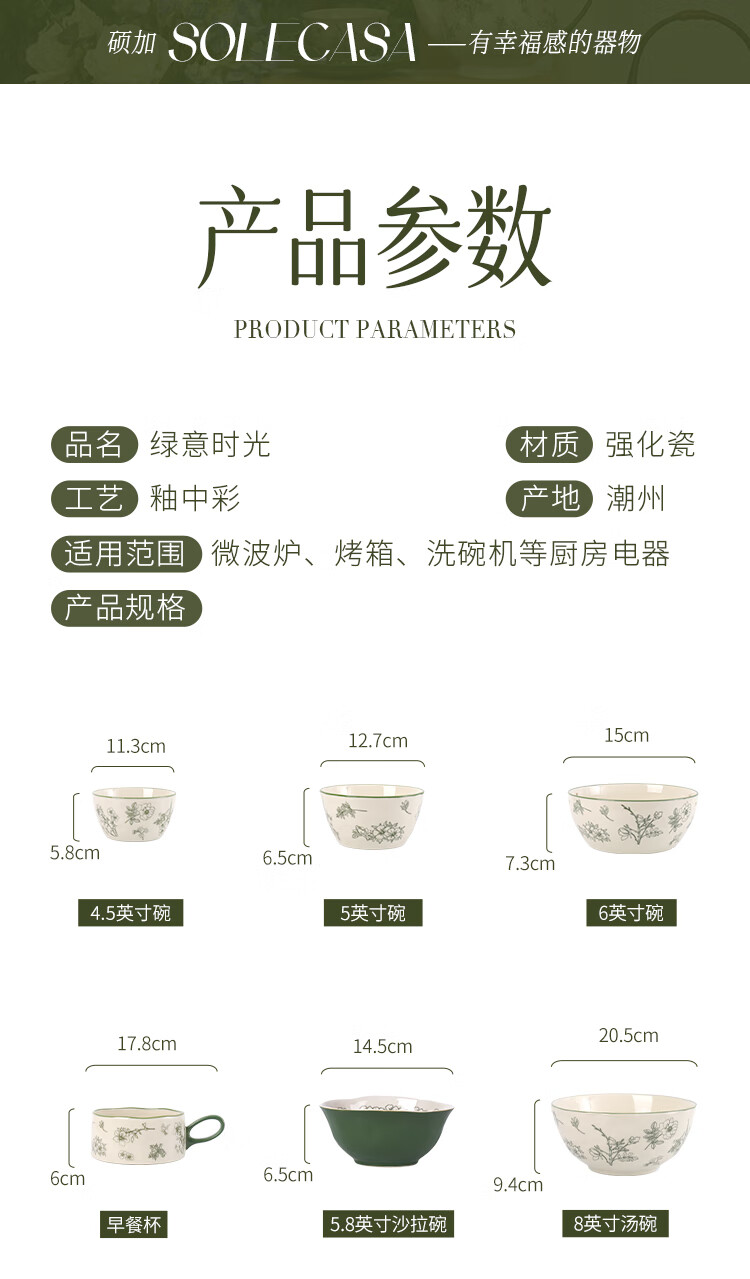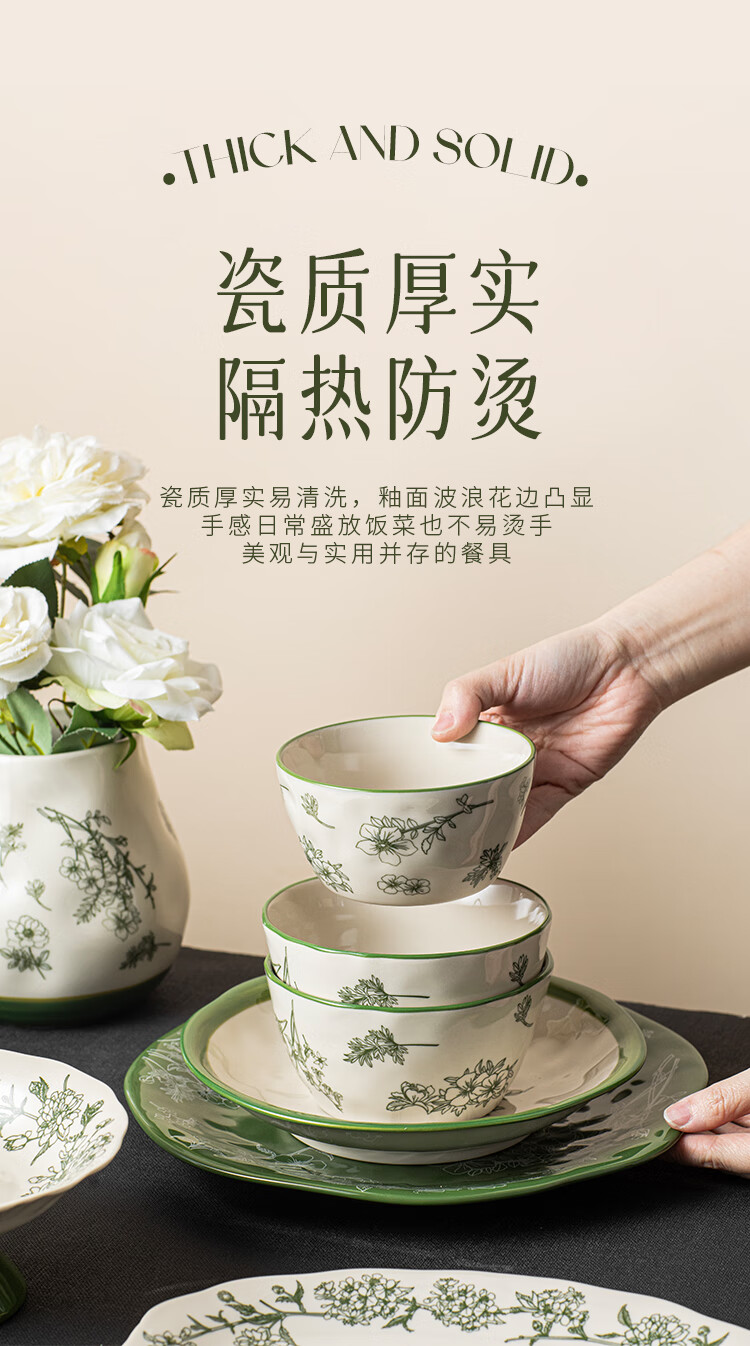 硕加绿意时光下午茶餐具饭碗汤盘勺组合陶瓷高级感碟子套装微波炉适用 绿意时光-下午茶礼盒5件套