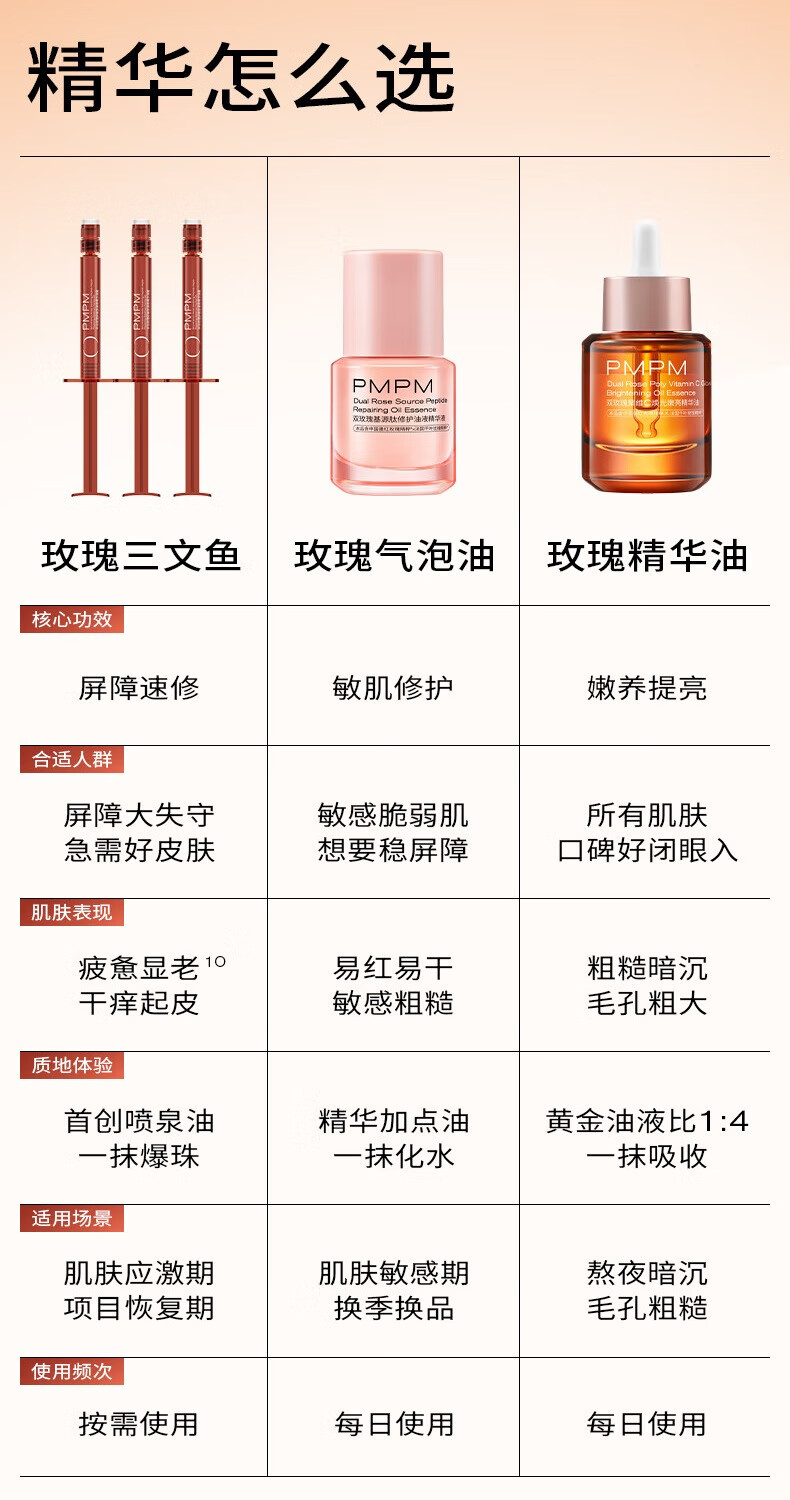 PMPM中法玫瑰舒敏肽速修精华油蜜紧致抗皱修复屏障褪红舒缓精华珠 【重磅新品】玫瑰三文鱼3mlx7