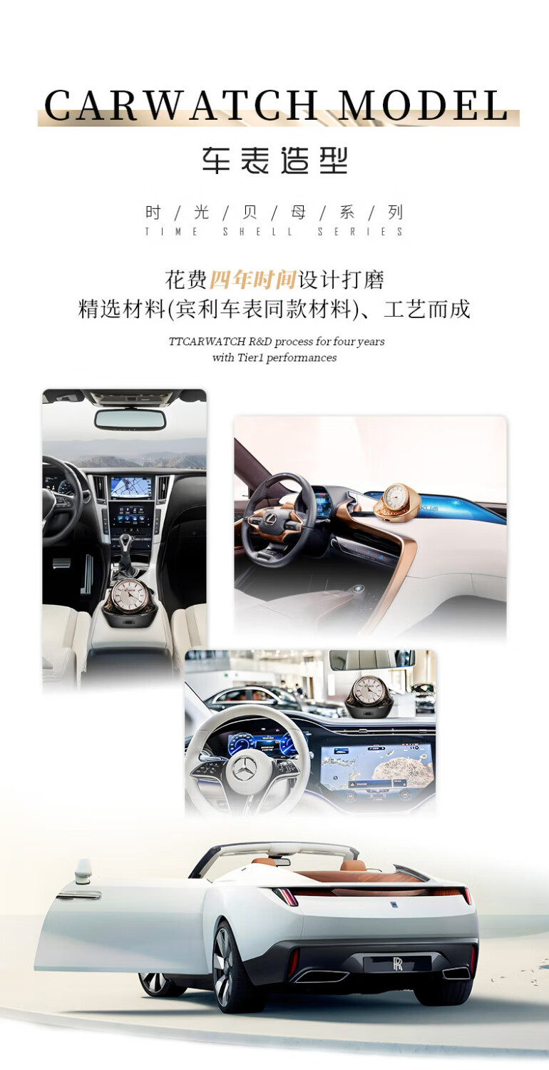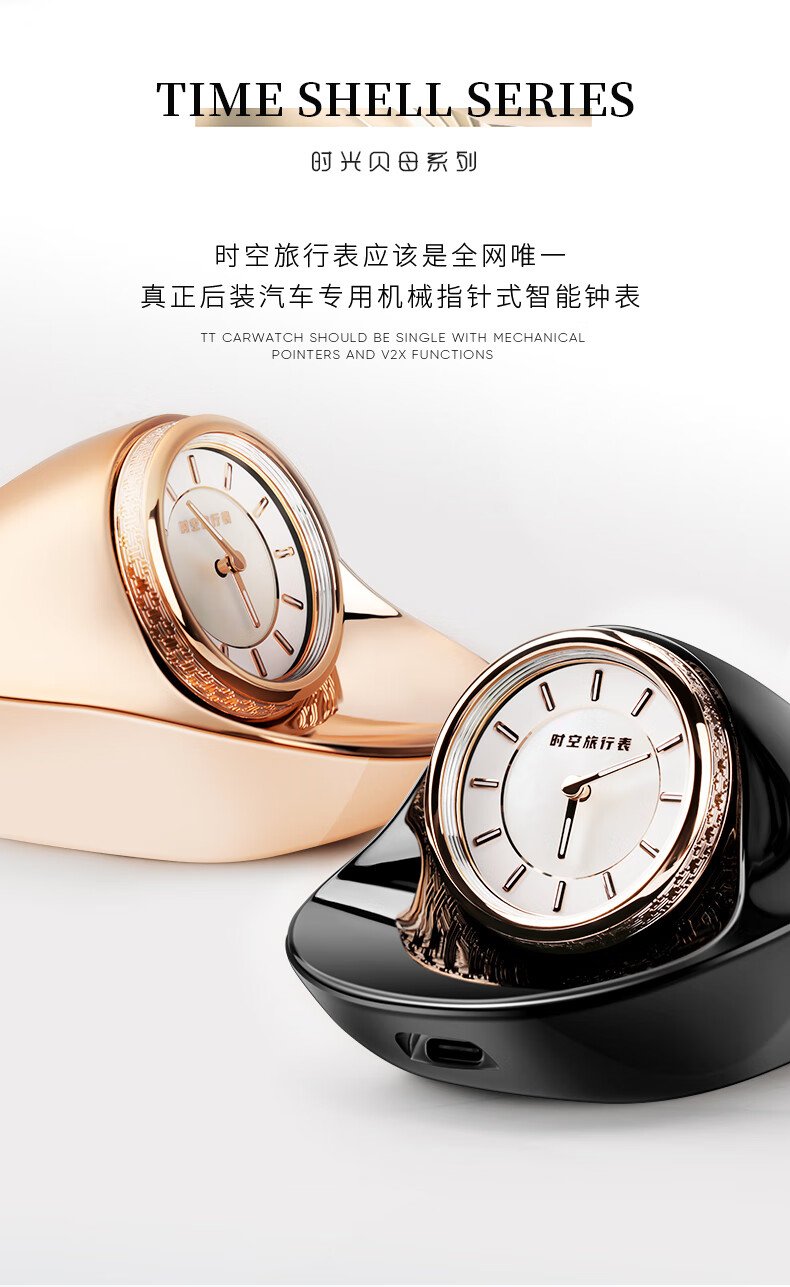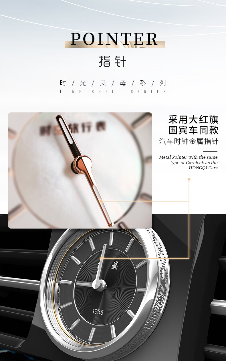 时空旅行表高级车载专用智能夜光A级贝壳精美表盘大红旗国宾车指针内饰钟表 玫瑰金-标准配置+赠送车联网功能
