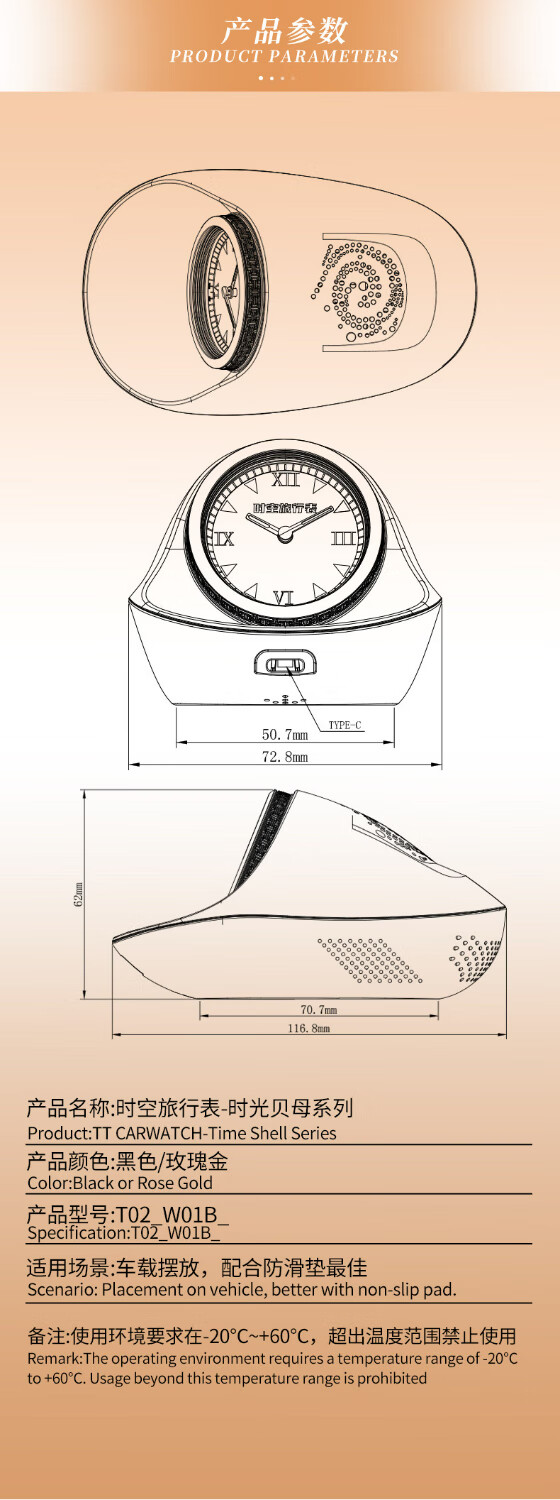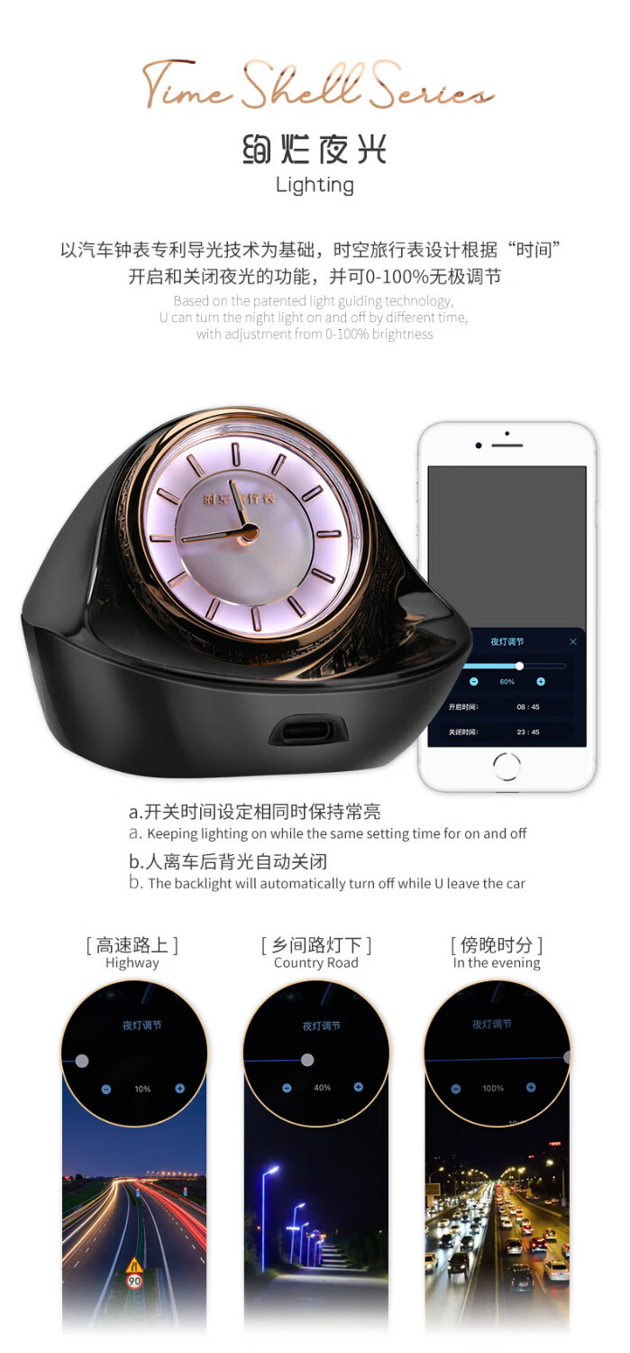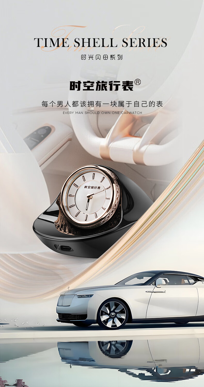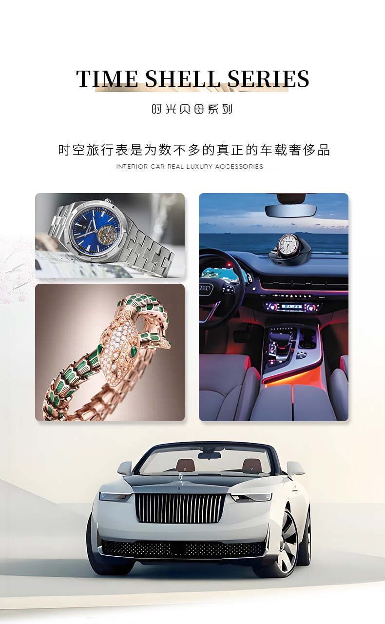 时空旅行表高级车载专用智能夜光A级贝壳精美表盘大红旗国宾车指针内饰钟表 玫瑰金-标准配置+赠送车联网功能