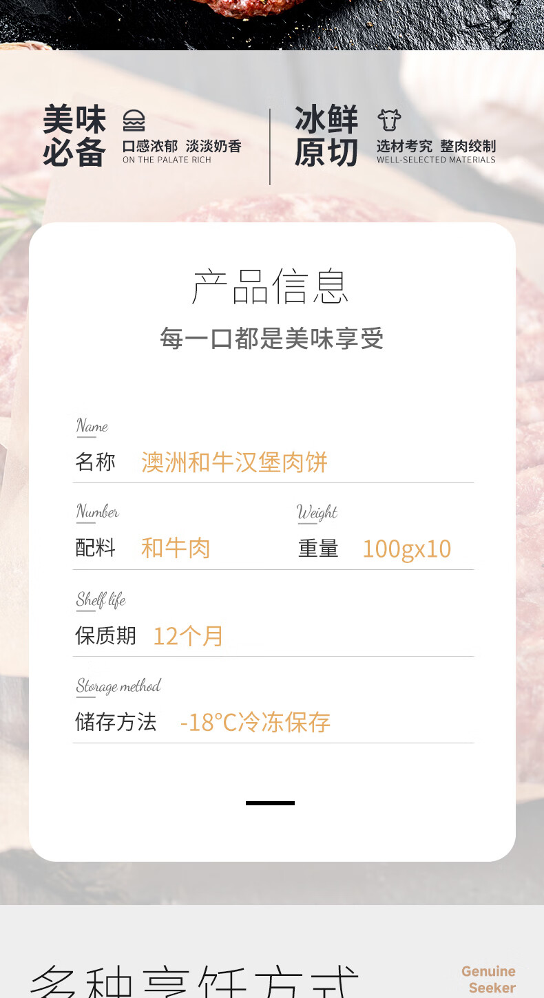 臻选客(Zhenxuanke) 澳大利亚进口 和牛汉堡肉饼 牛肉生鲜 汉堡肉饼 10*100g