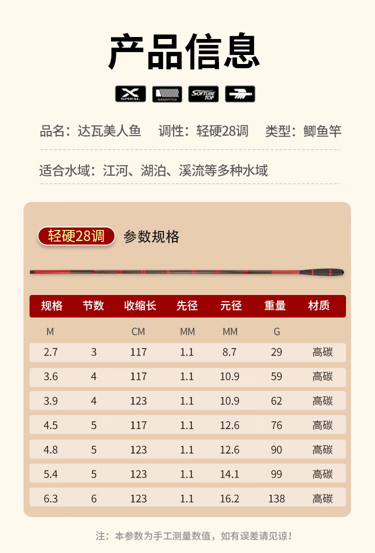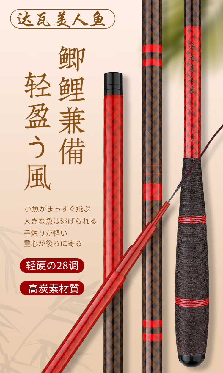 达瓦逐鹿达瓦美人鱼鱼竿鲫鱼竿28调鱼竿台钓竿鲤鱼竿超轻碳素野钓渔具手竿 6.3m +竿稍+礼包