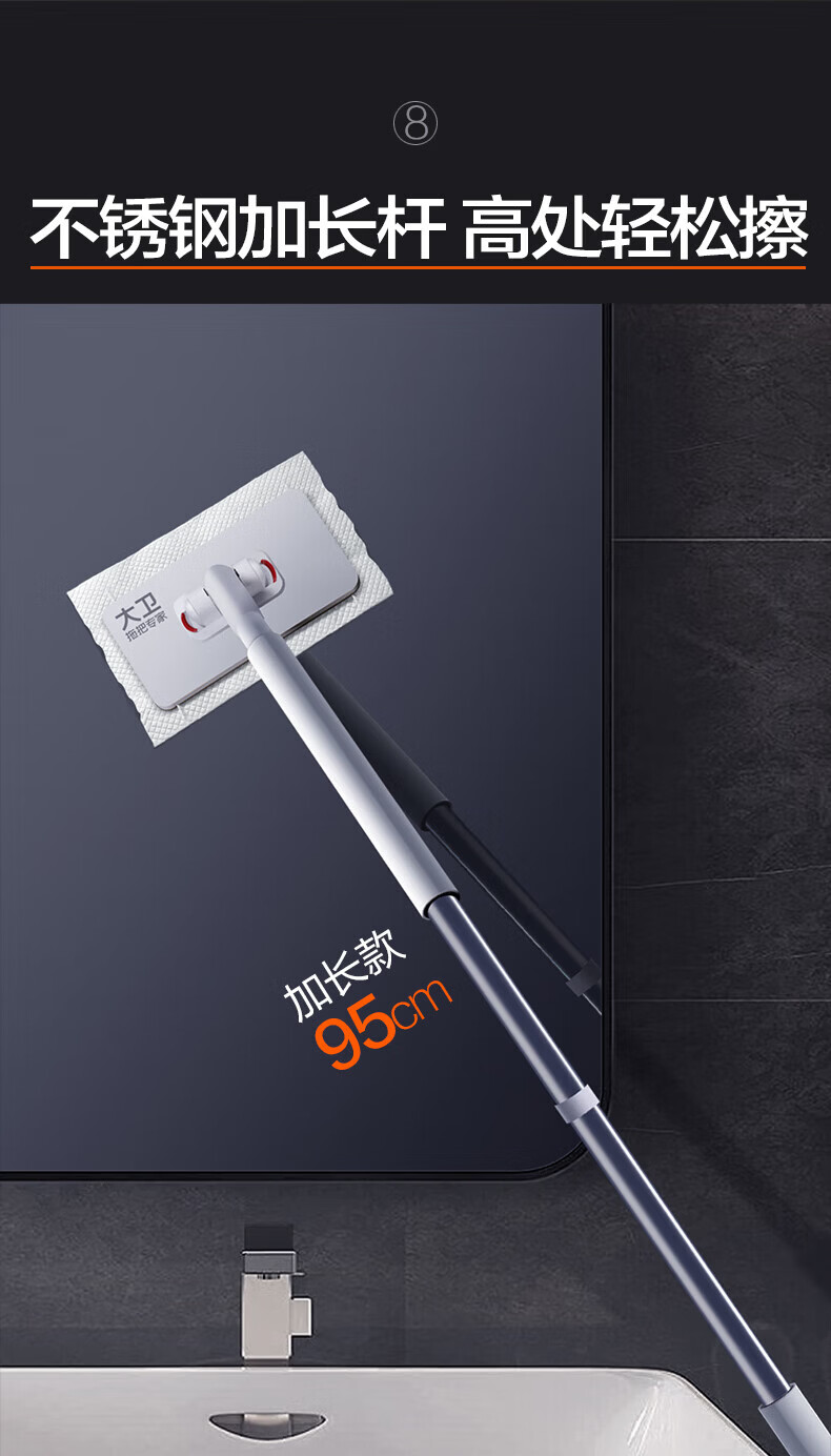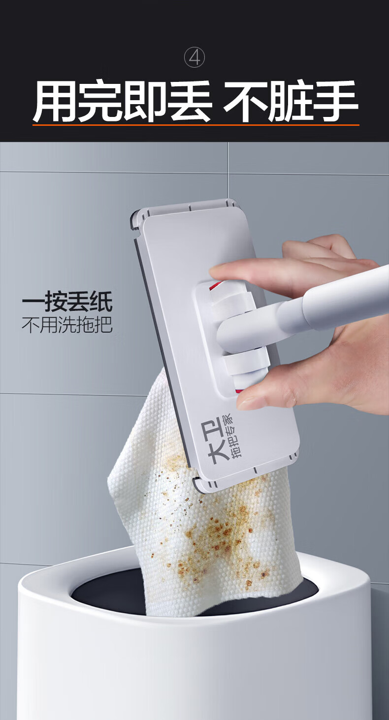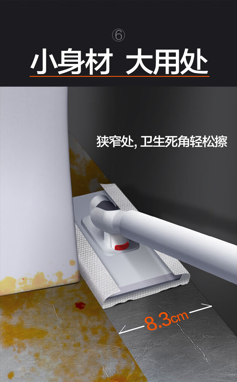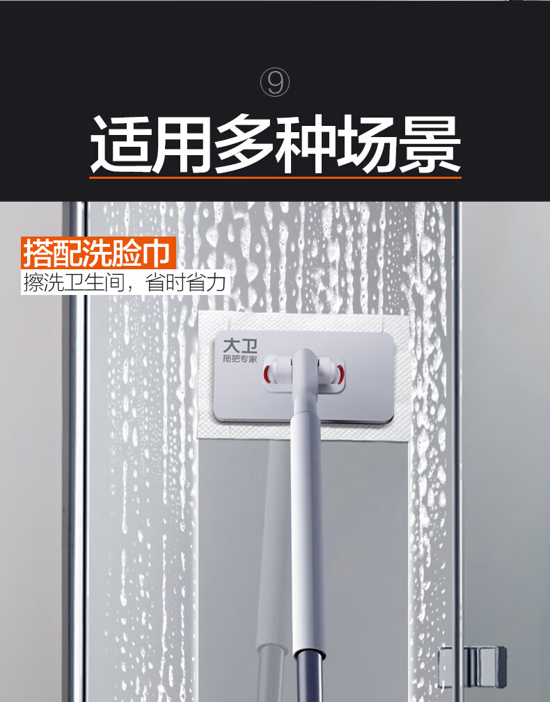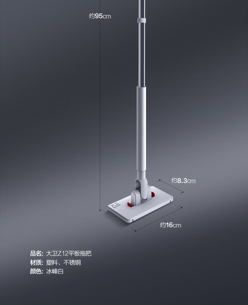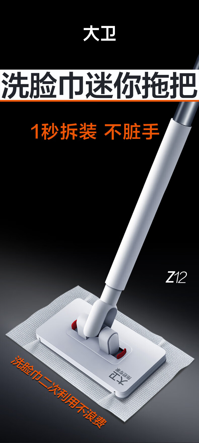 大卫洗脸巾平板拖把16cm杆长95cm5布Z12迷你拖把1秒拆卸不脏手