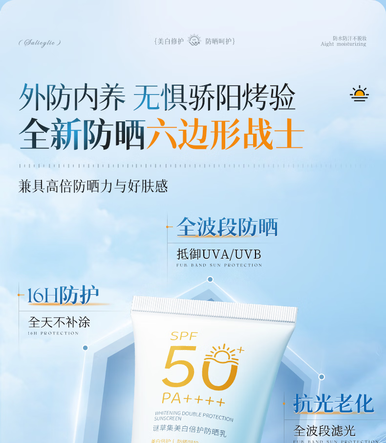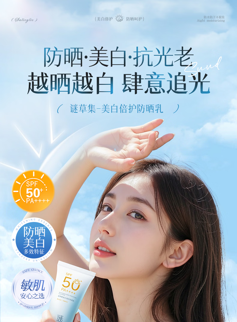 谜草集防晒霜美白提亮三合一防水防汗防紫外线男女儿童户外军训防晒乳 防晒霜50g【美白+防晒】高倍耐晒