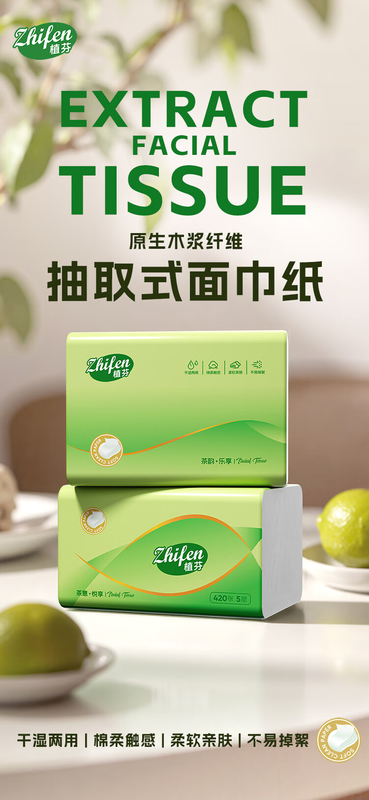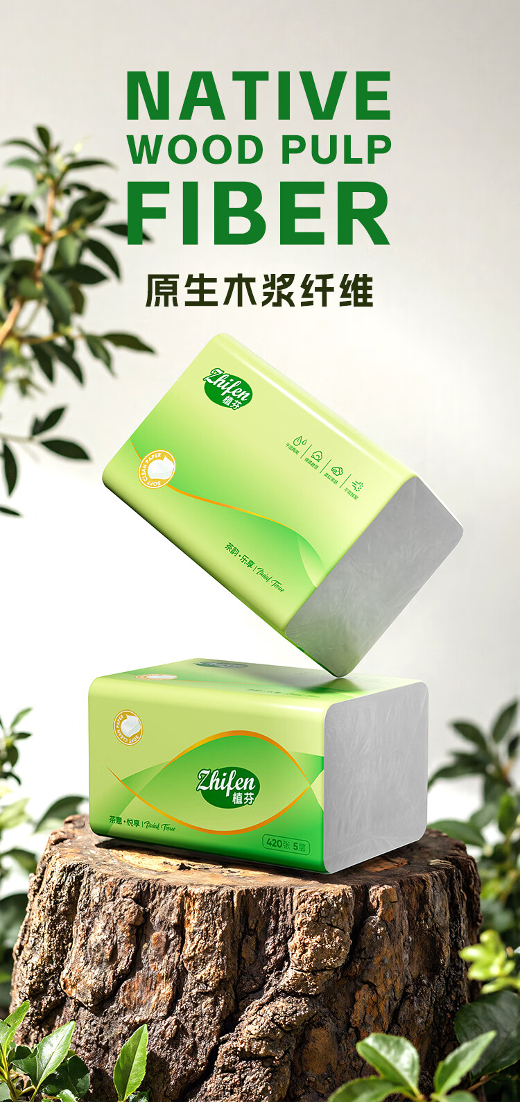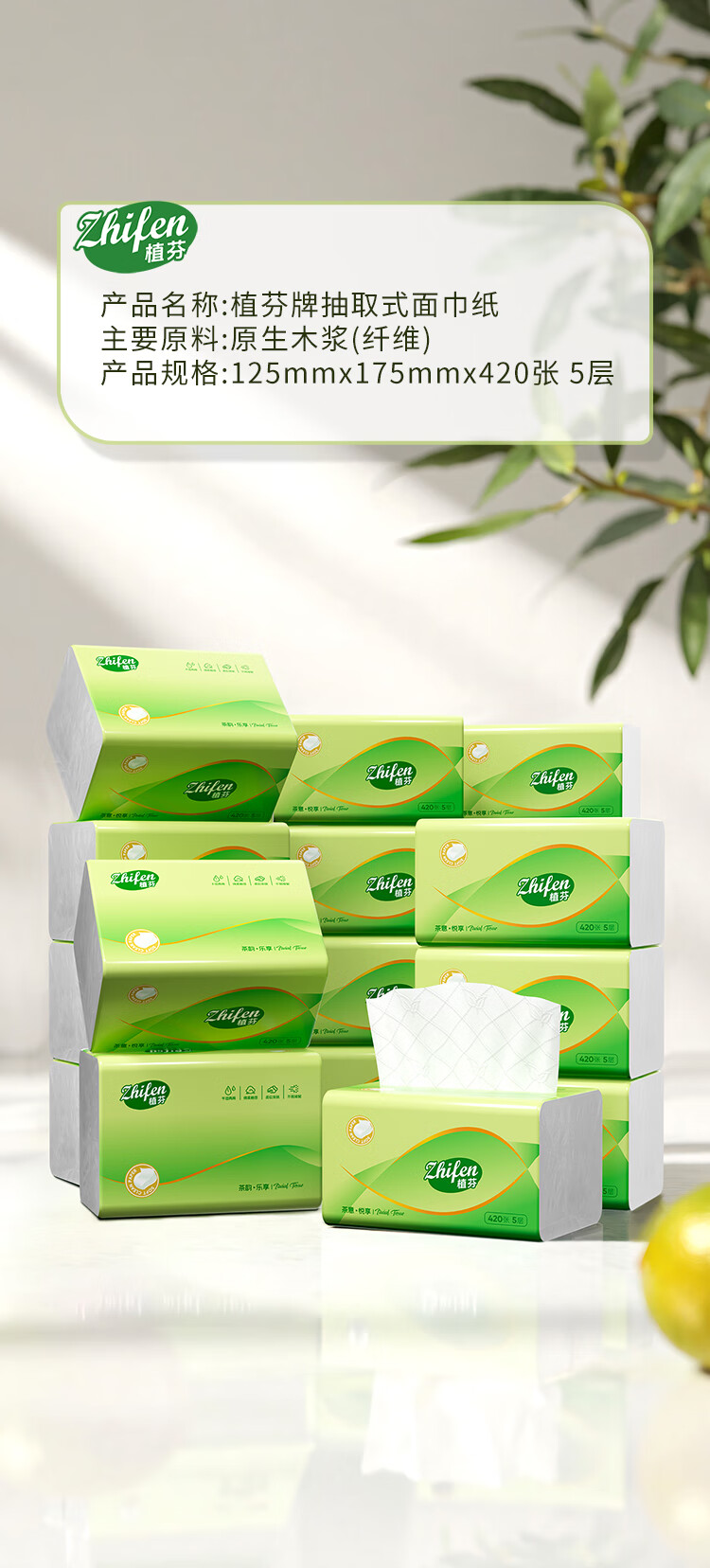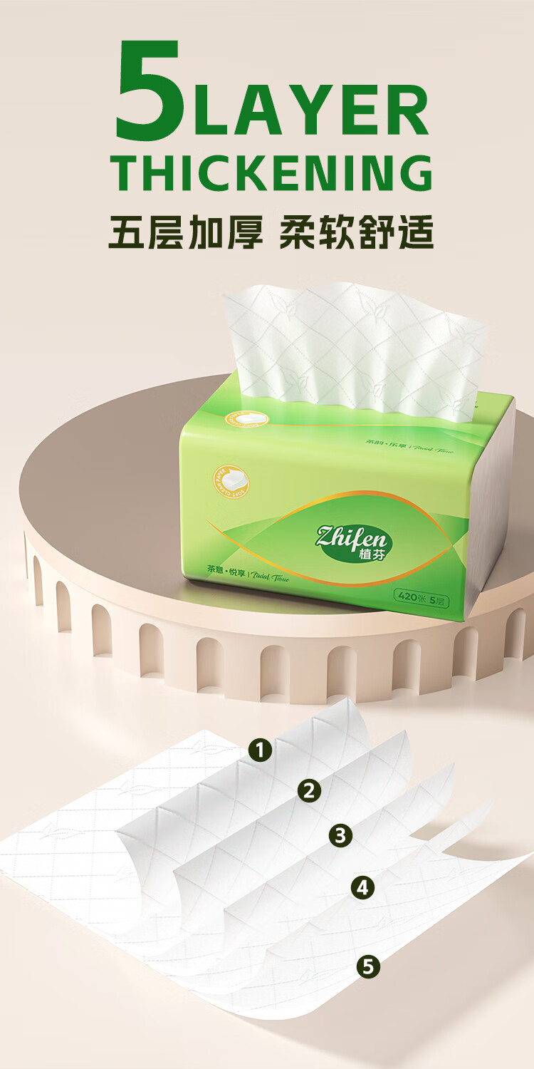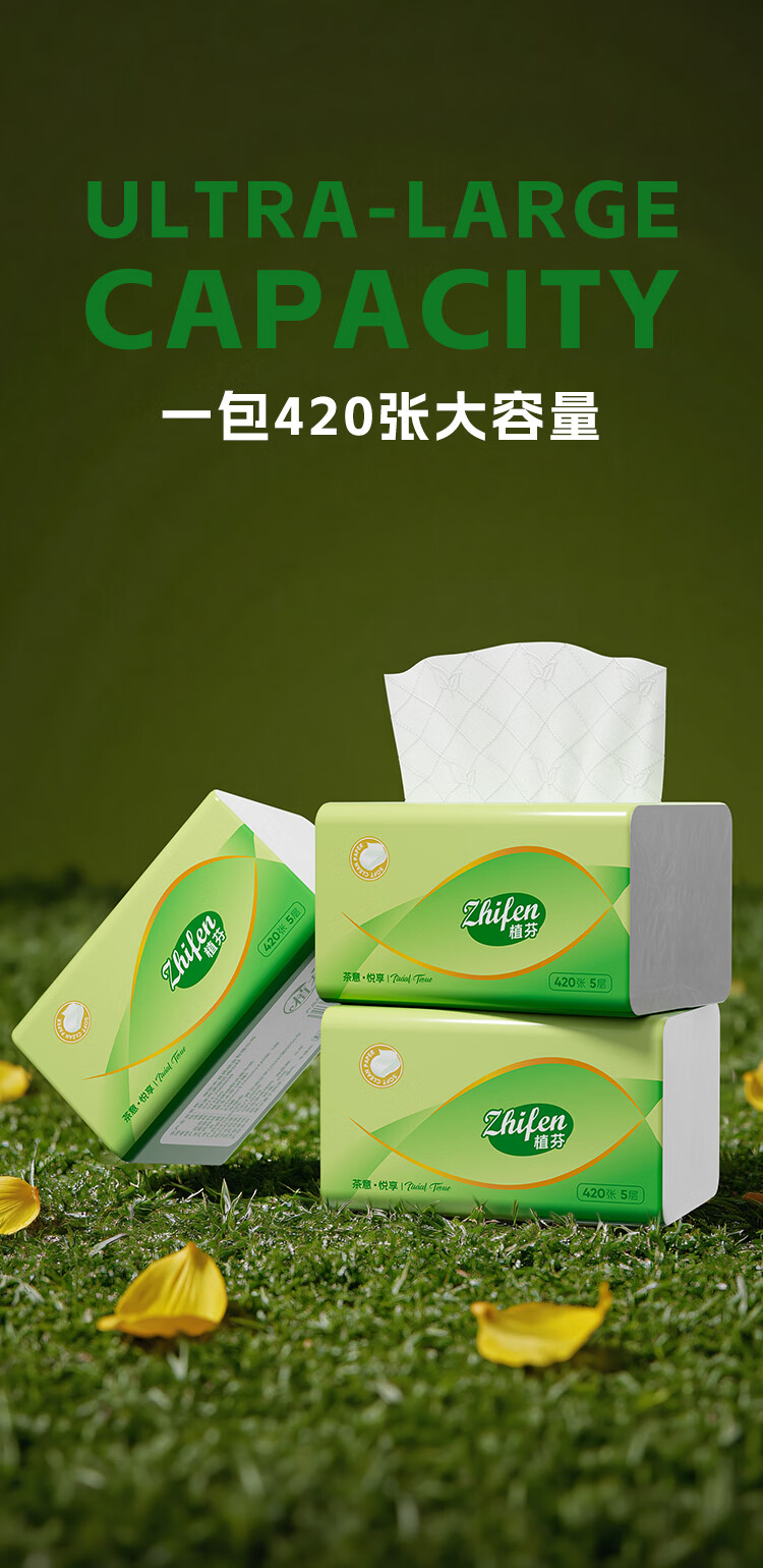 植芬420张加量装抽纸纸巾家用餐巾纸整箱囤货批发装擦手纸卫生纸抽 5层 420张*8包