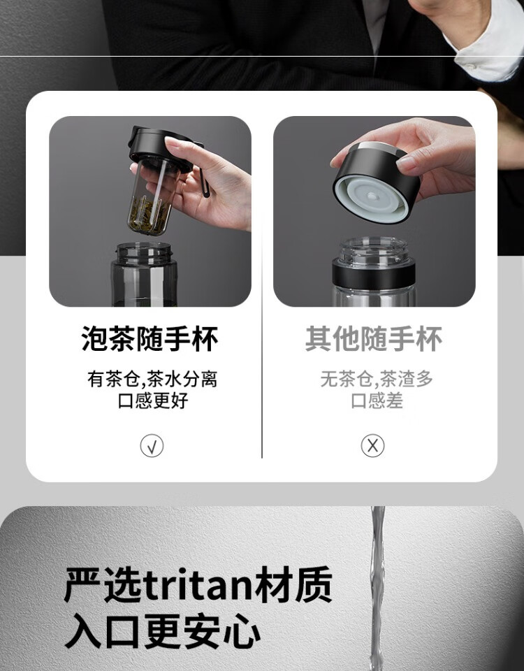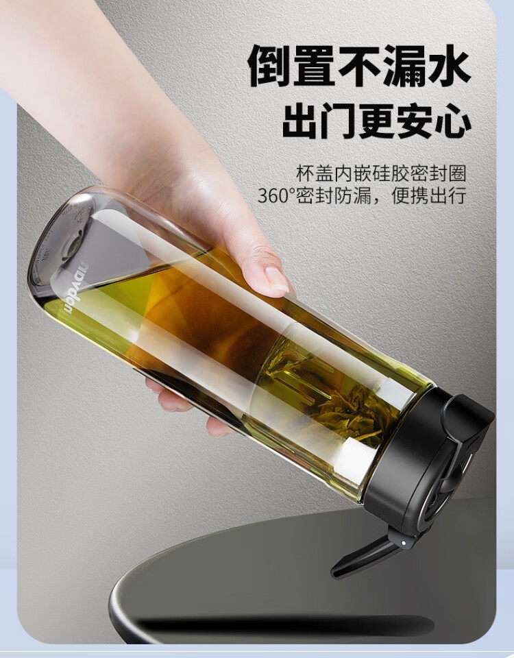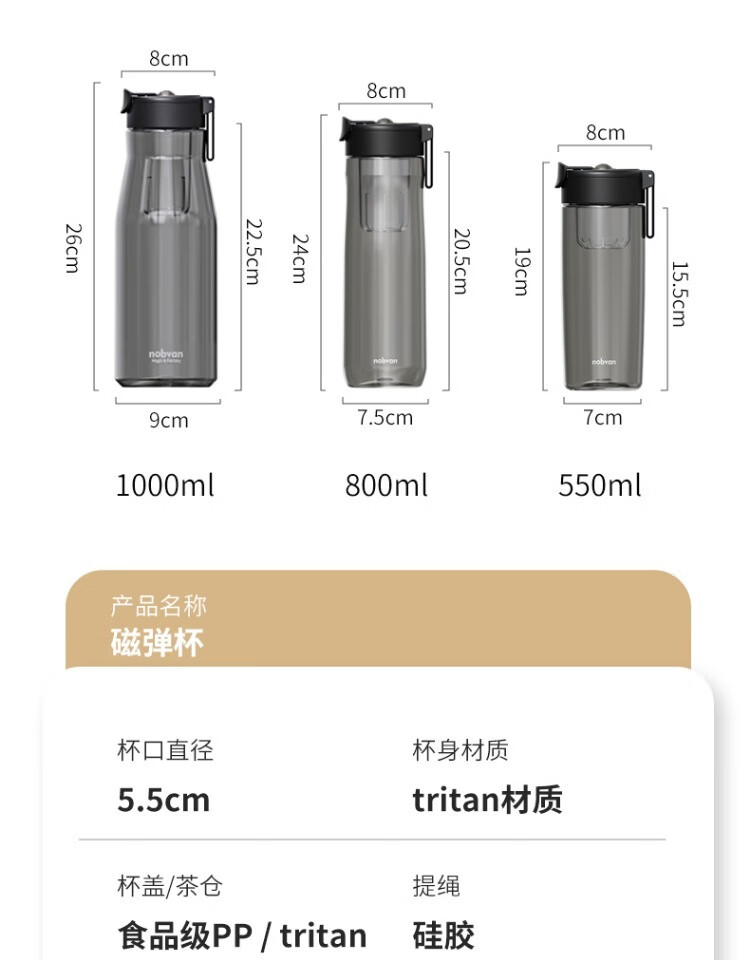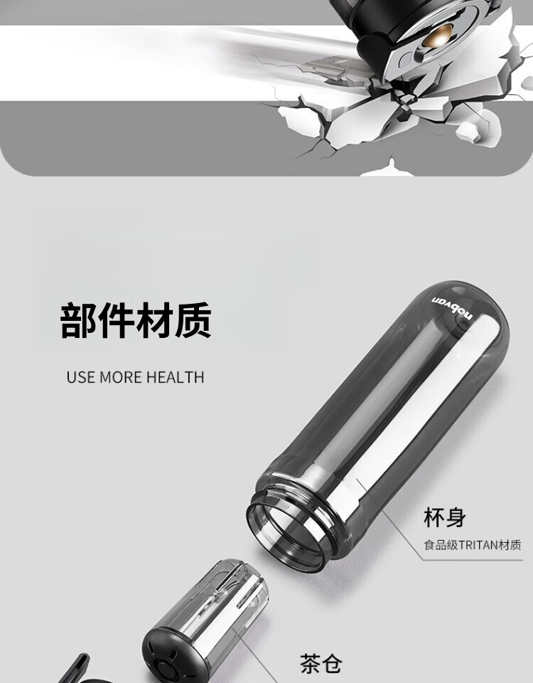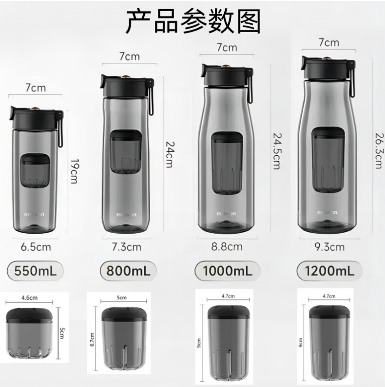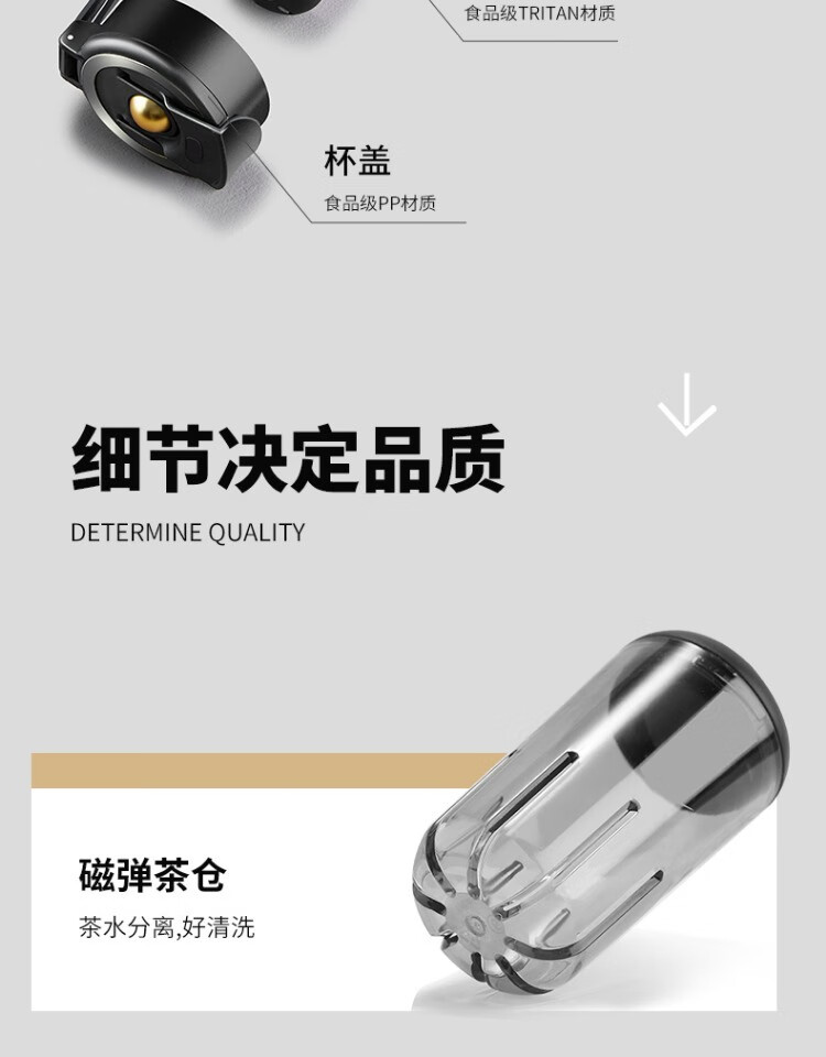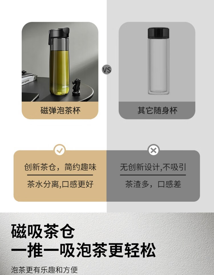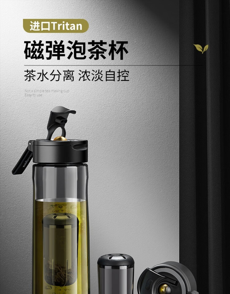 诺百纷第三代磁弹杯魔力球磁弹泡茶杯tritan塑料运动大容量茶水分离水杯 摩卡灰550ml 塑料磁弹泡茶杯