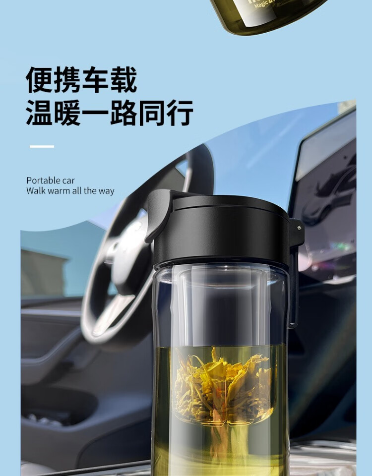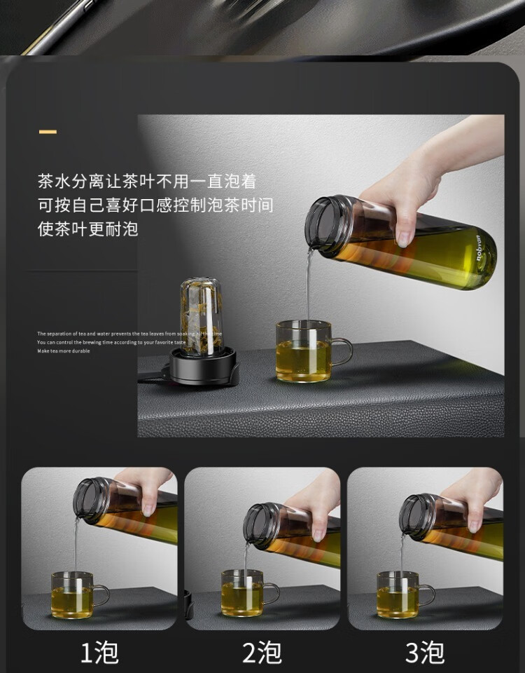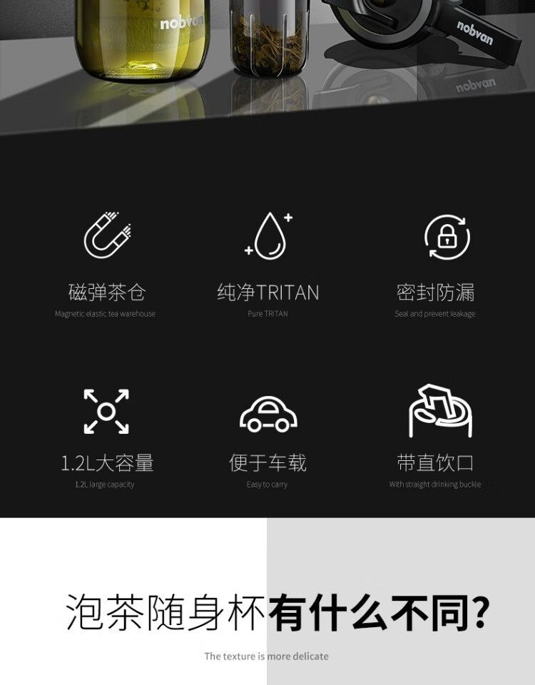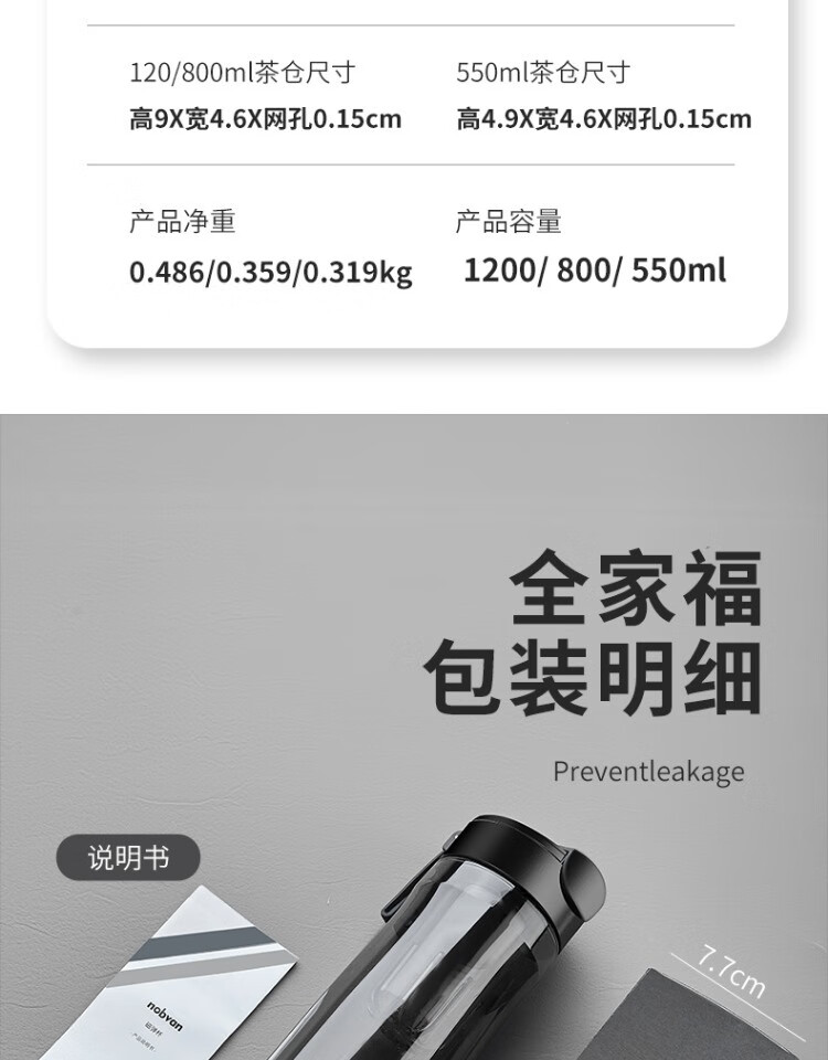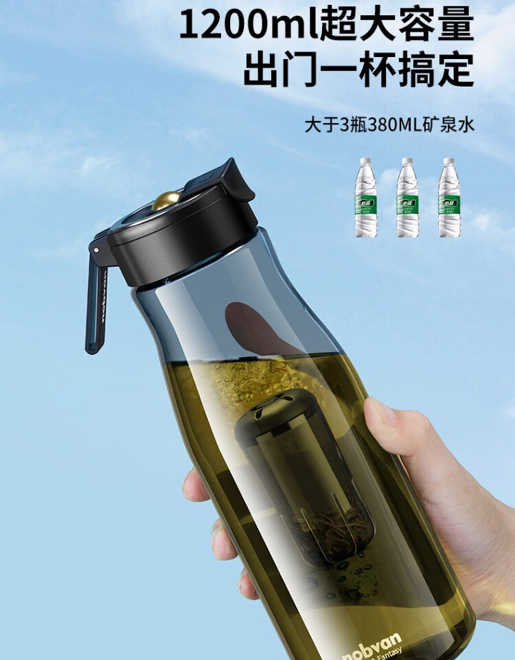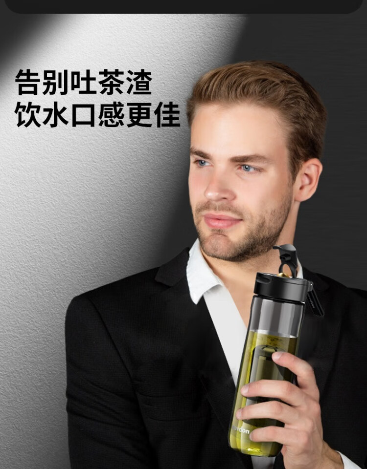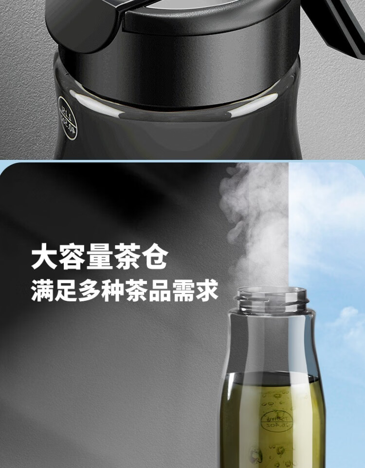 诺百纷第三代磁弹杯魔力球磁弹泡茶杯tritan塑料运动大容量茶水分离水杯 摩卡灰550ml 塑料磁弹泡茶杯