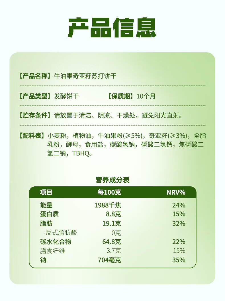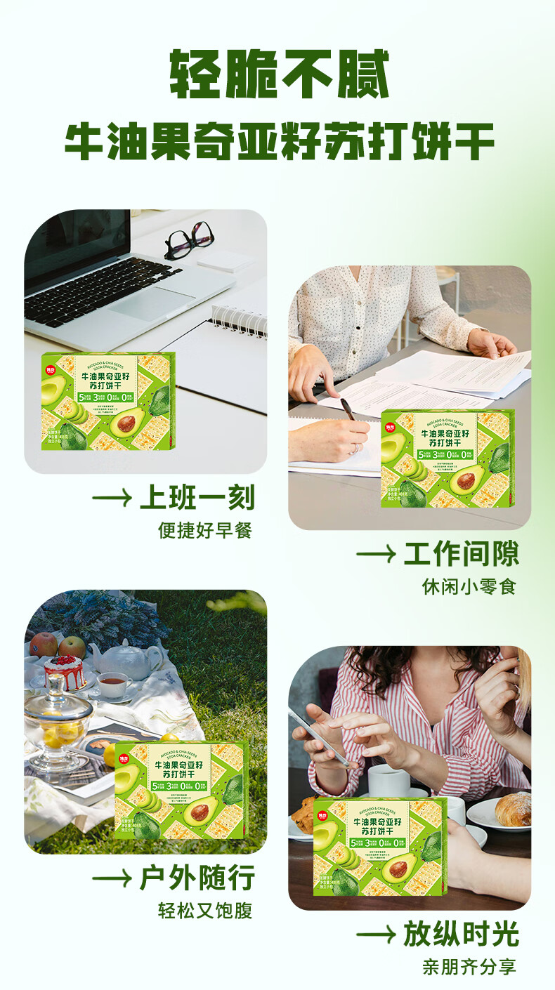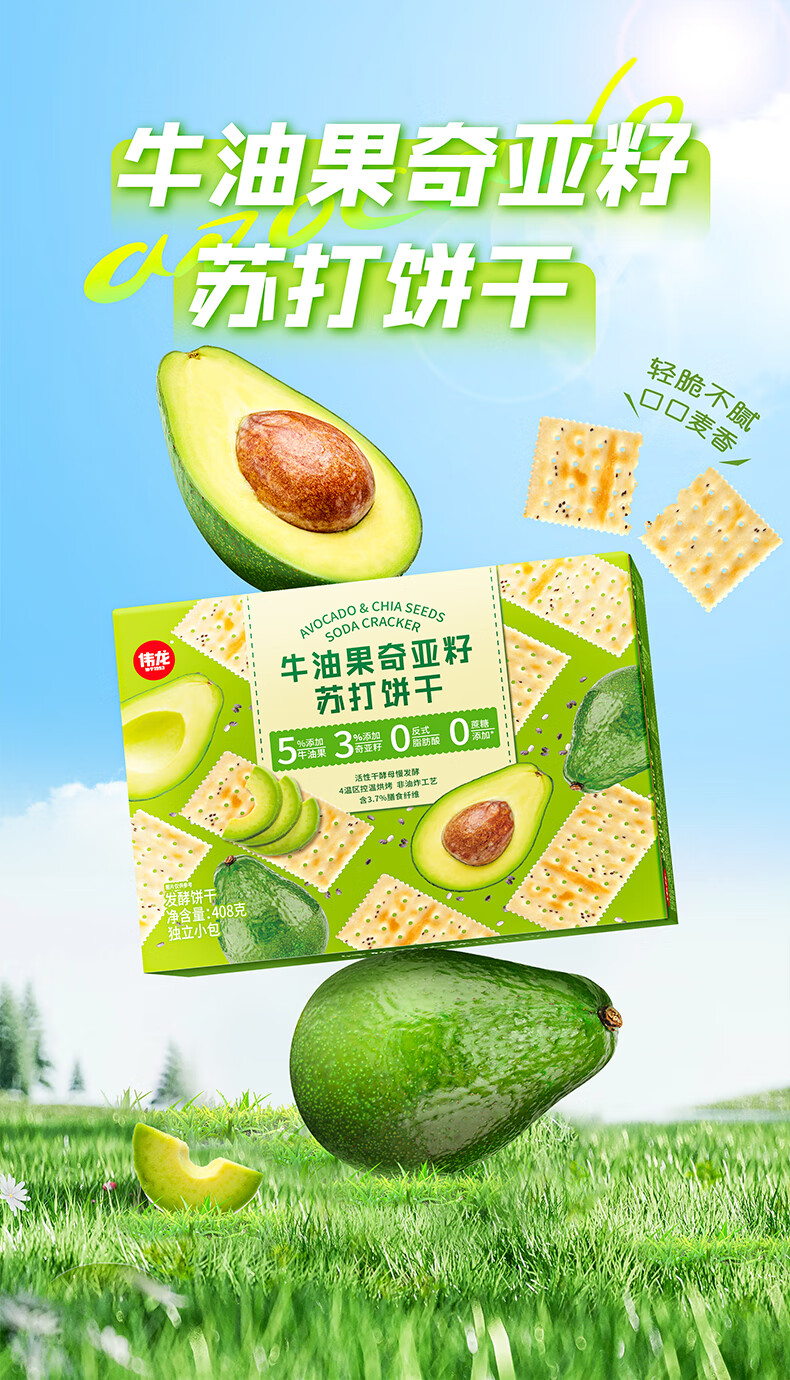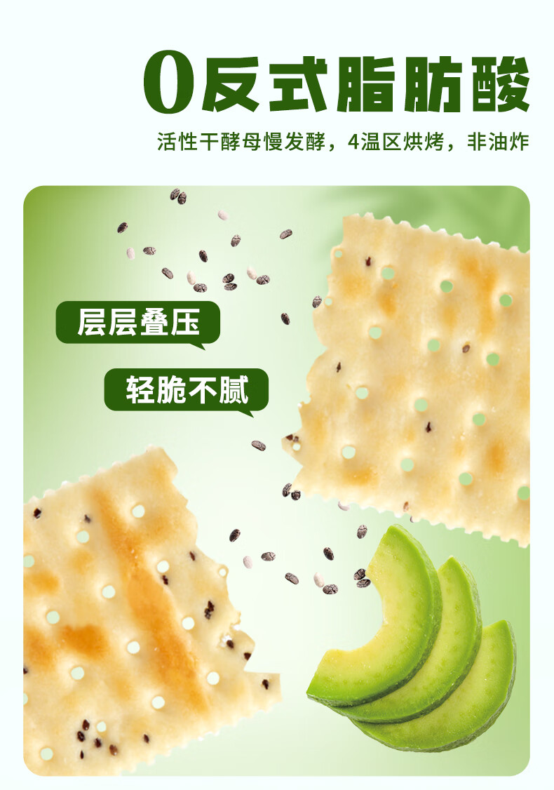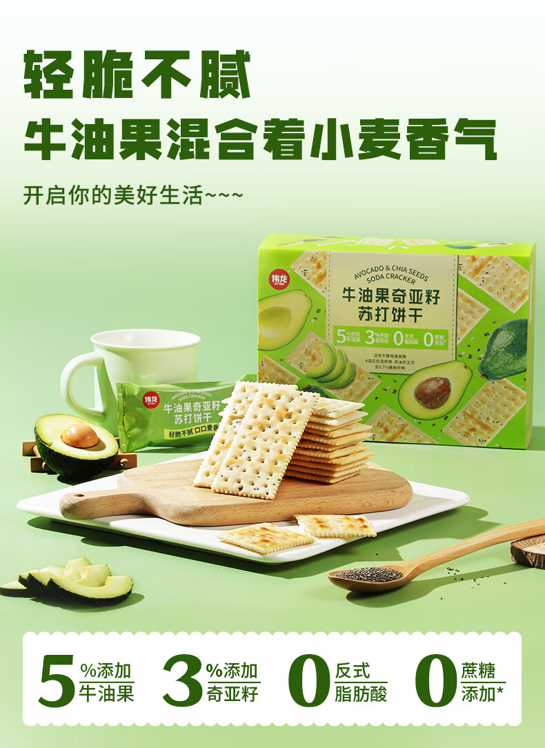 伟龙牛油果奇亚籽苏打饼干 酥脆可口0反式无添加蔗糖 健康代餐 【店长力荐】408g*2盒