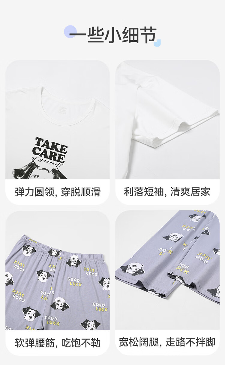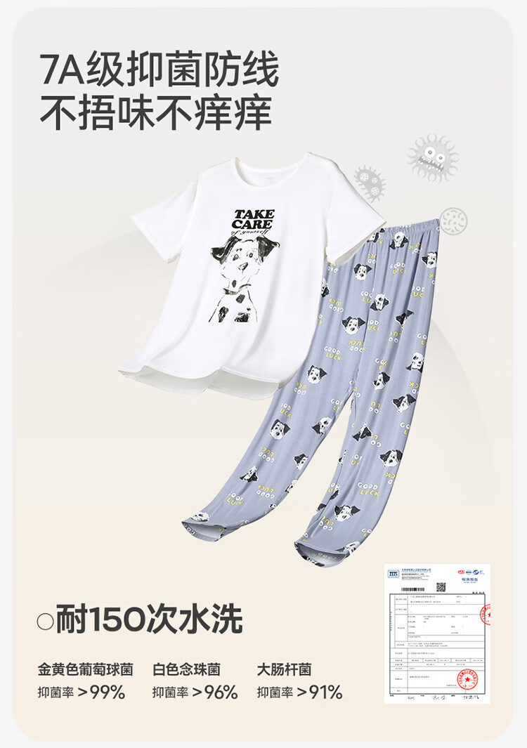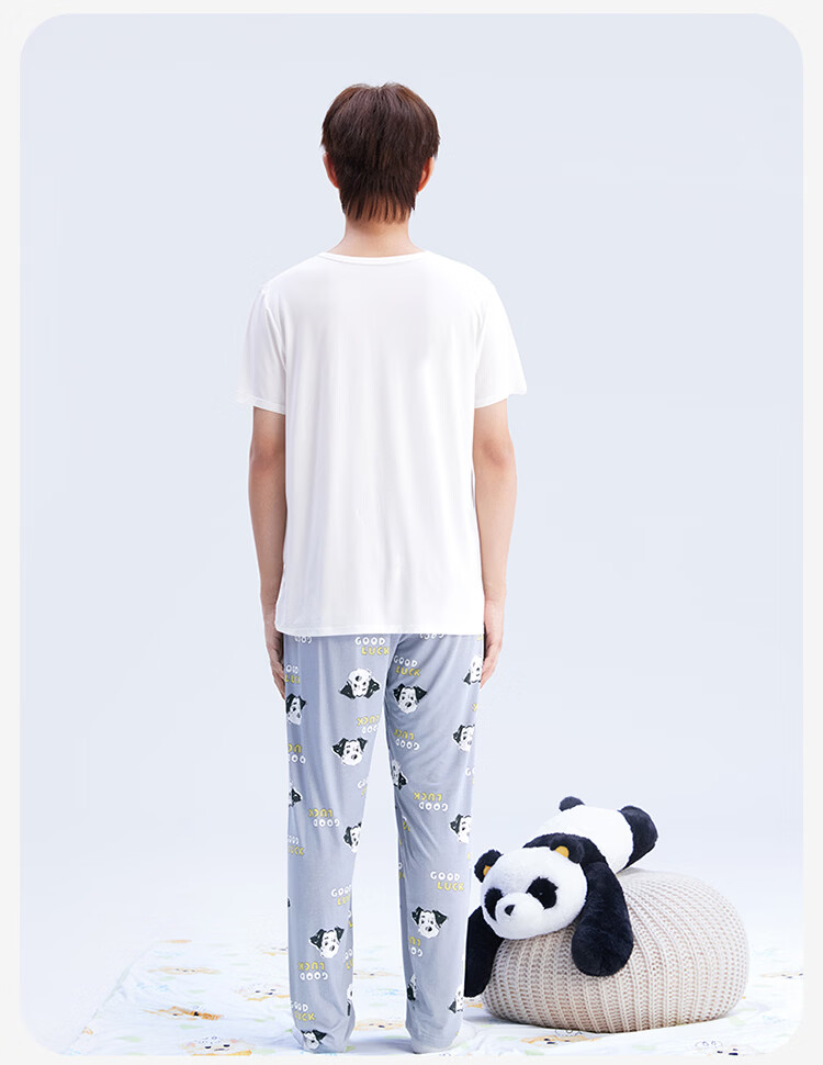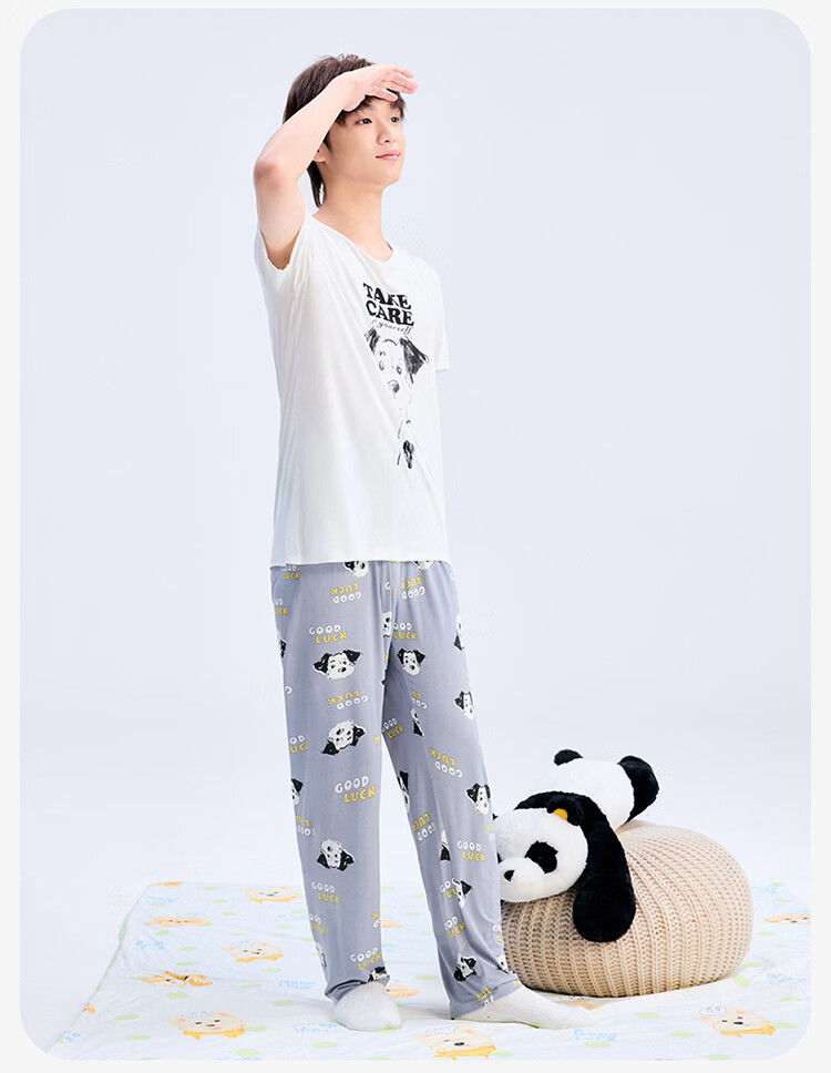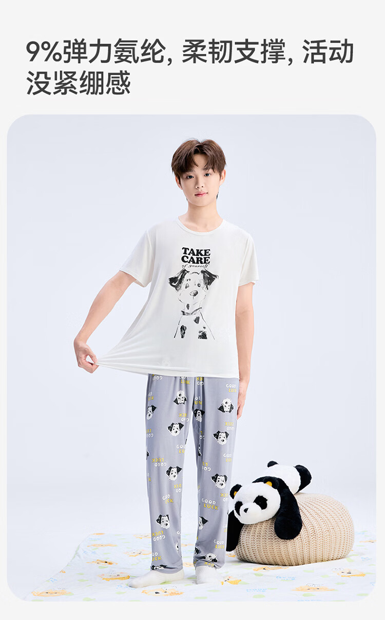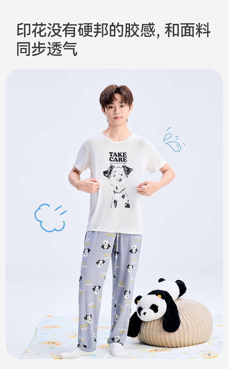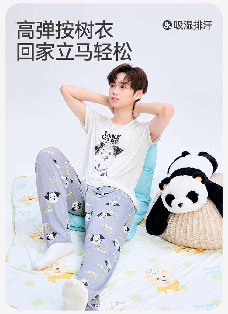 久岁伴【26新款】大童男夏A类7A抑菌高弹家居服套装青少年短袖睡衣长裤 4XL (170) 建议身高160-172,体重105-120斤